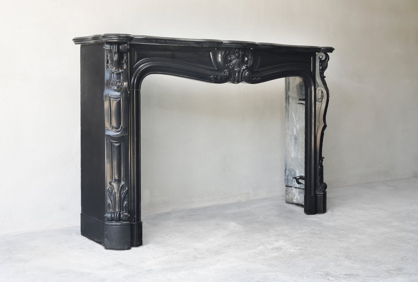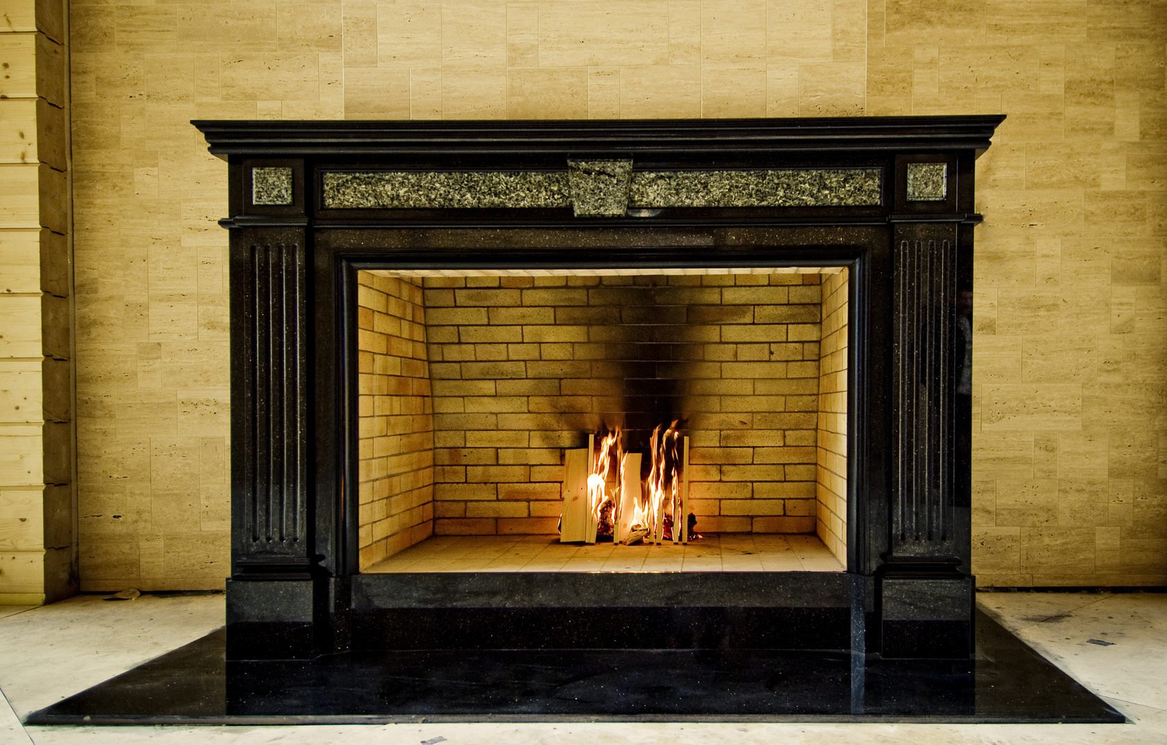 Отделка камина черным гранитом