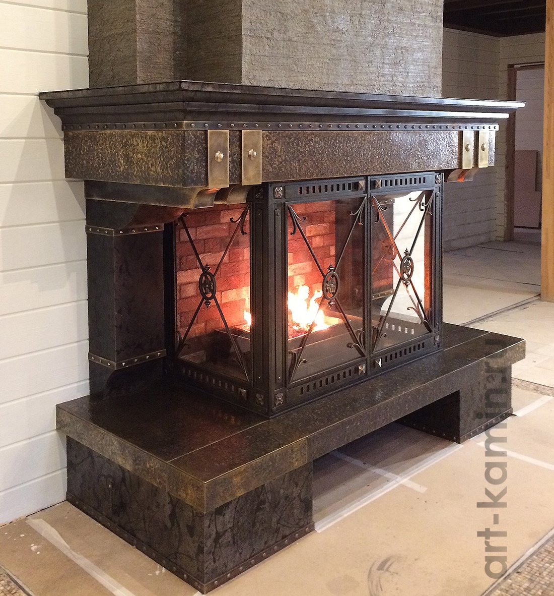 Камин обшитый металлом