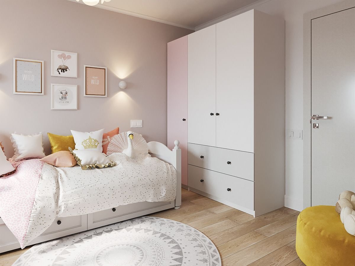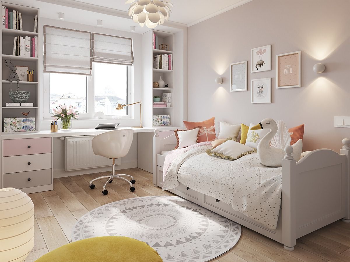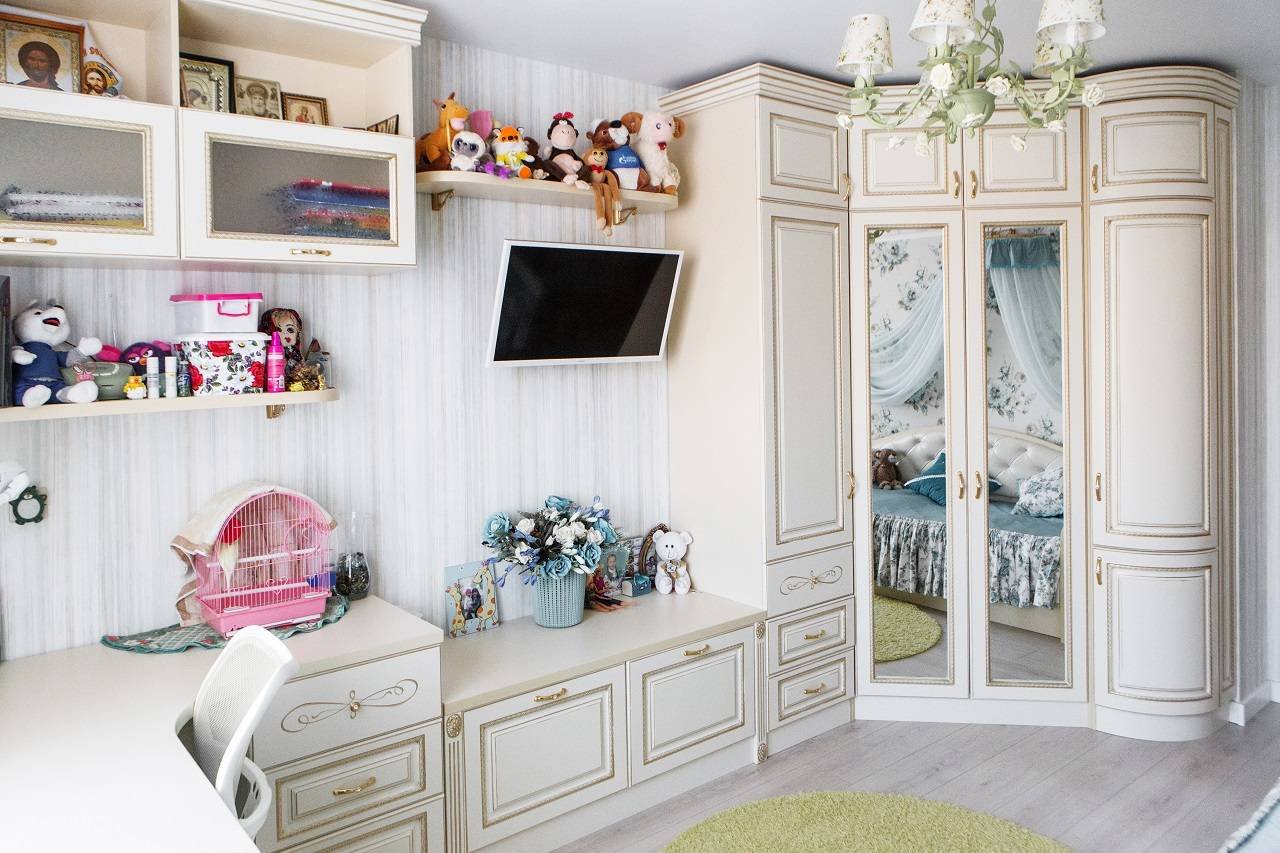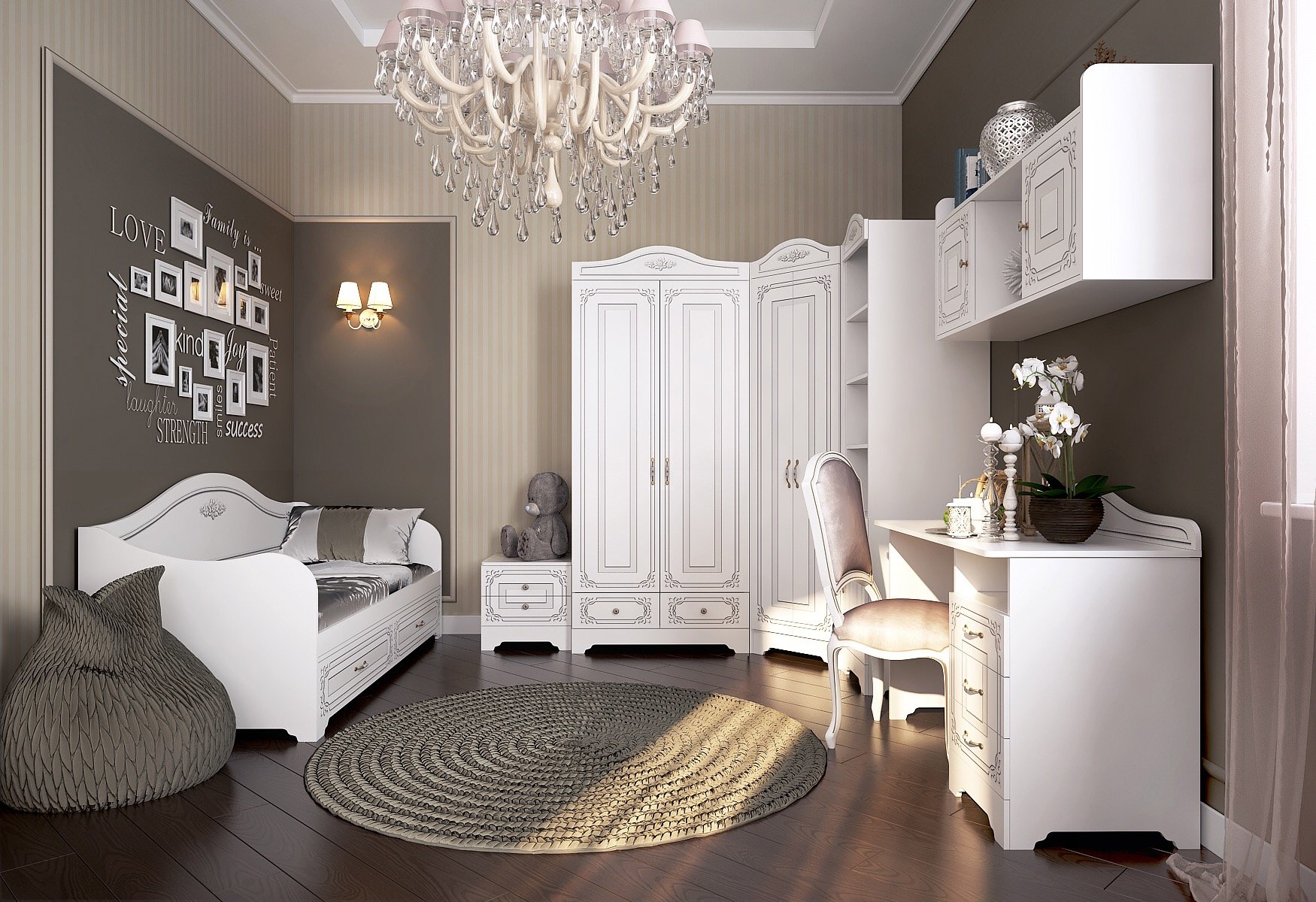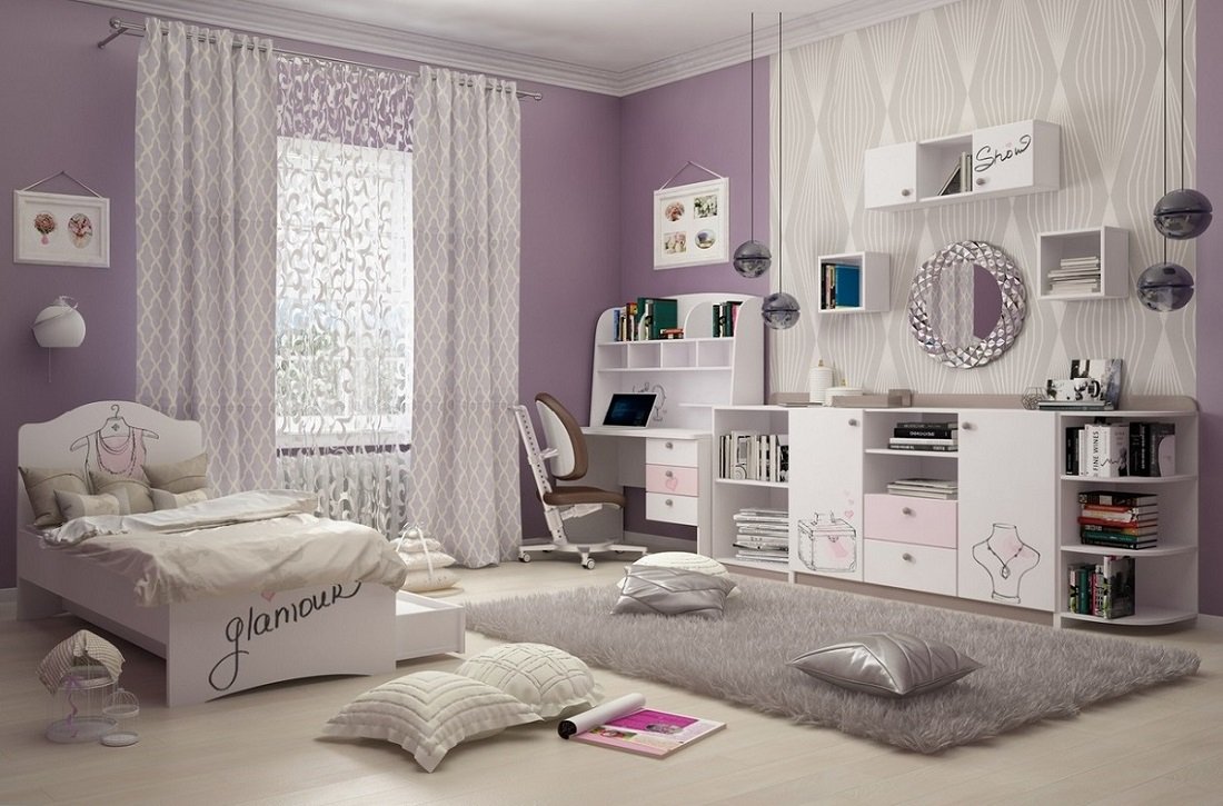 Бежевый и фиолетовый в интерьере детской для подростка Неоклассика
