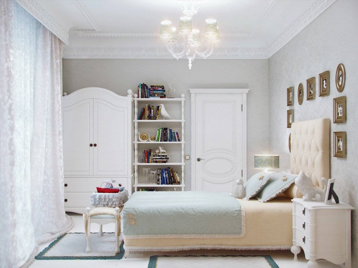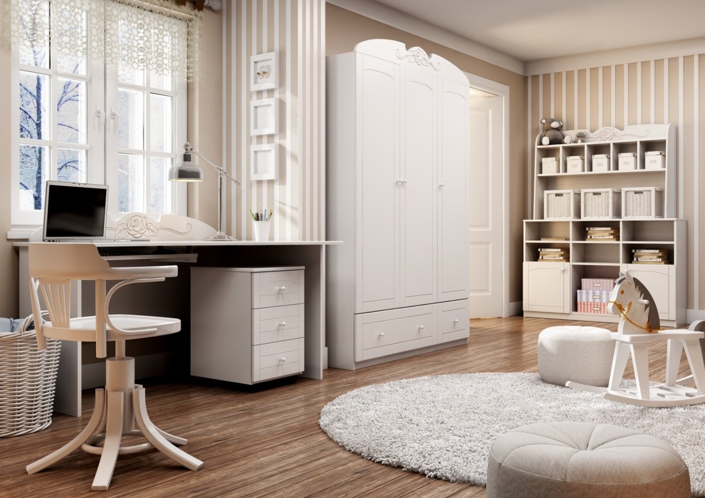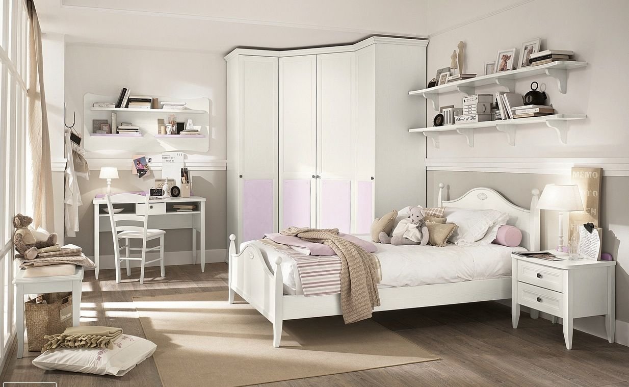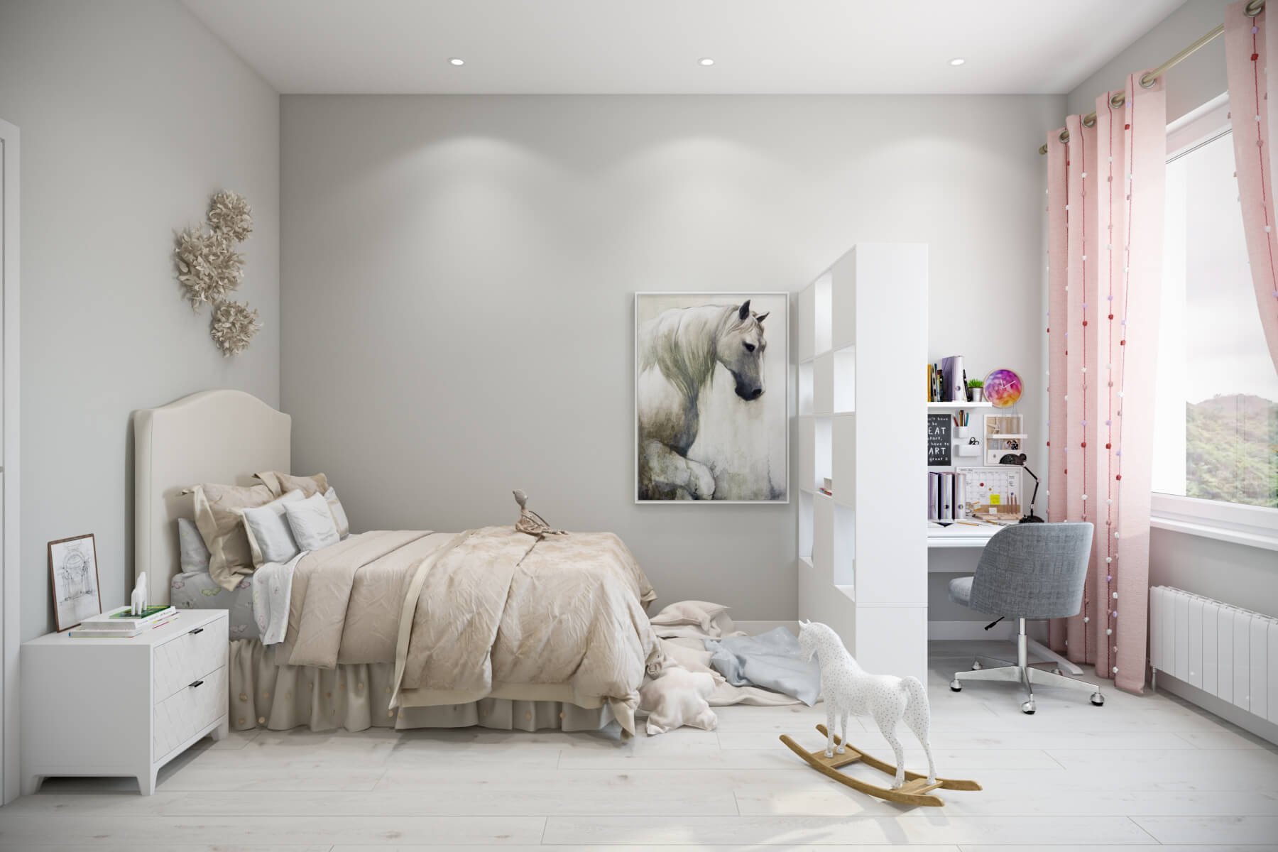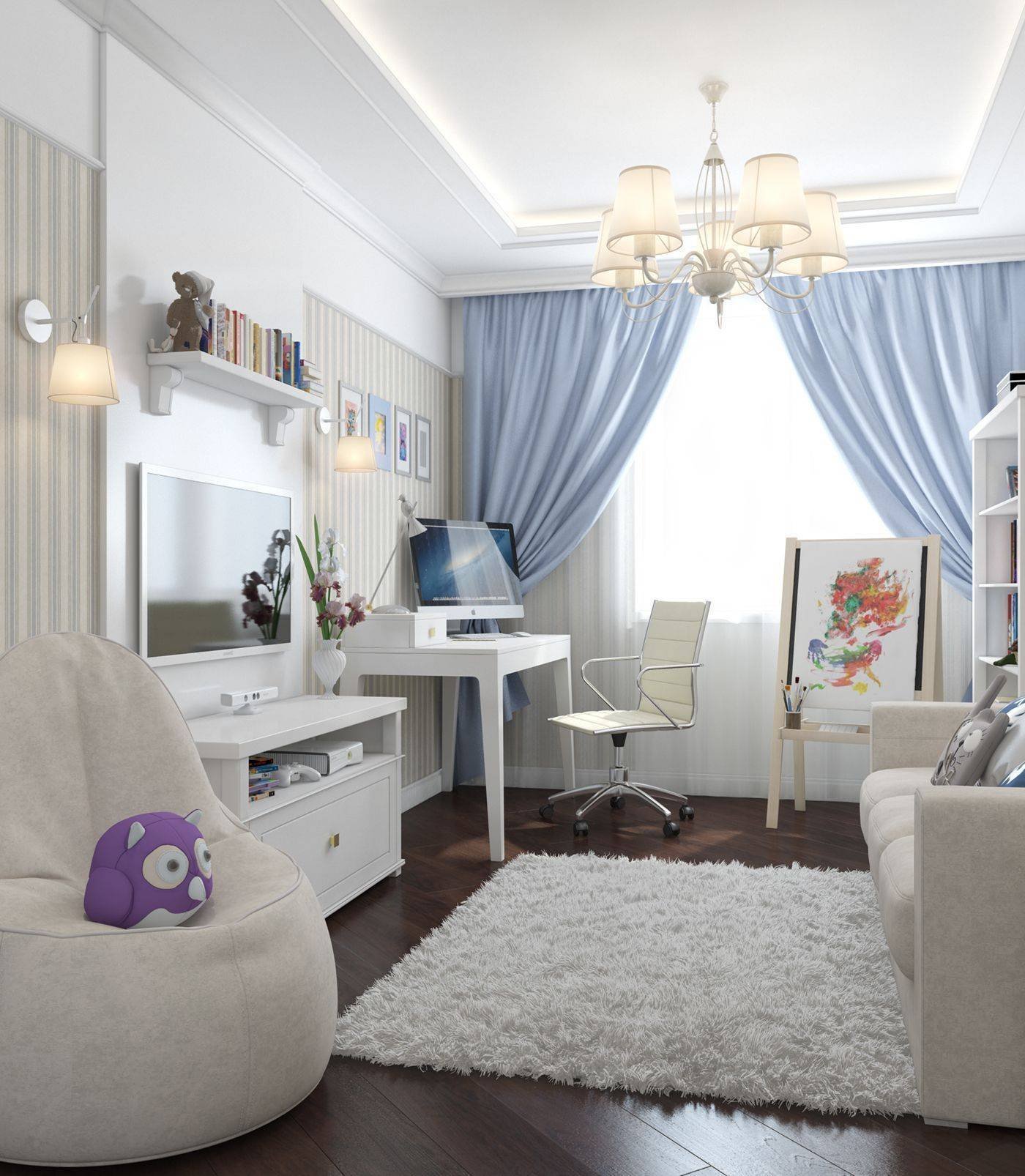 Бежевый и фиолетовый в интерьере детской для подростка Неоклассика