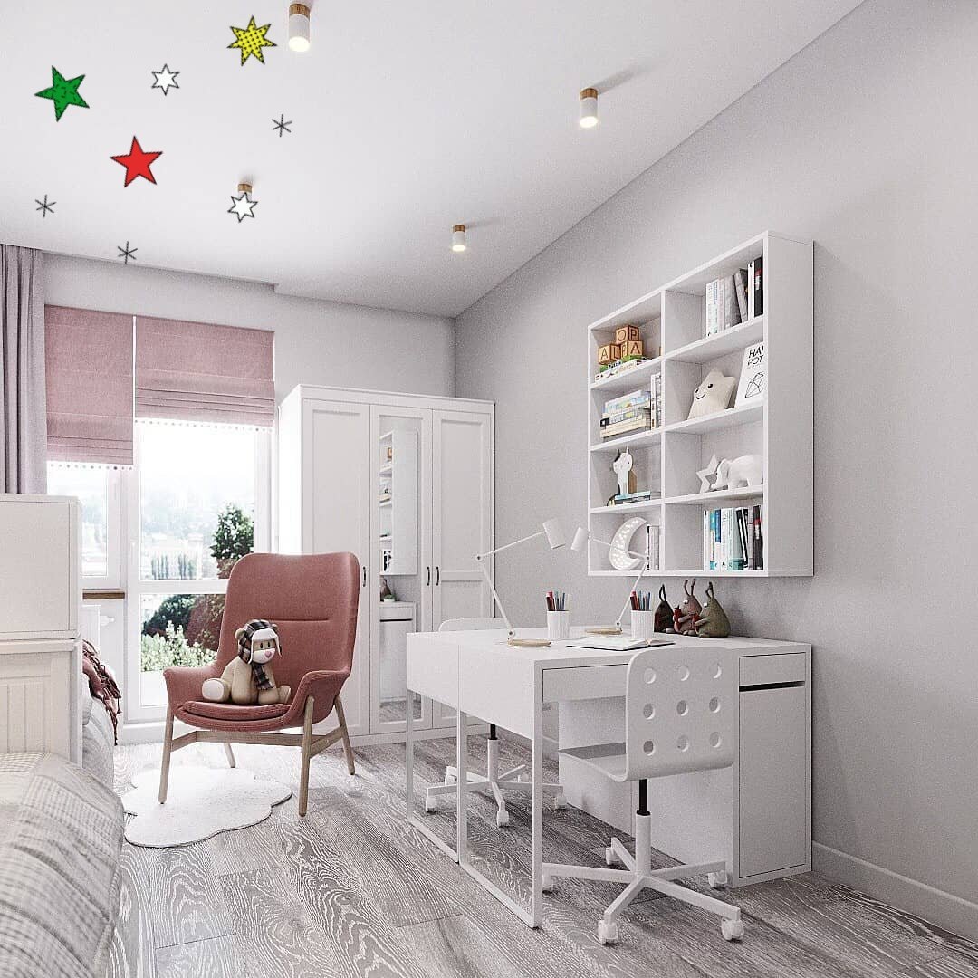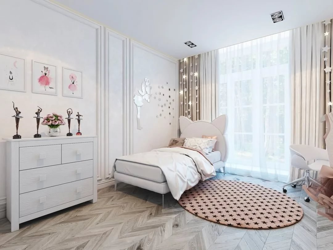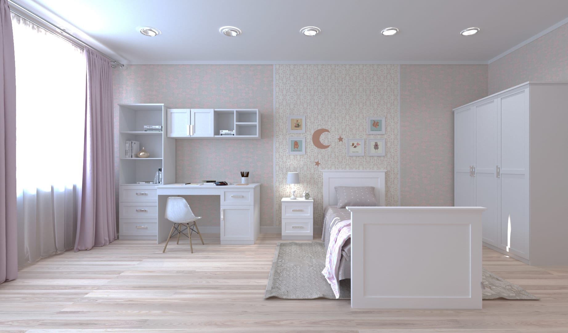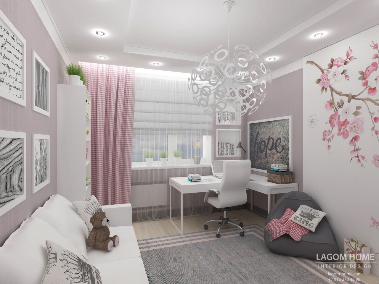 Бежевый и фиолетовый в интерьере детской для подростка Неоклассика