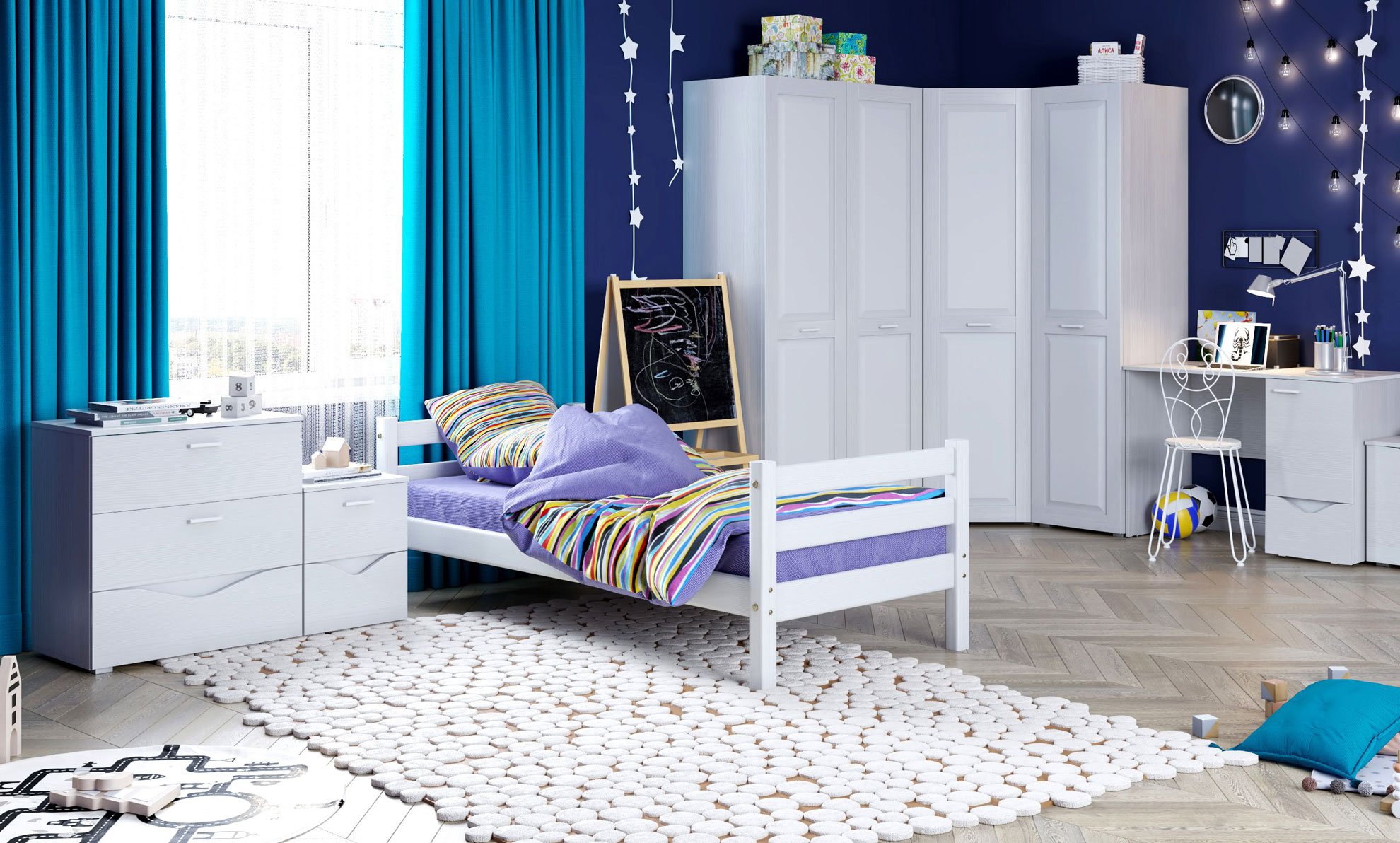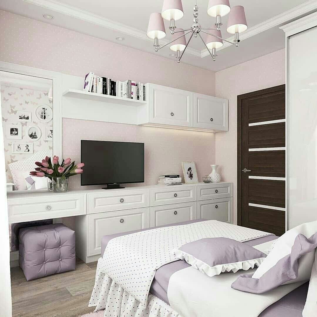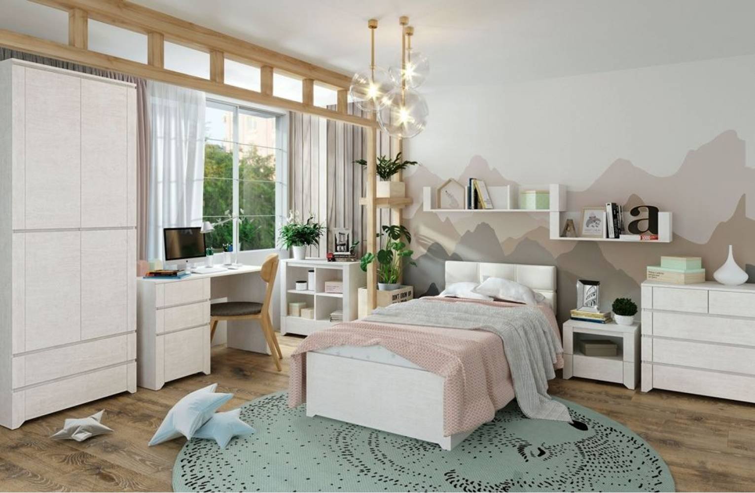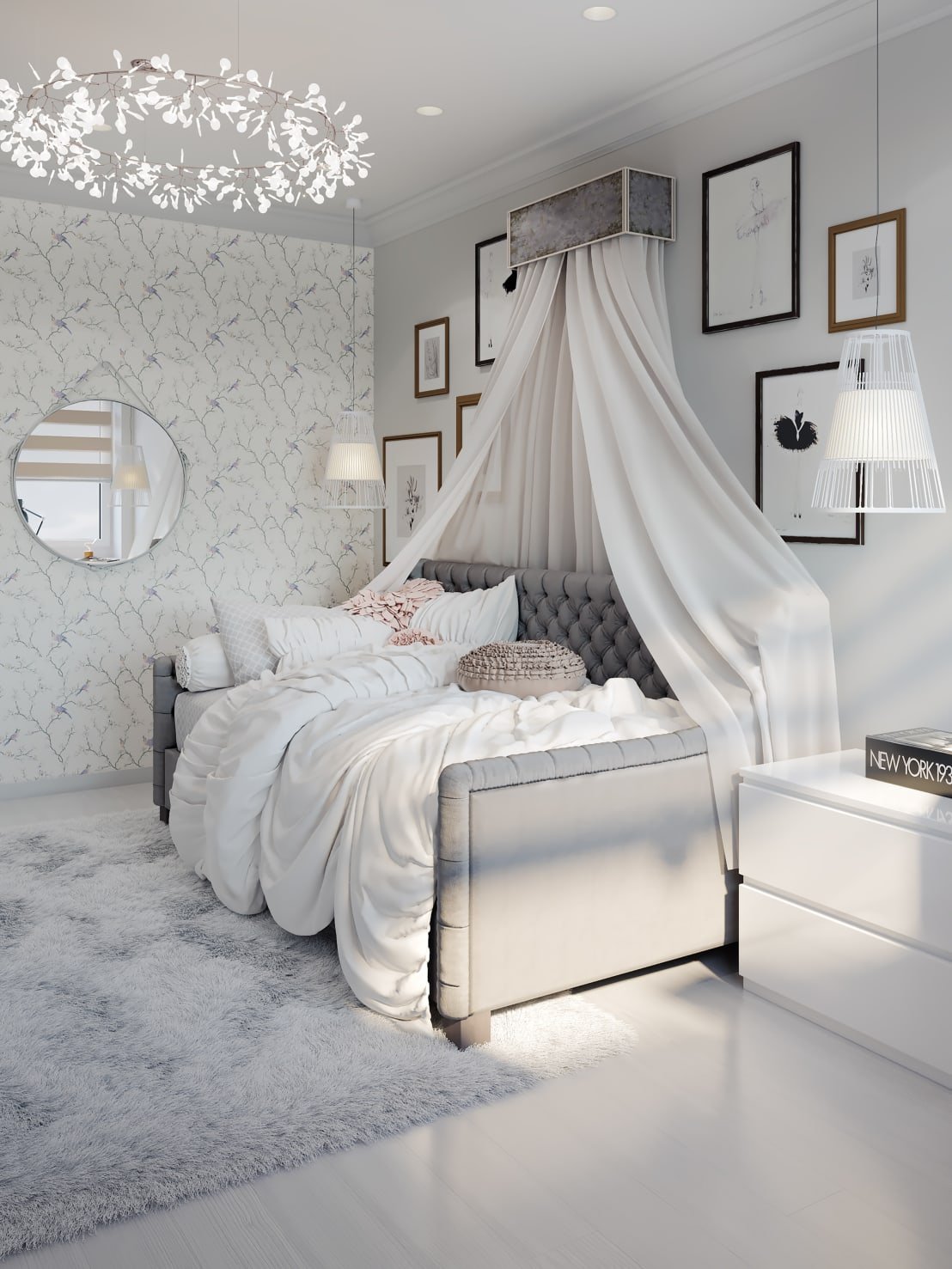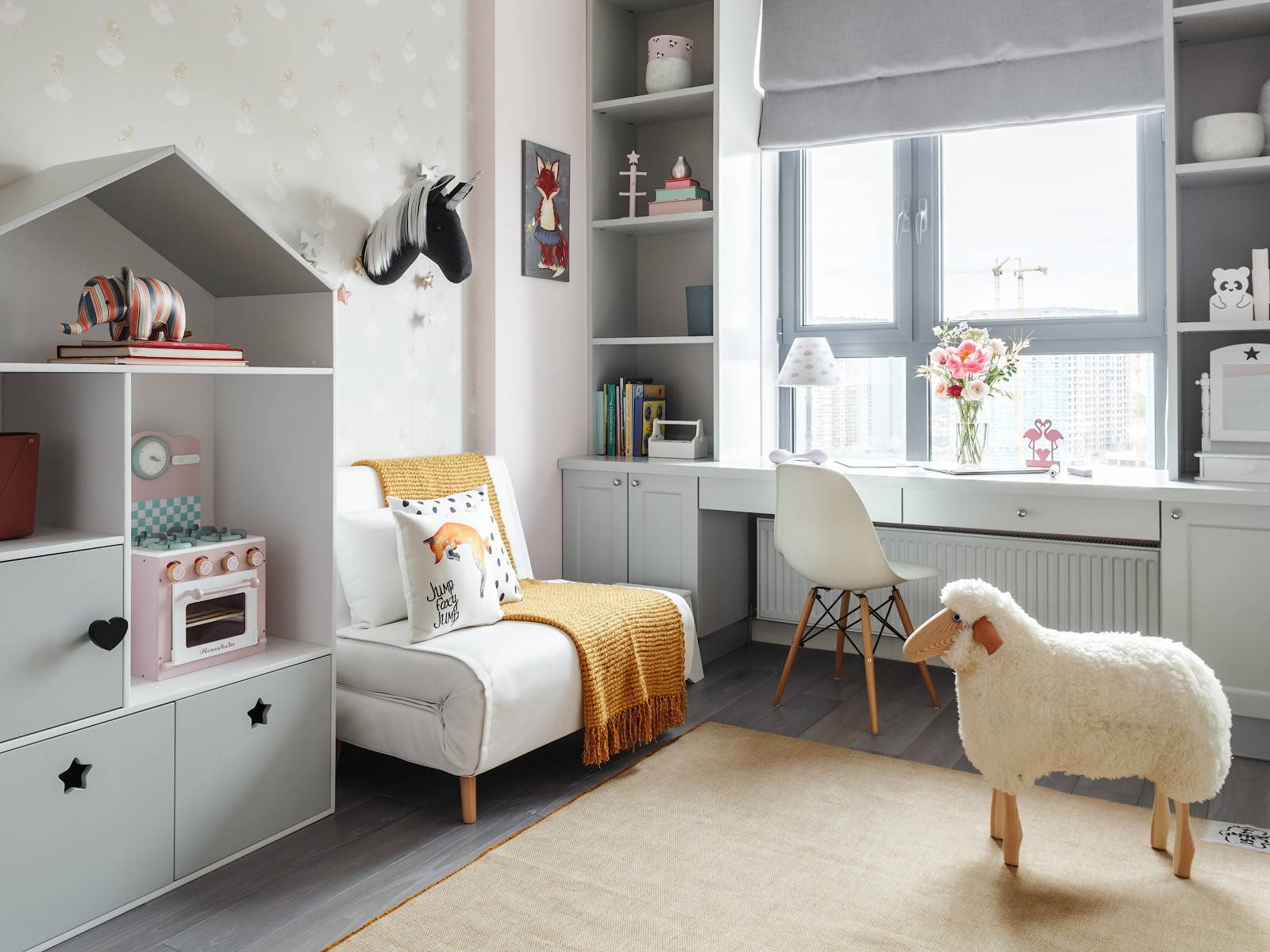 Бежевый и фиолетовый в интерьере детской для подростка Неоклассика