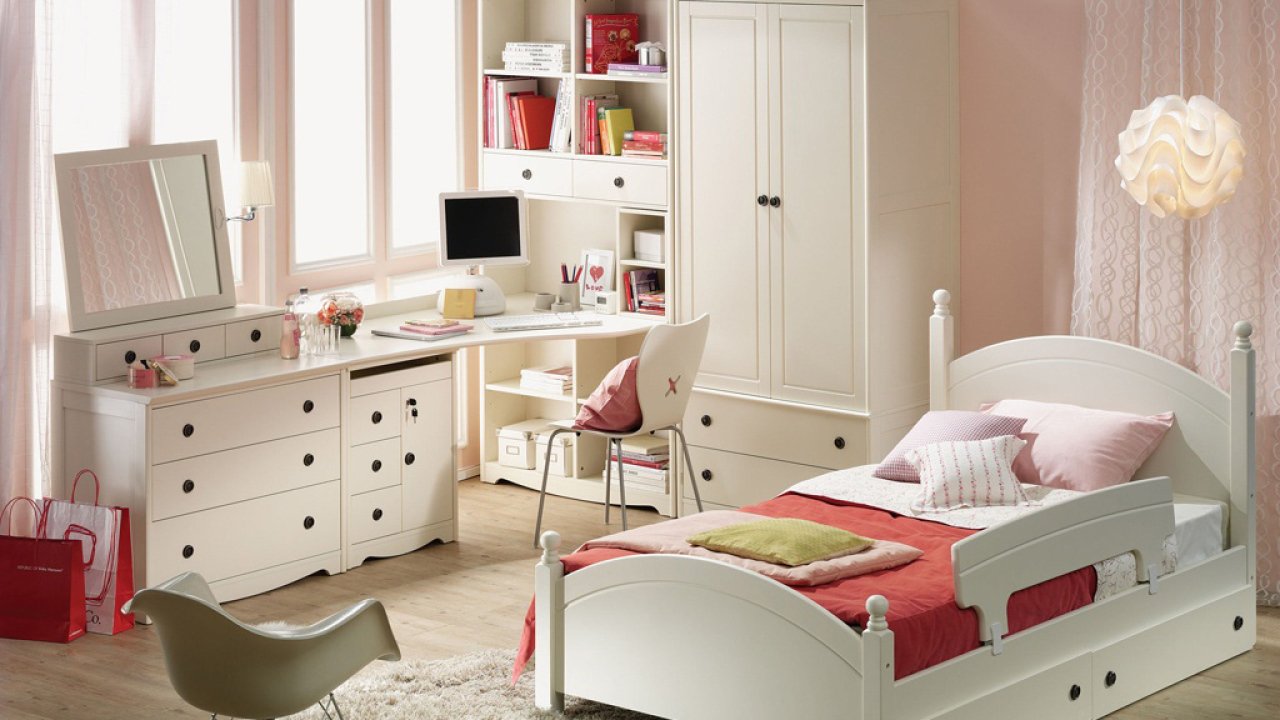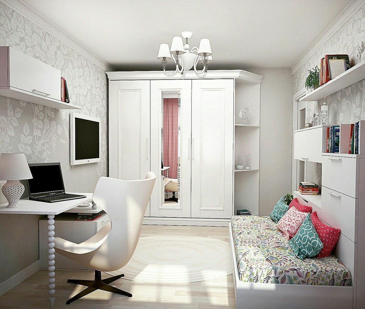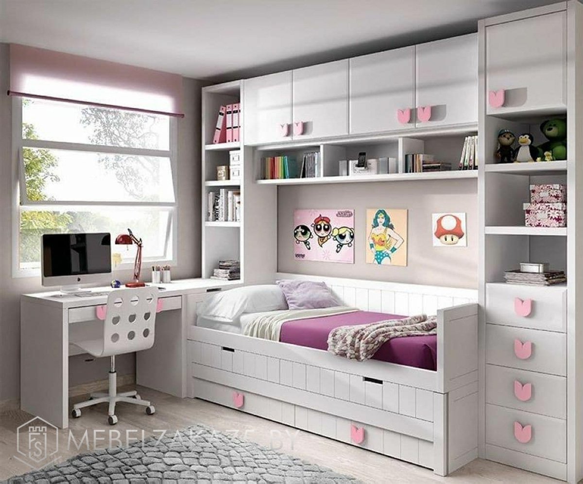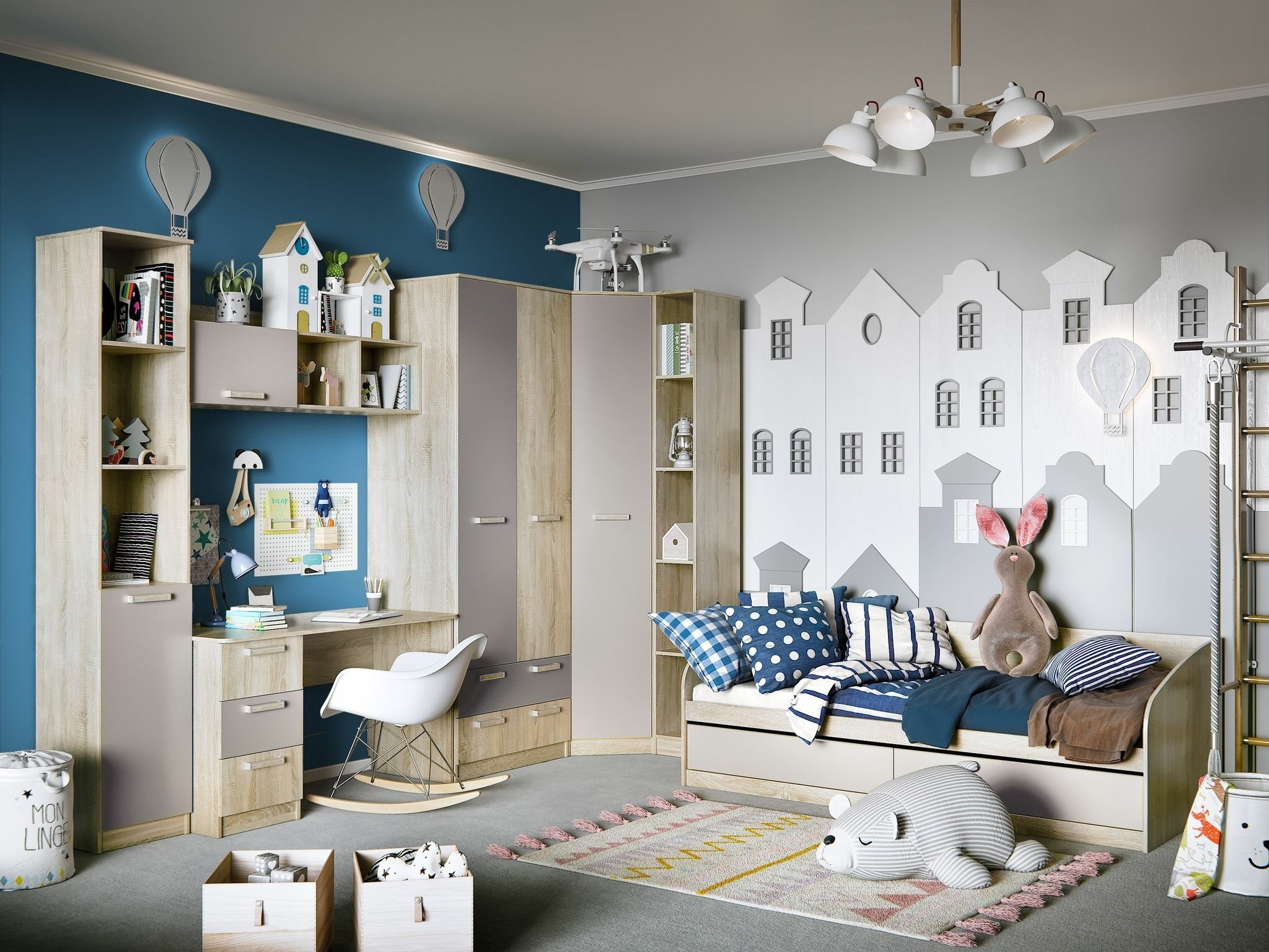 Бежевый и фиолетовый в интерьере детской для подростка Неоклассика