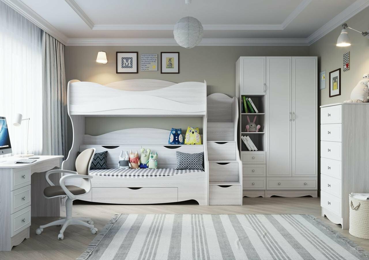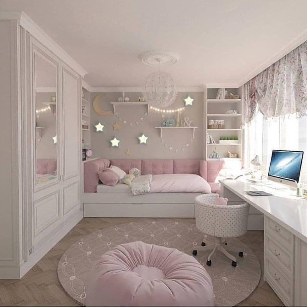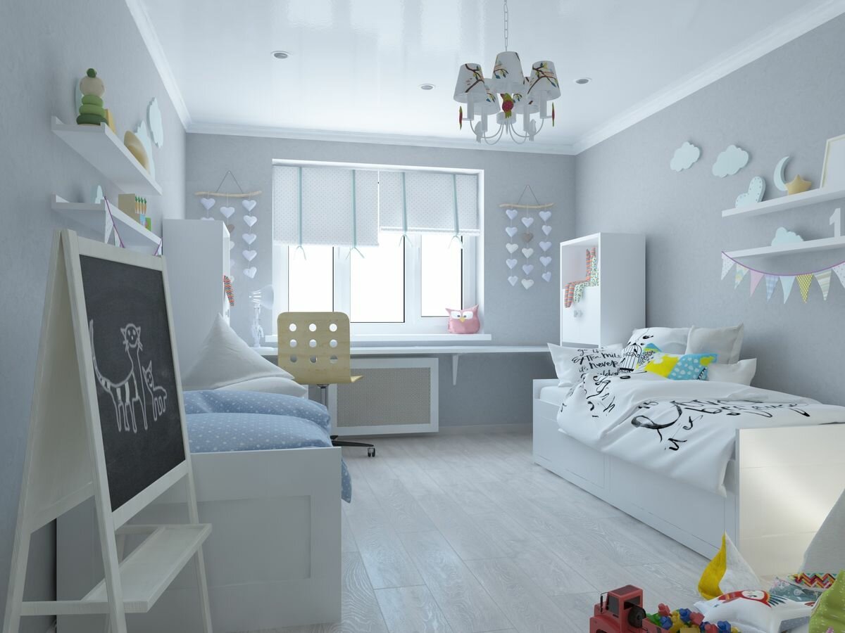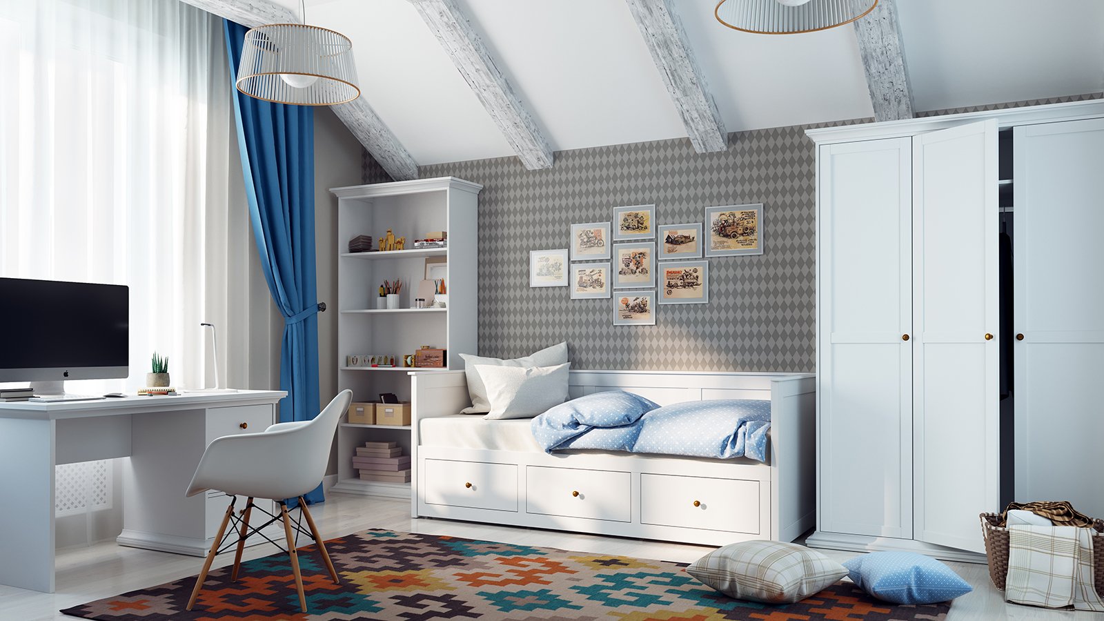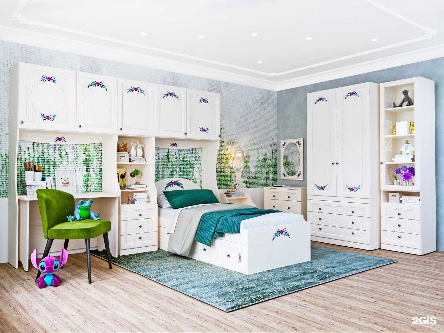 Бежевый и фиолетовый в интерьере детской для подростка Неоклассика