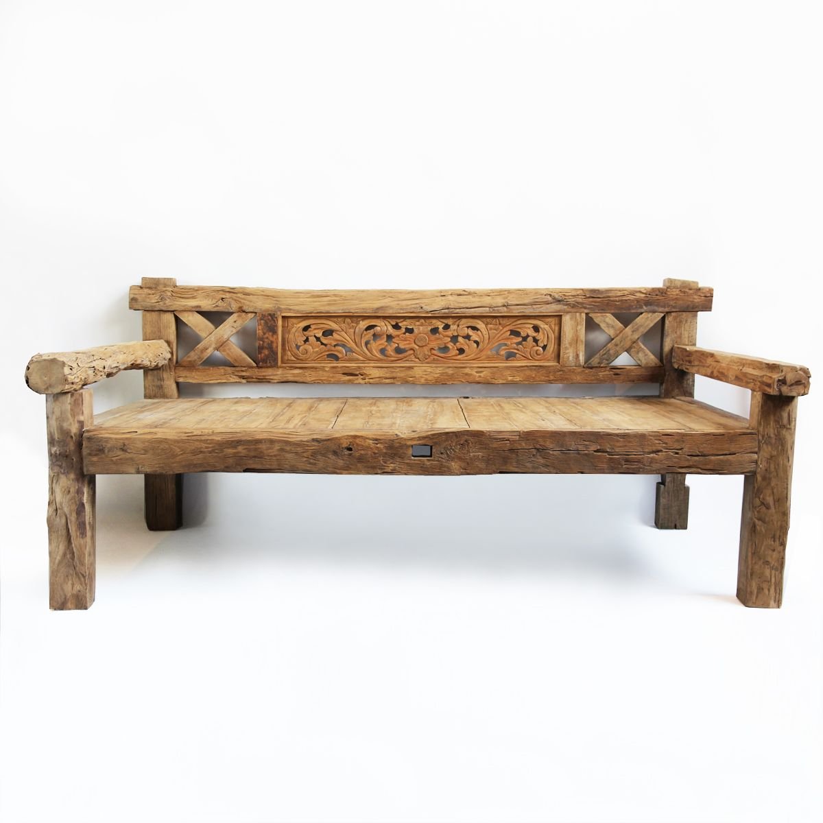 Диван деревянный ретро на белом фоне