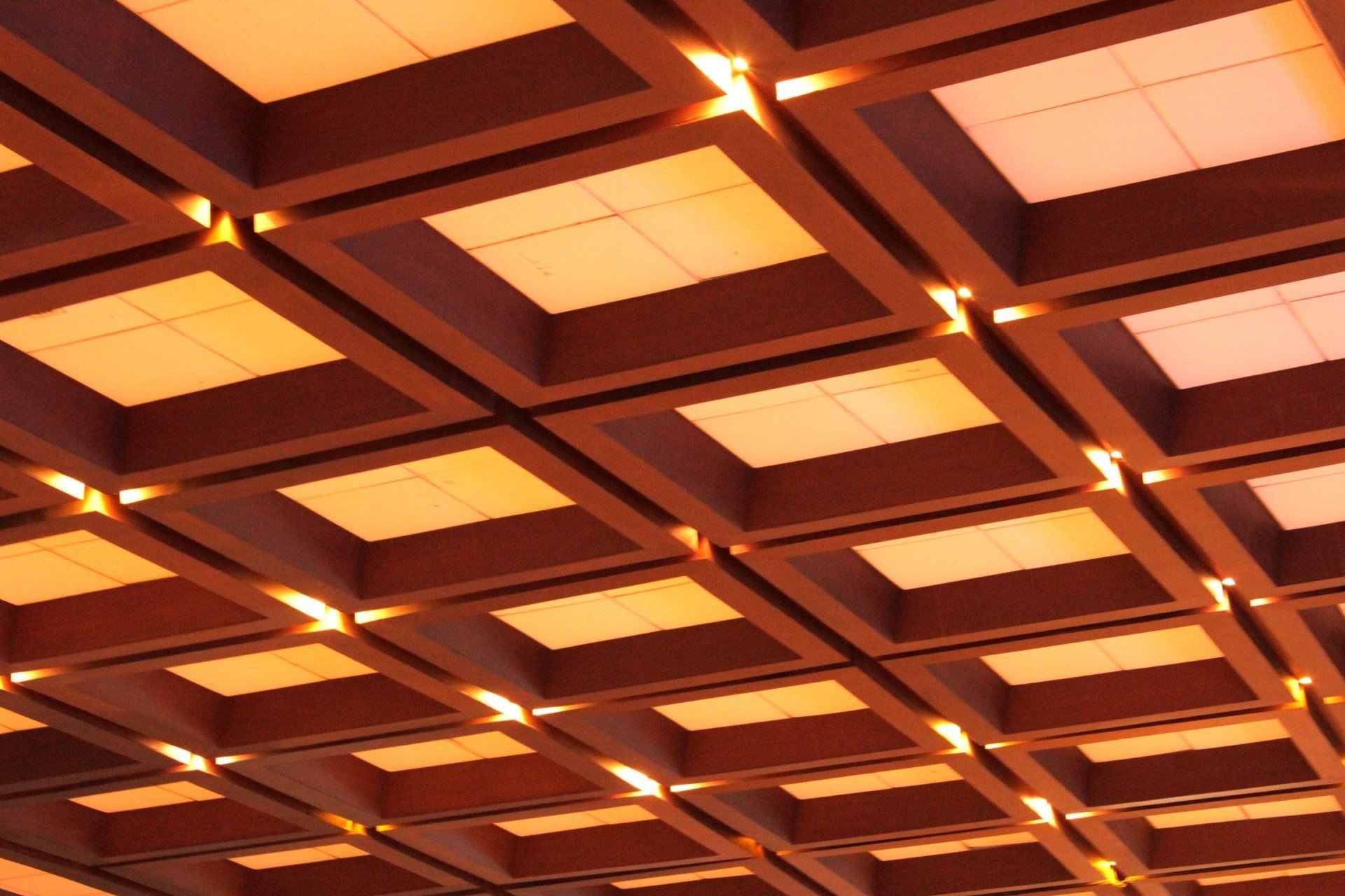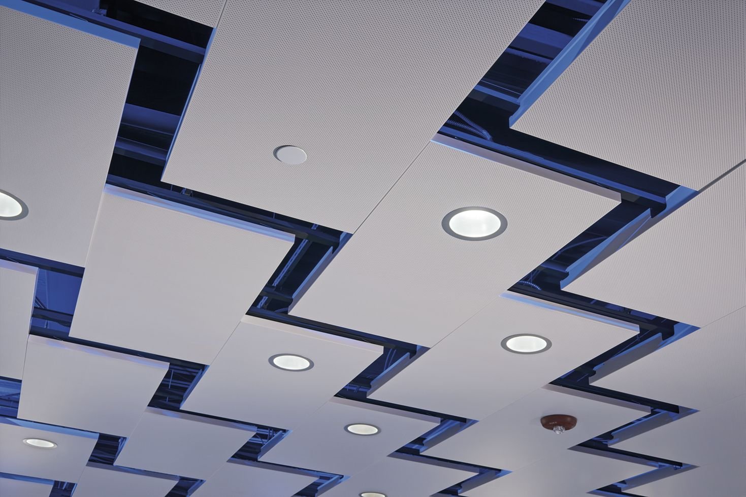 Подвесной потолок с квадратными светильниками