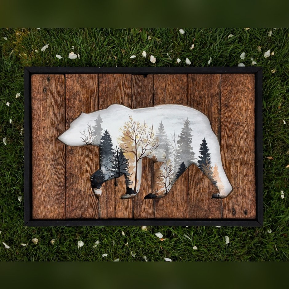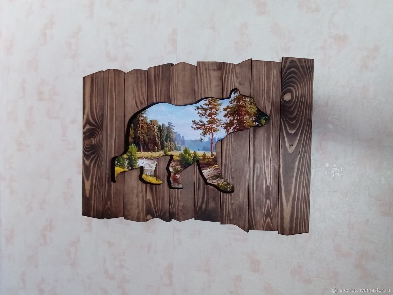 Наклейка пластик интерьерная "медведь - царь тайги" 60х90 см
