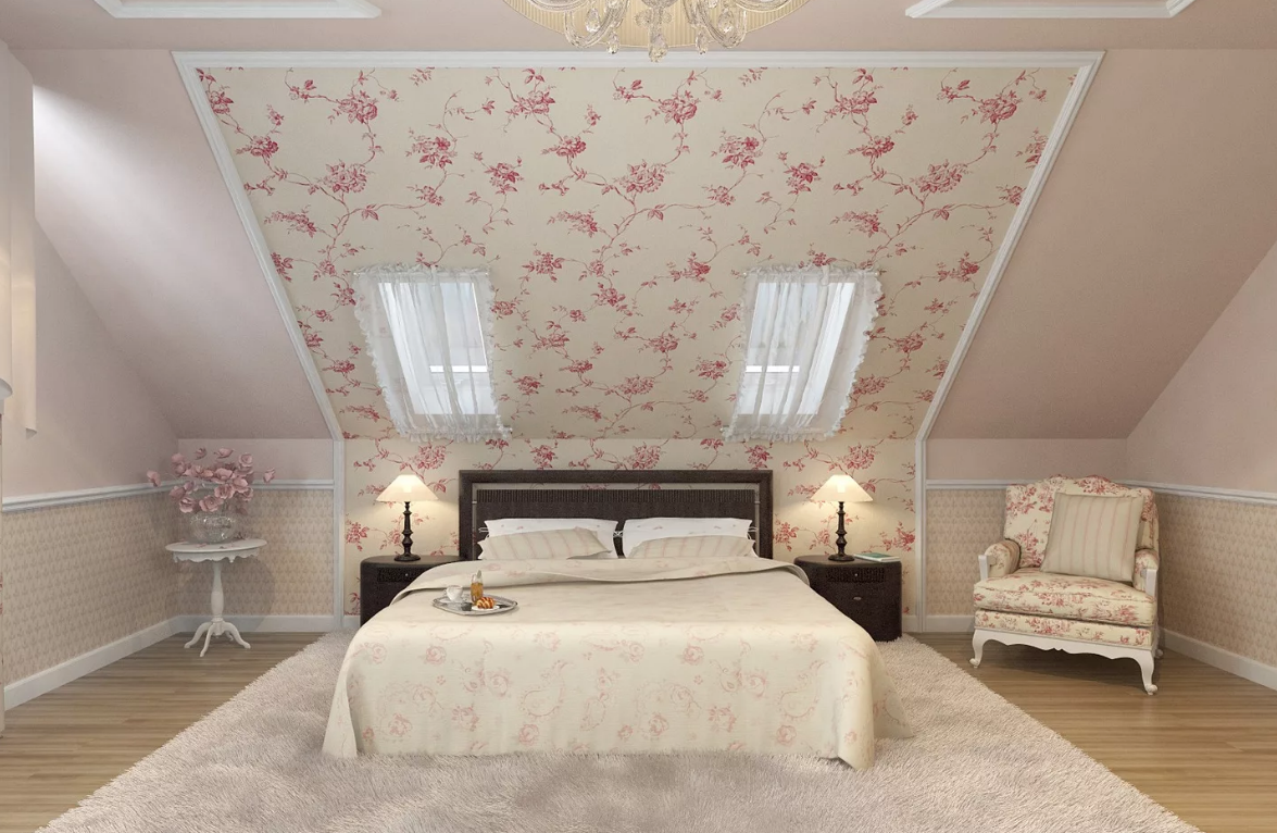 Обои в мансардной спальне