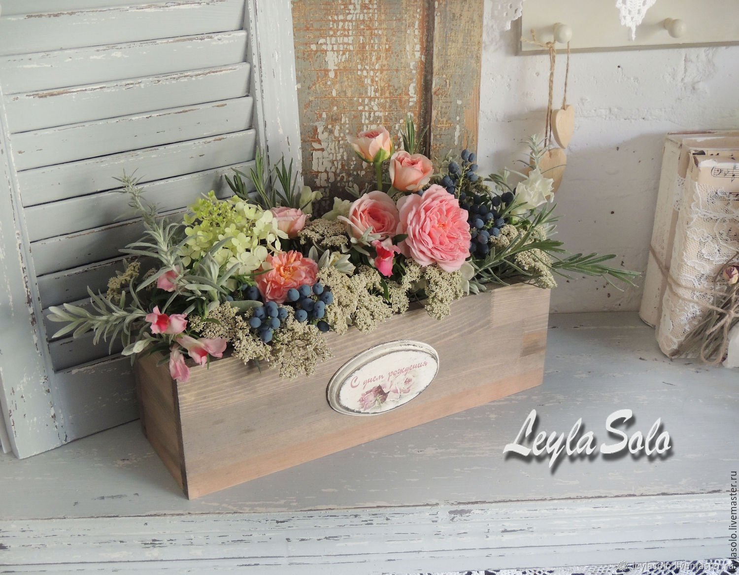 Ящики из дерева для цветочных композиций