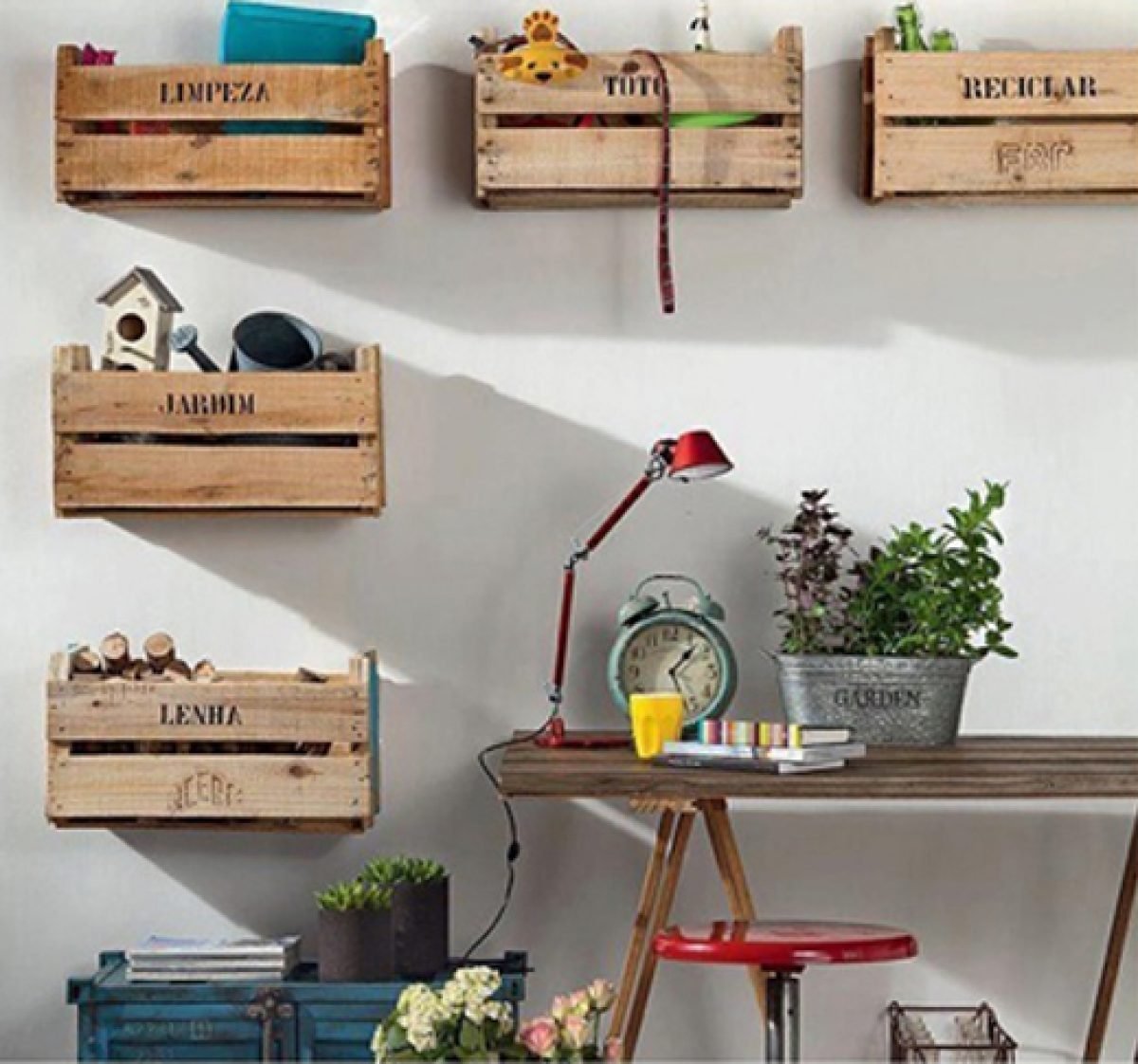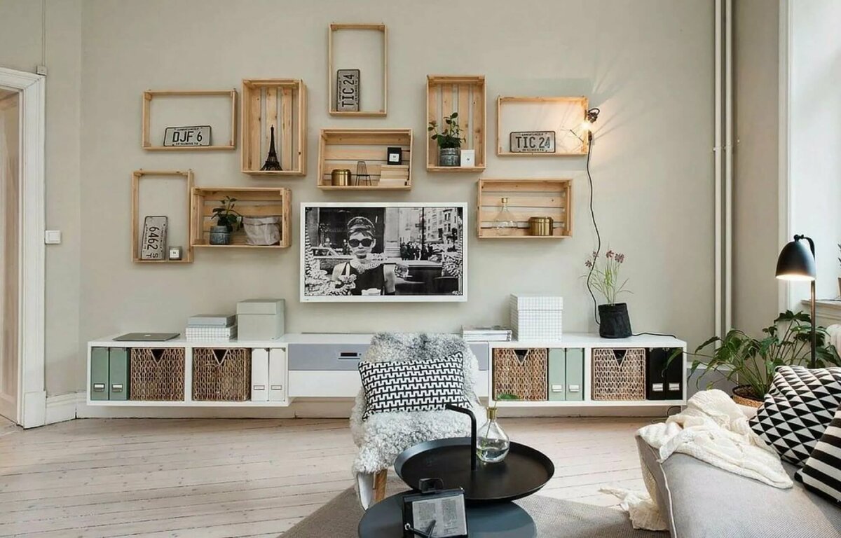 Деревянные ящики в интерьере