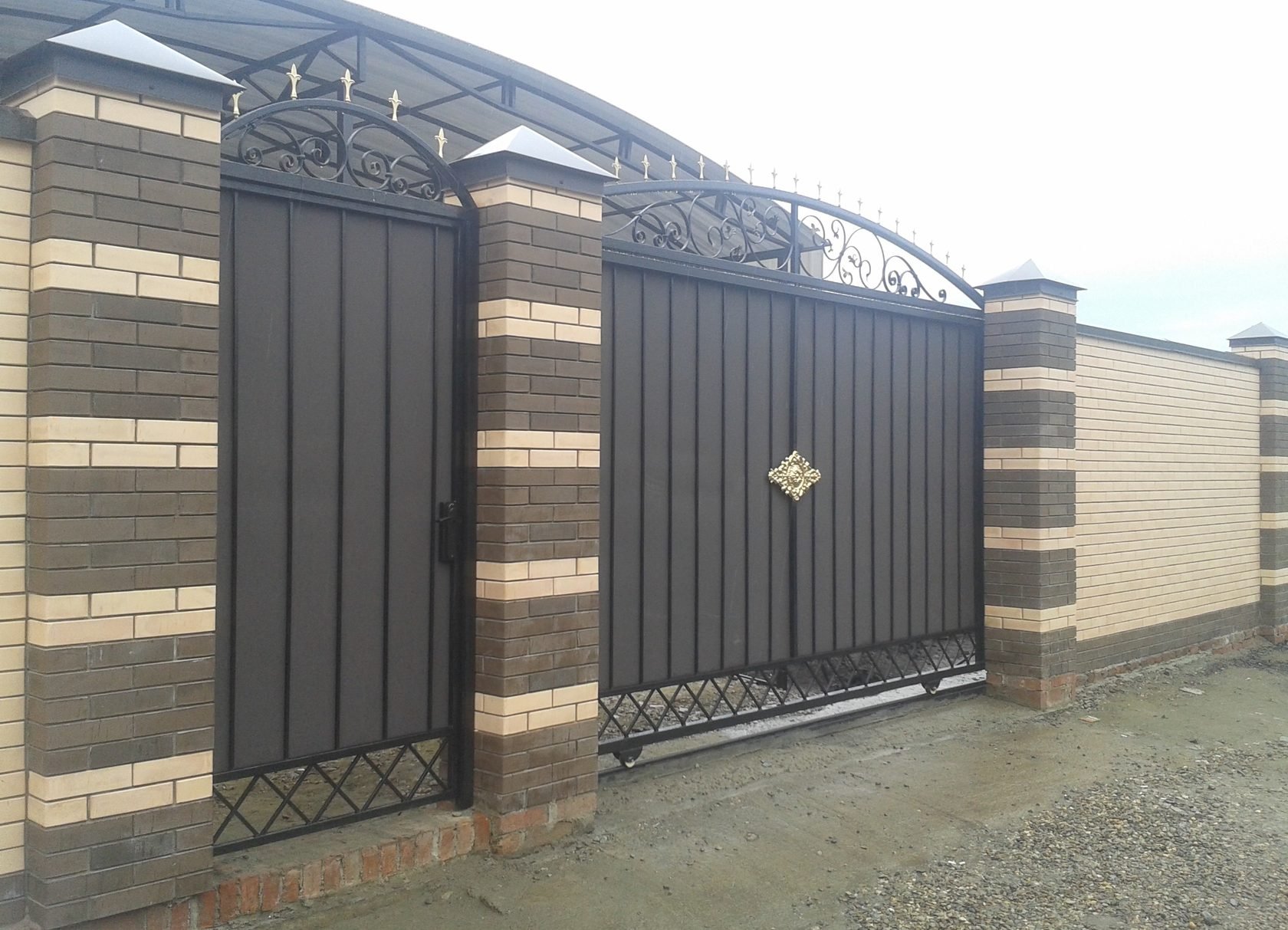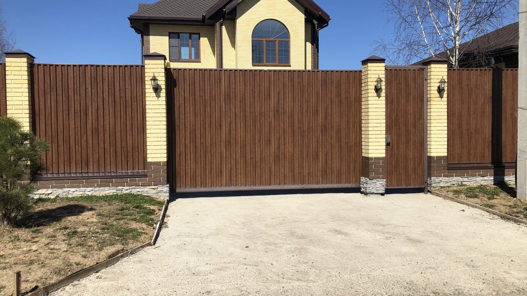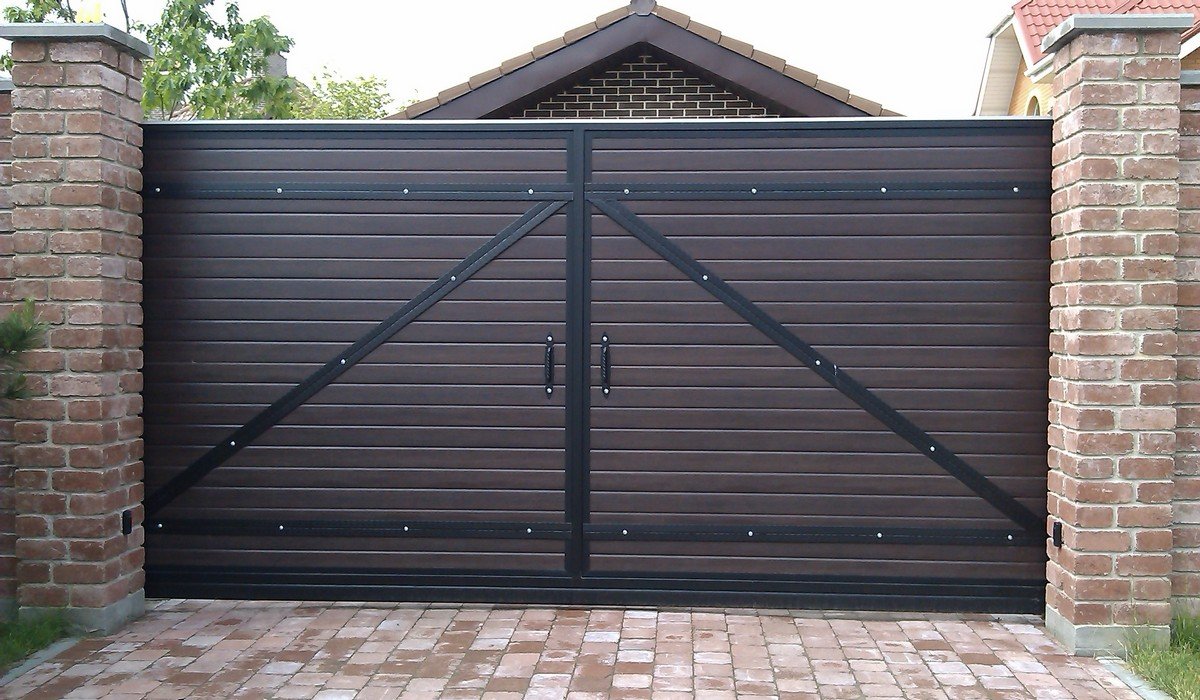 Красивые ворота для частного дома из профнастила