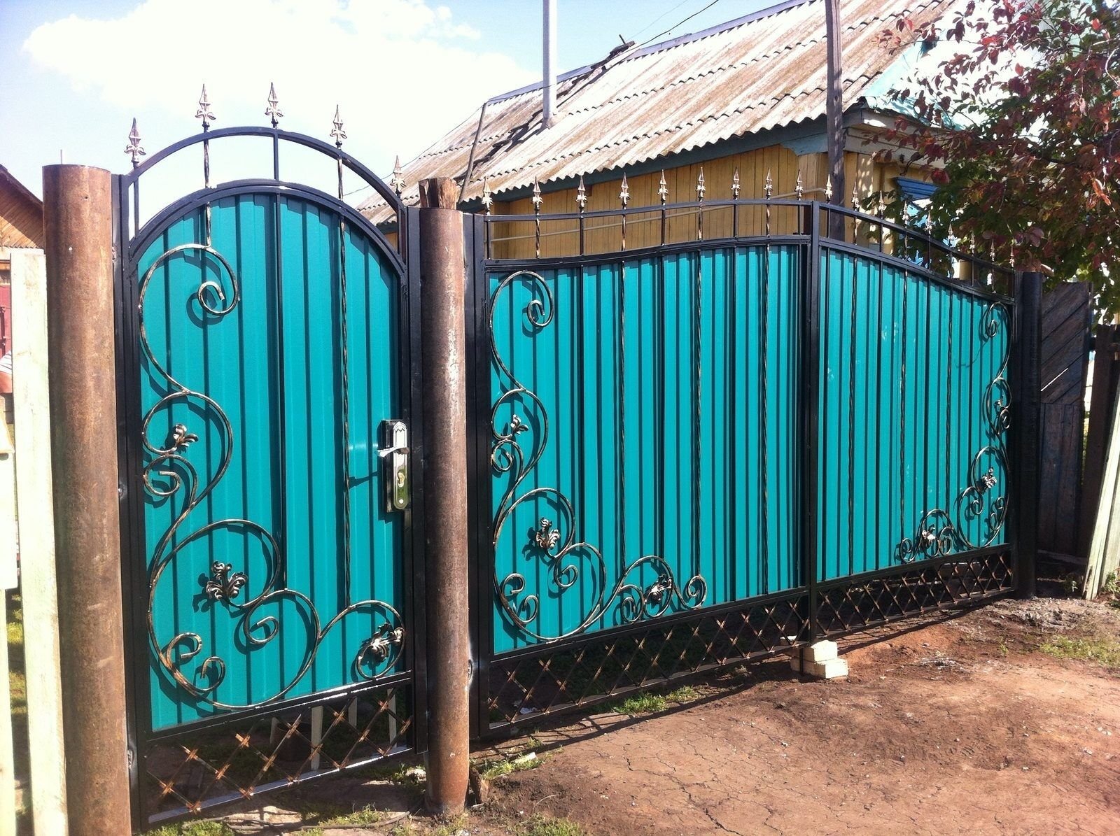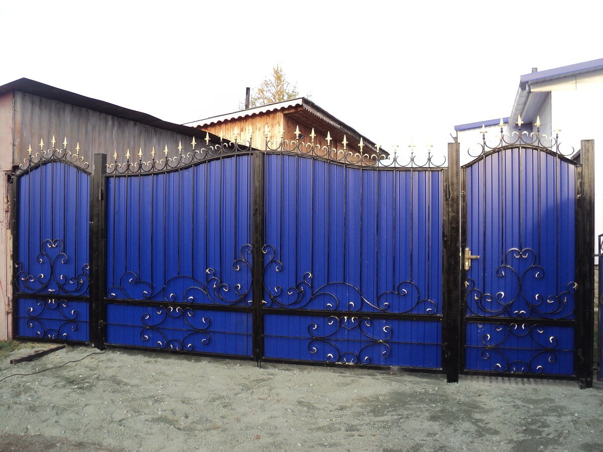 Синие кованые ворота