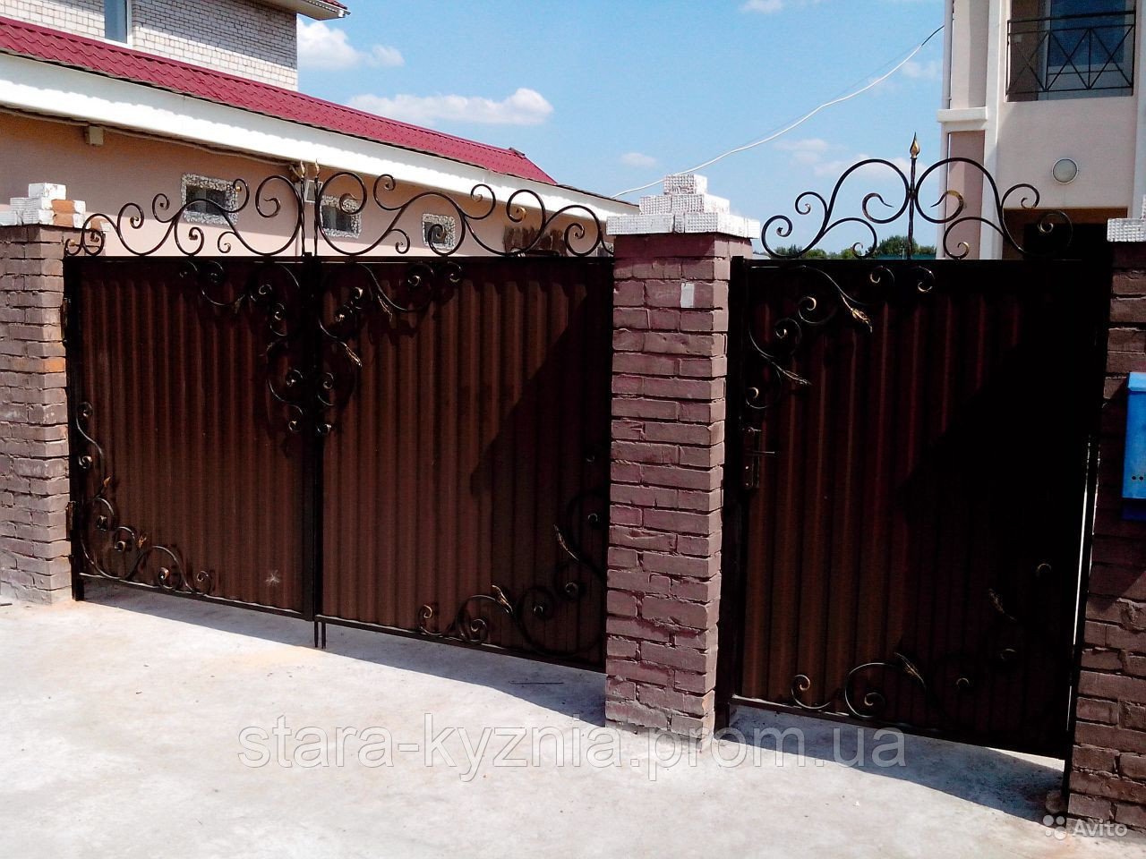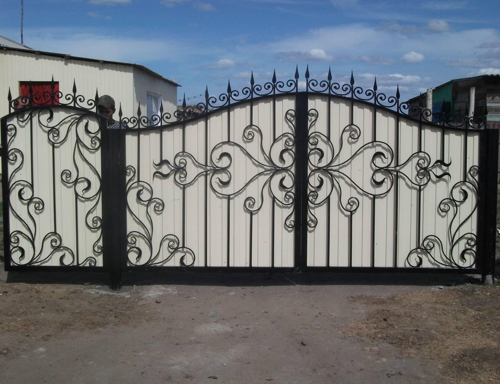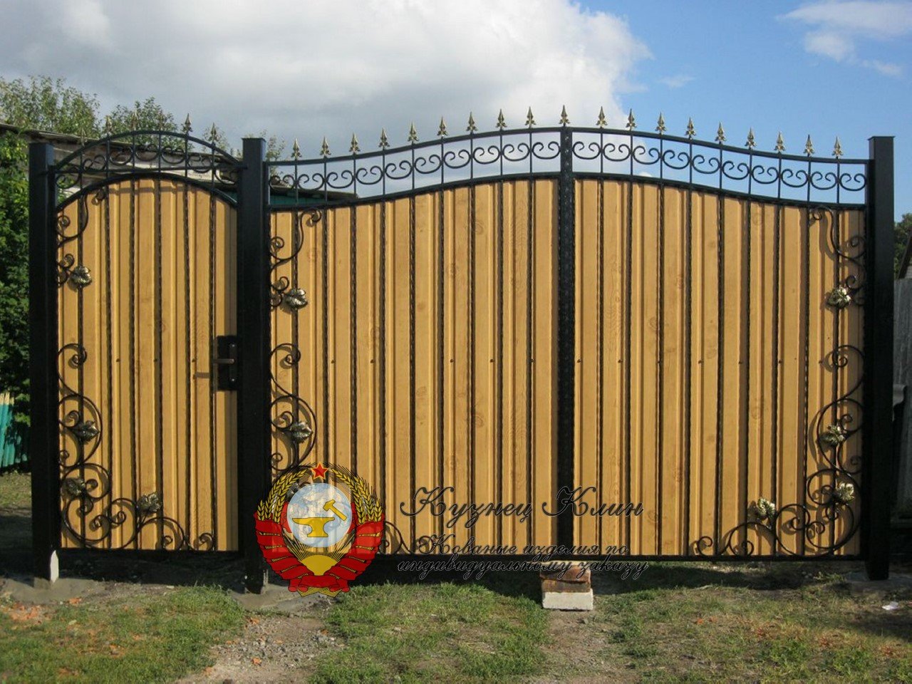 Кованые ворота с профнастилом