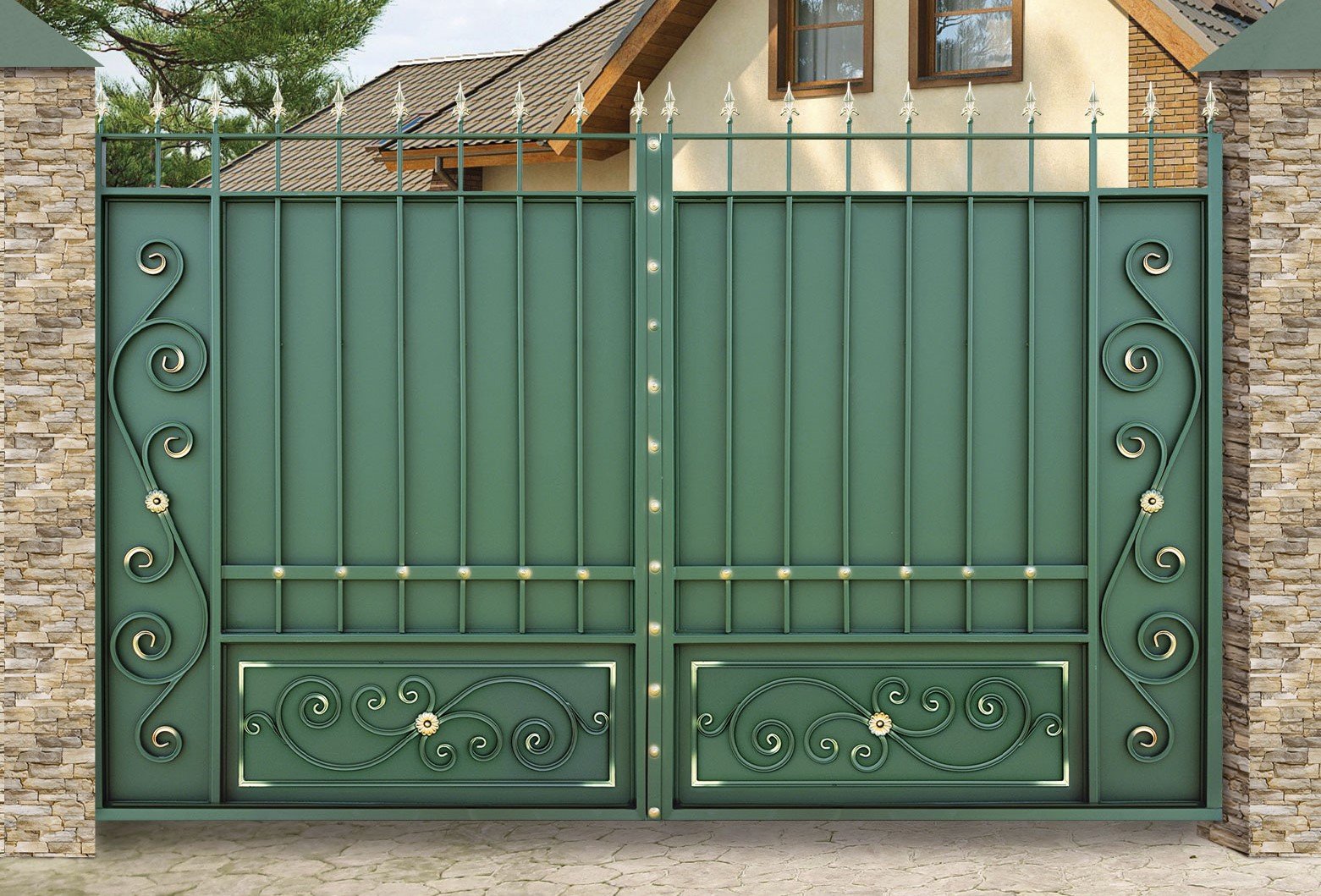 Ворота с элементами ковки