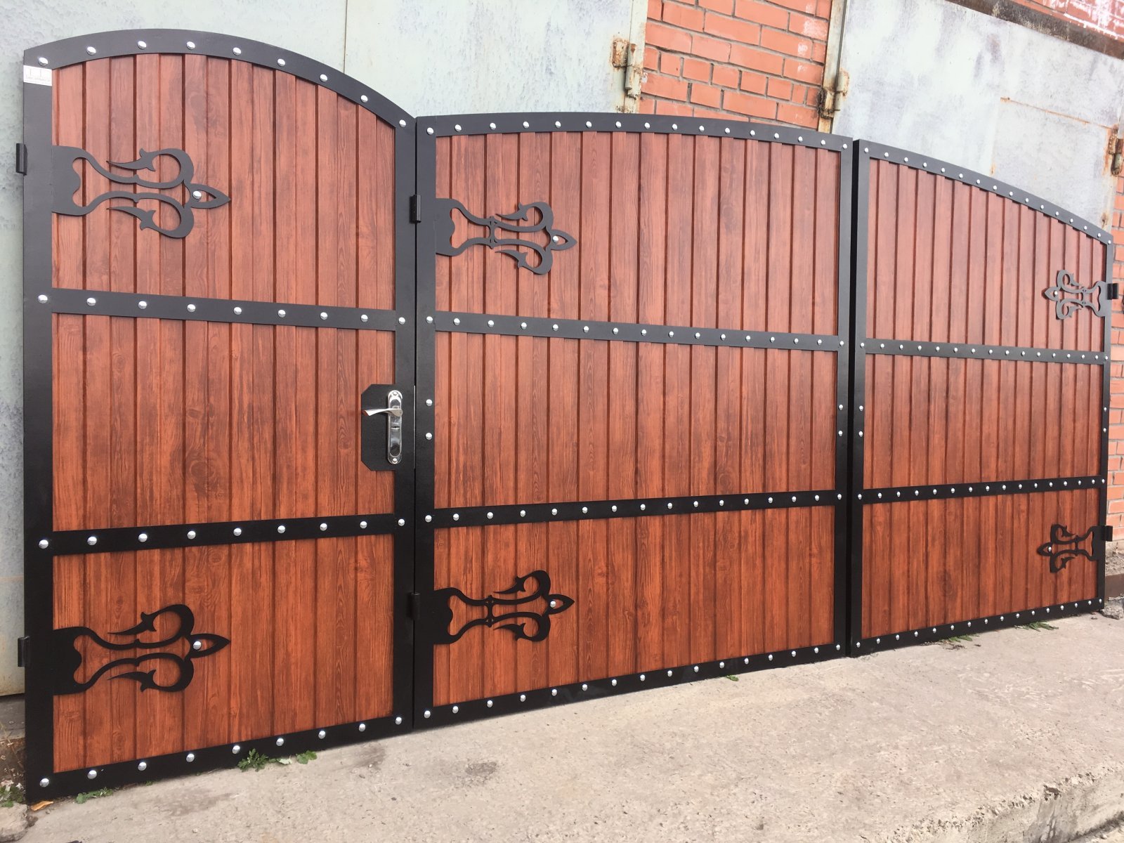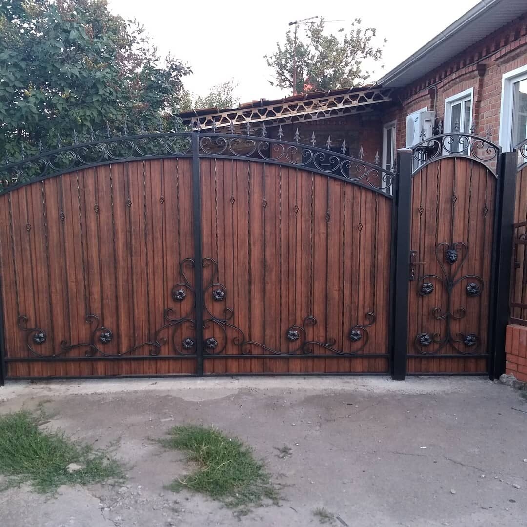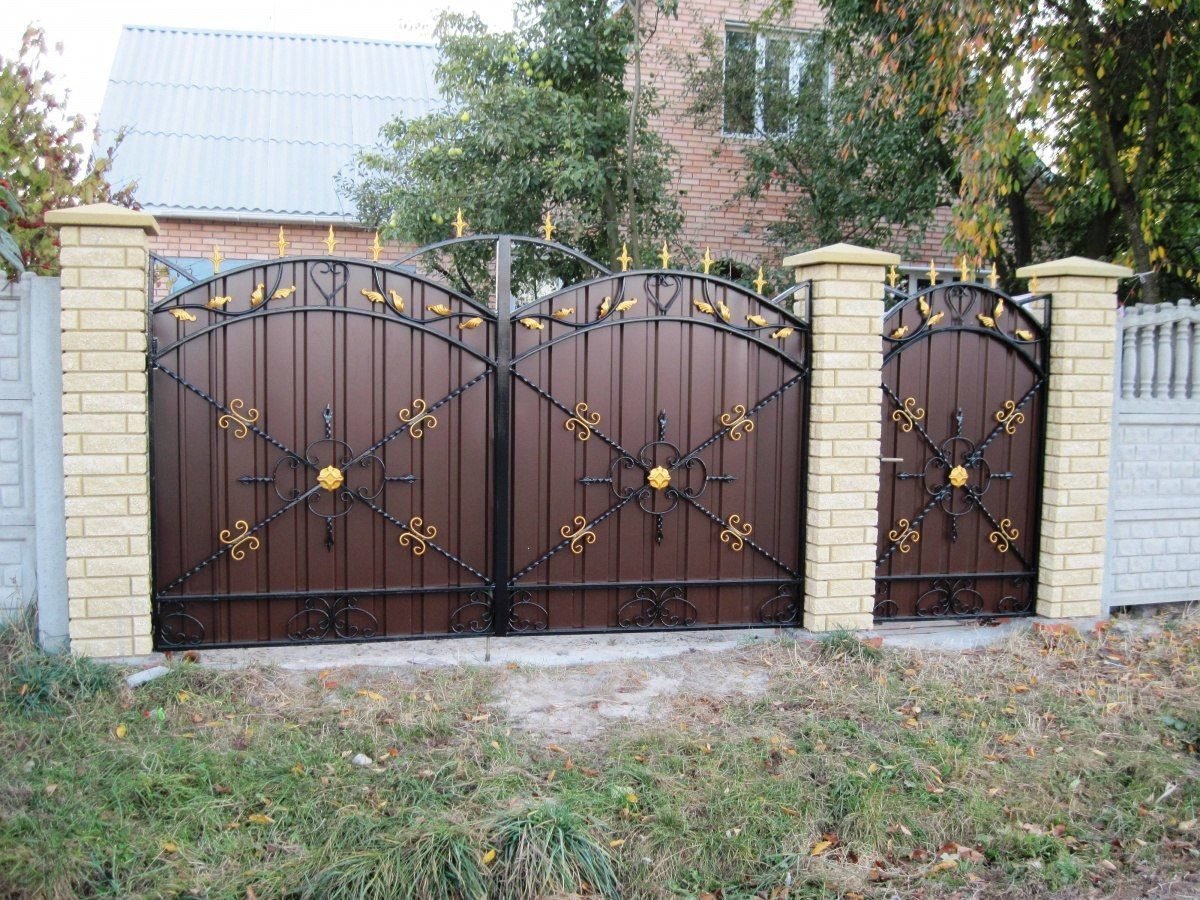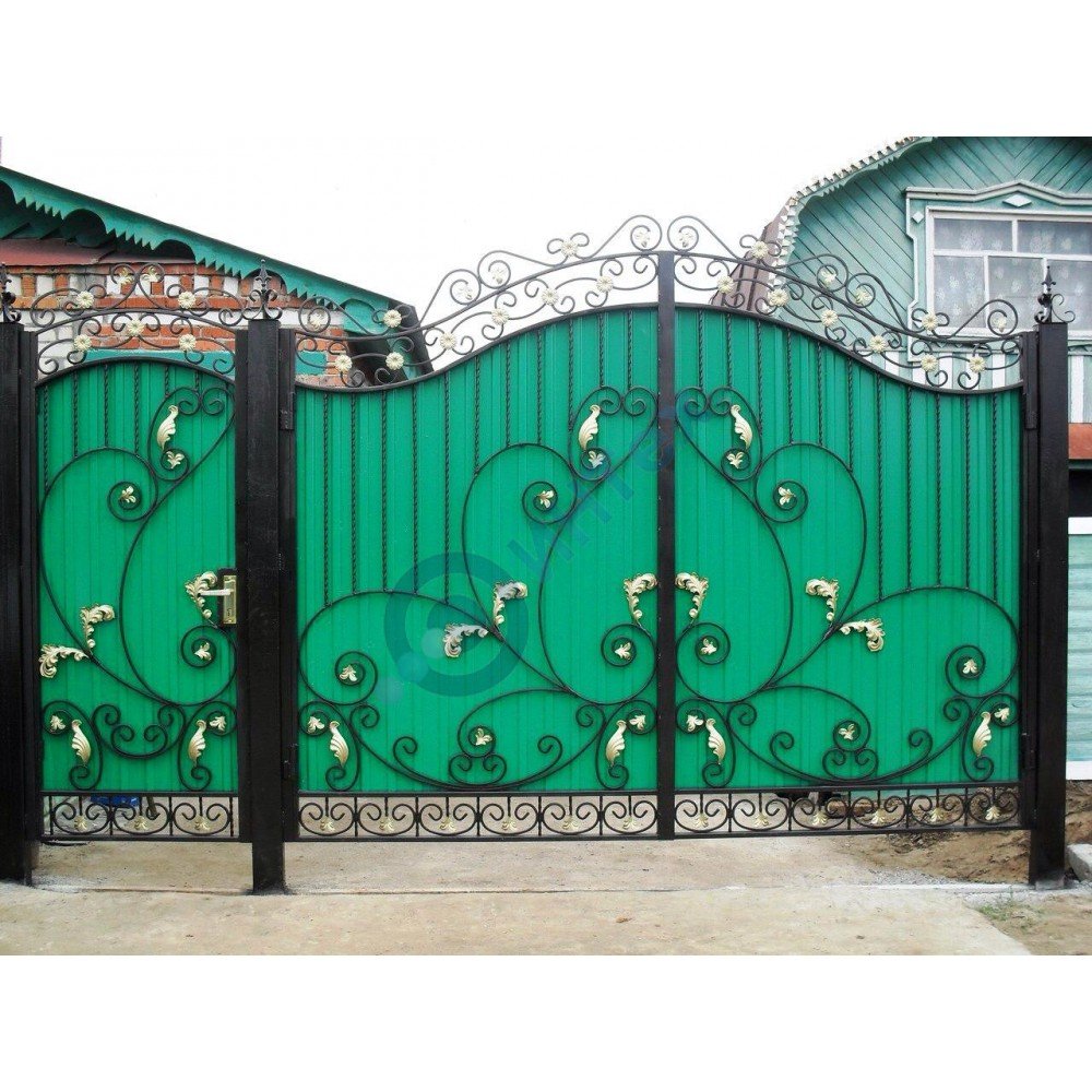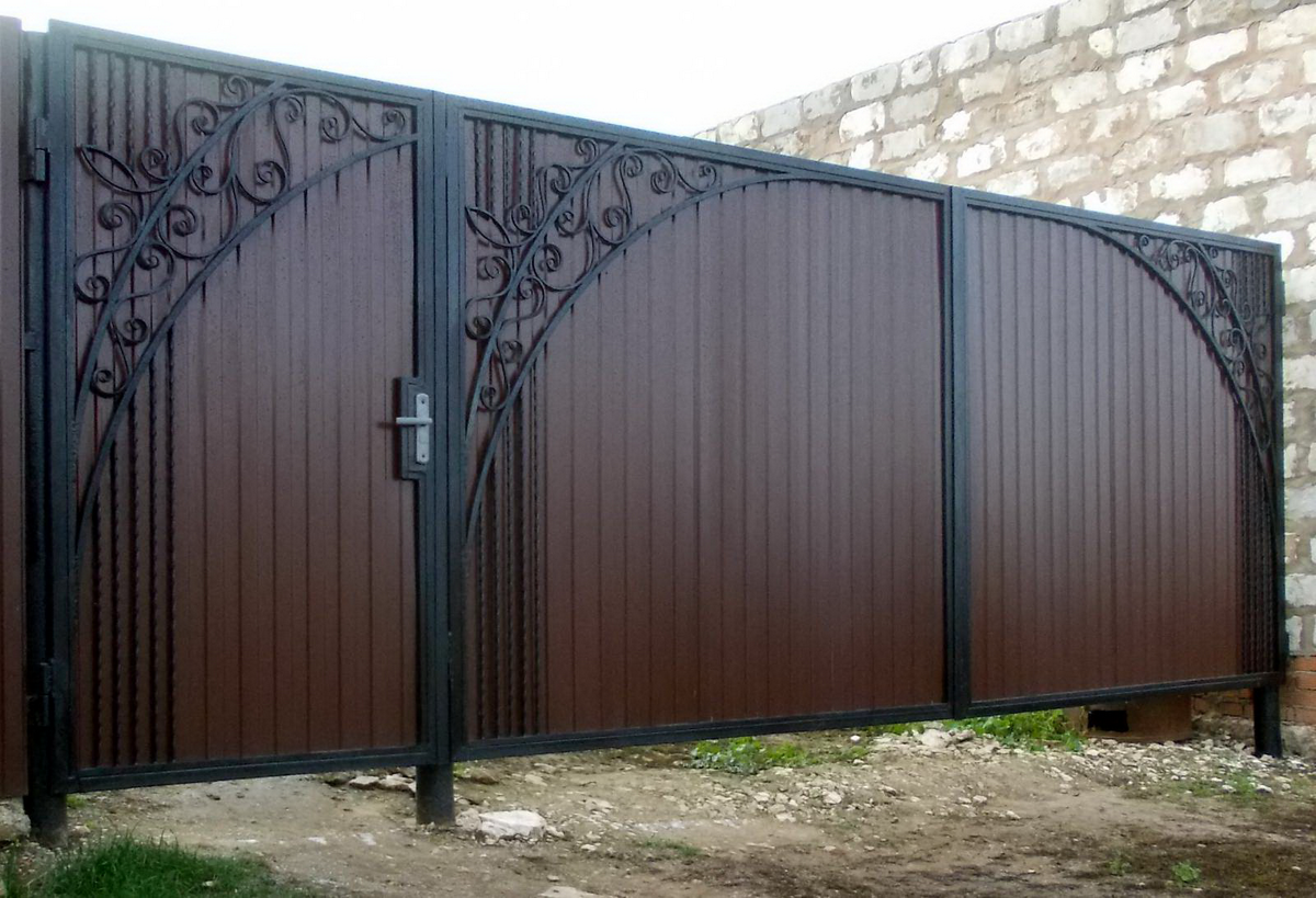 Ворота из профнастила с элементами ковки
