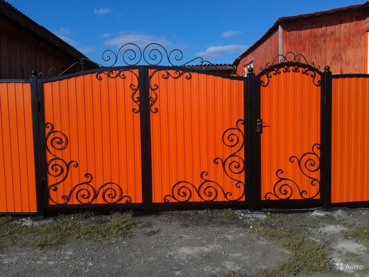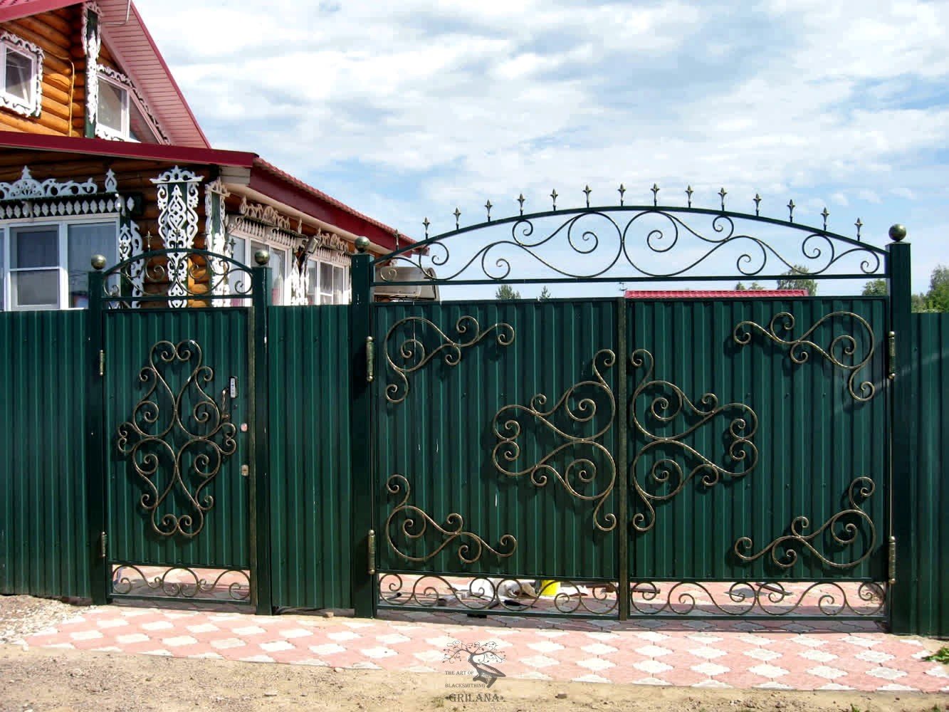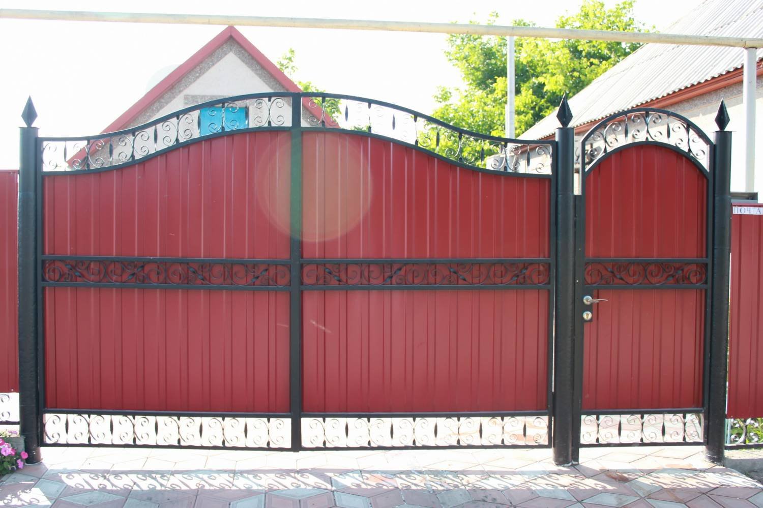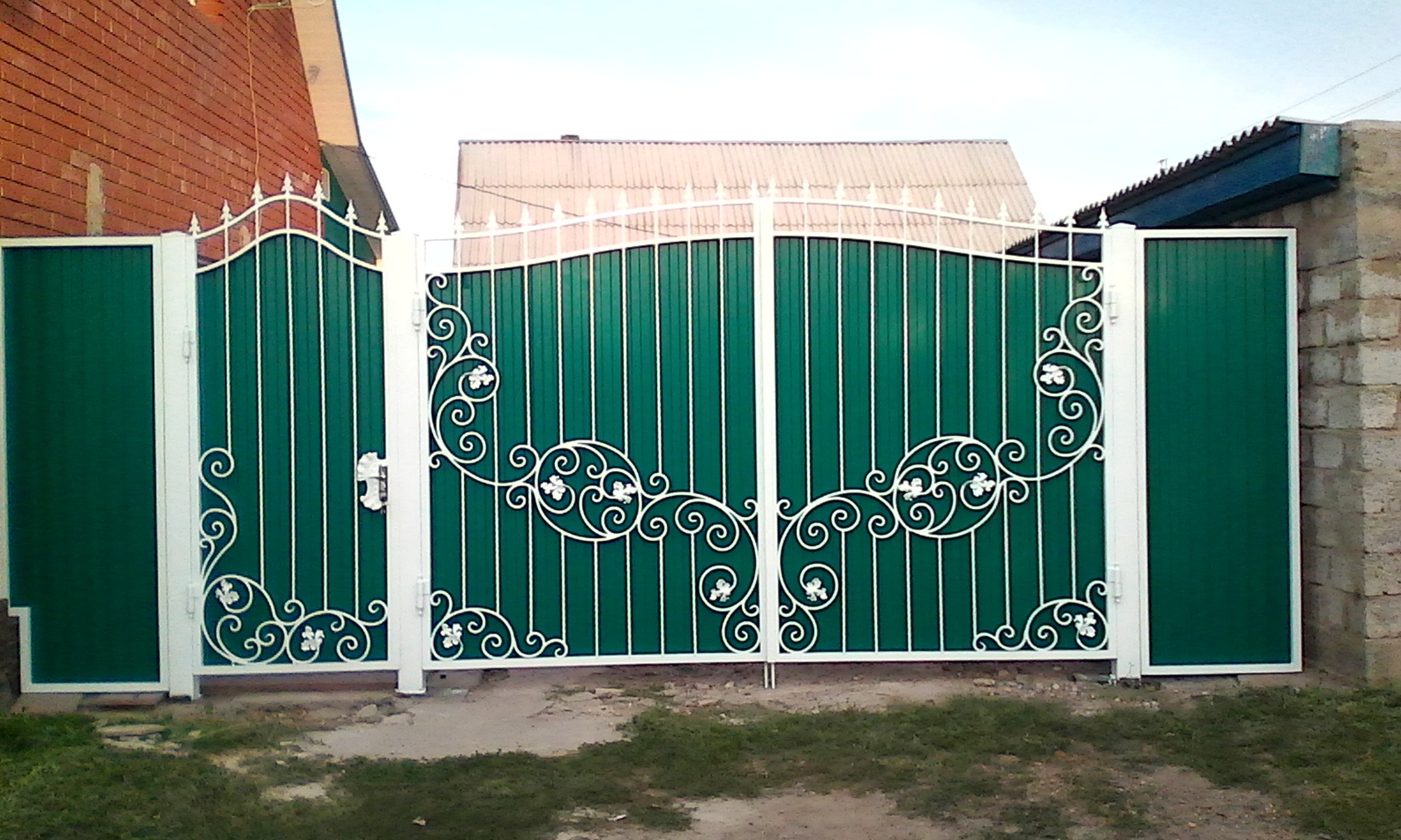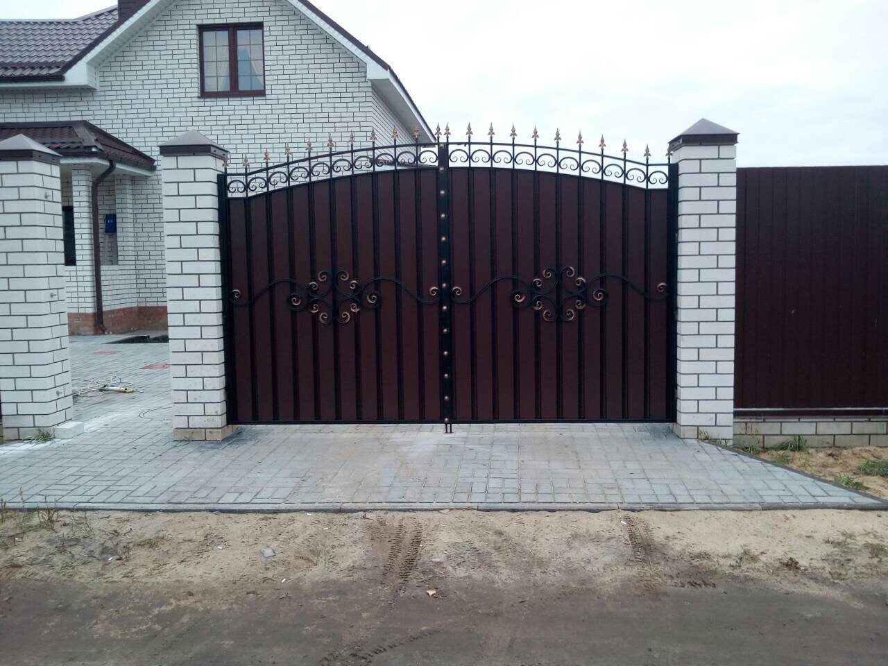 Ворота из профнастила с элементами ковки