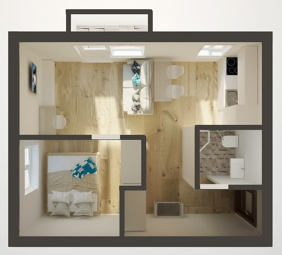 Перепланировка однокомнатной квартиры в двухкомнатную 33 кв.м