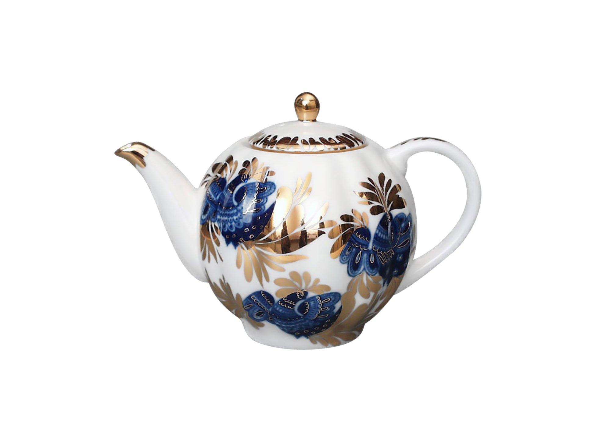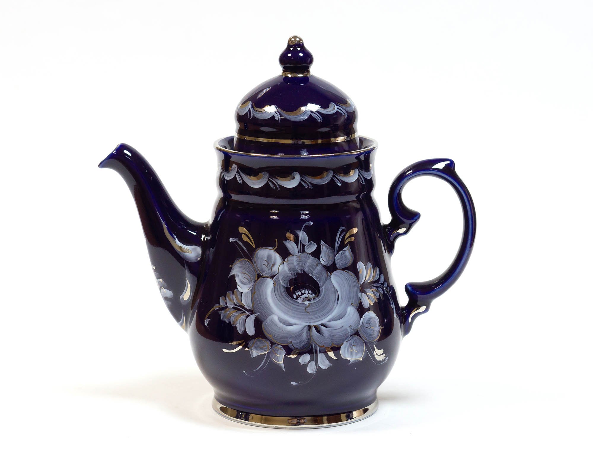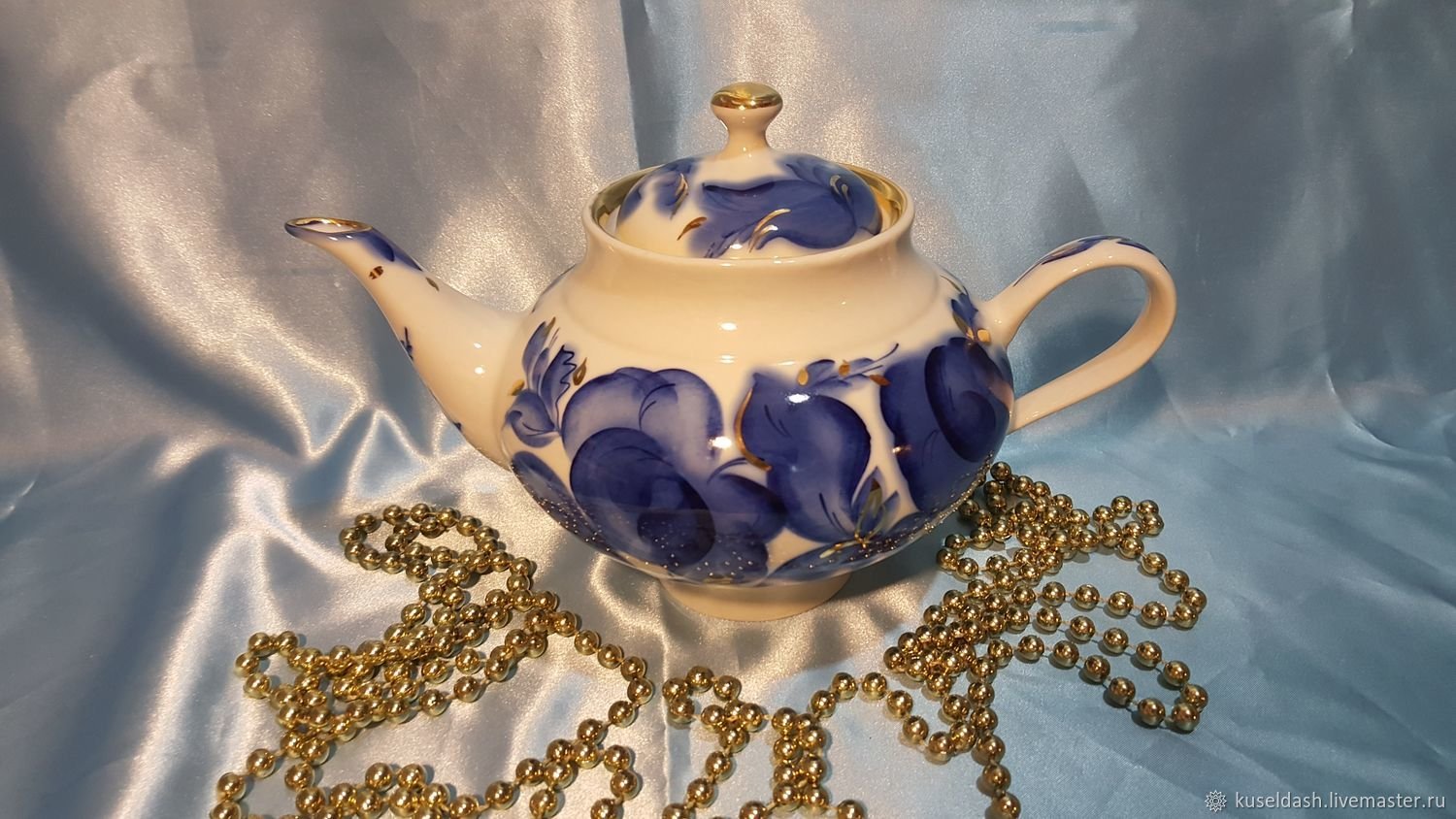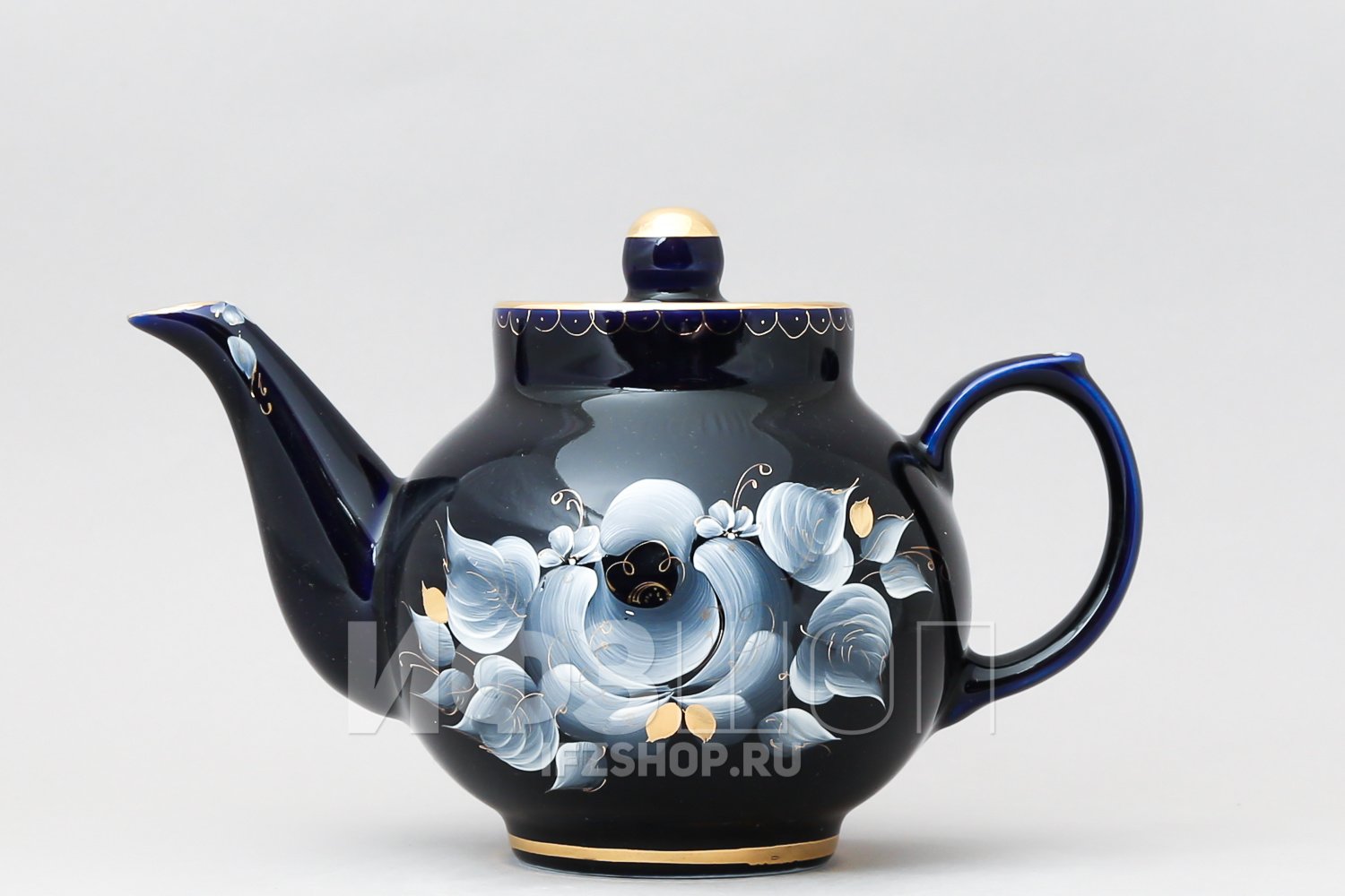 Чайник Гжель кобальт с позолотой