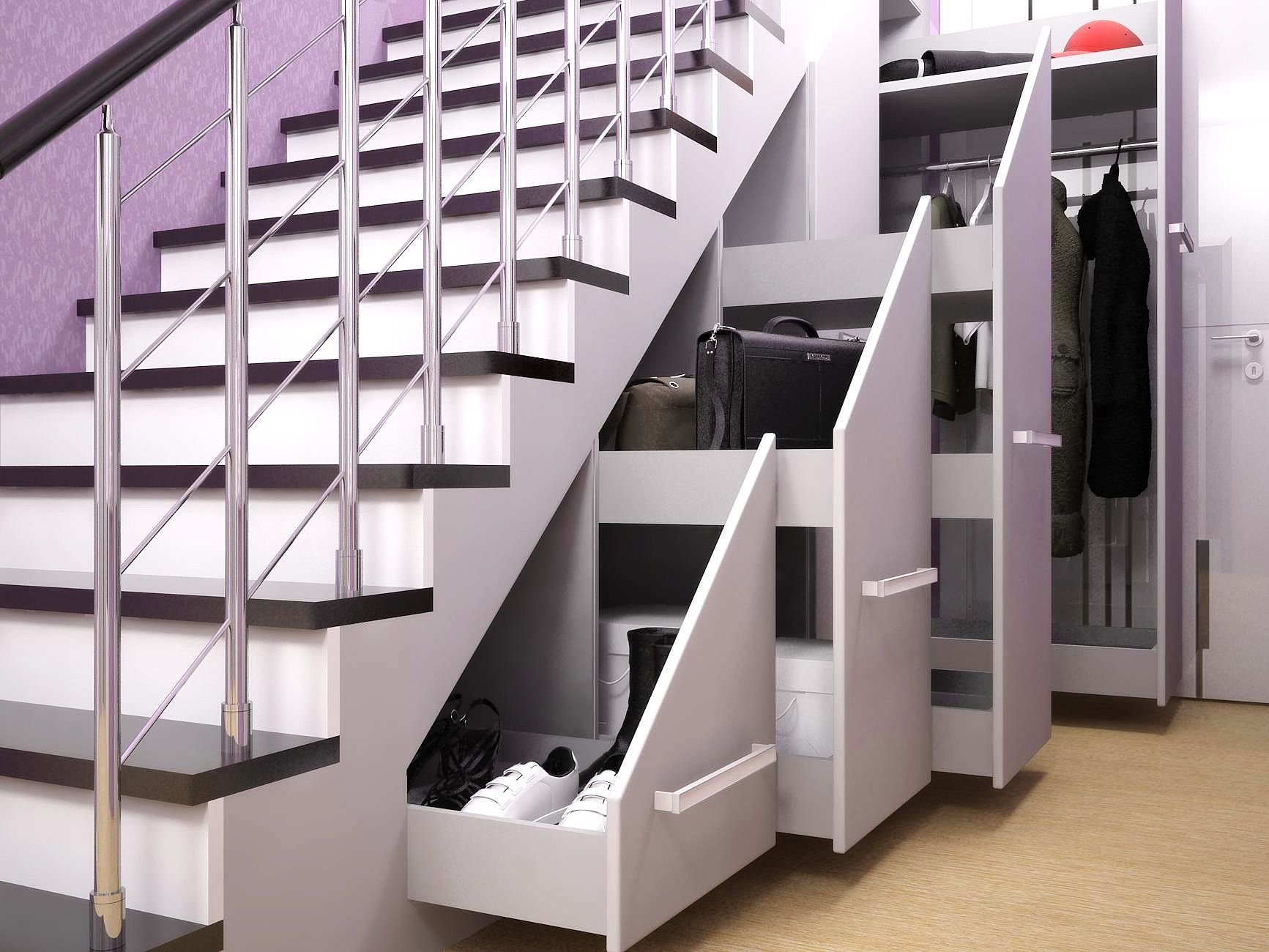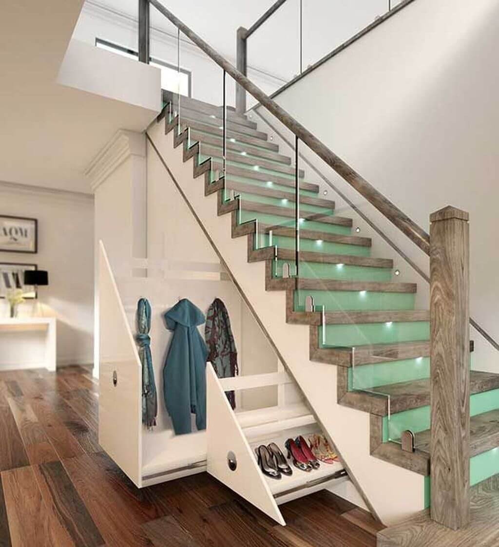 Обувной шкаф под лестницей