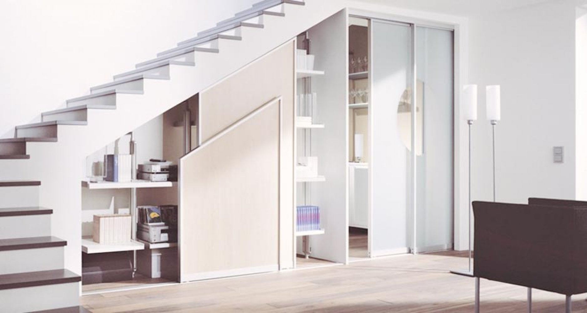 Встроенный шкаф под лестницей