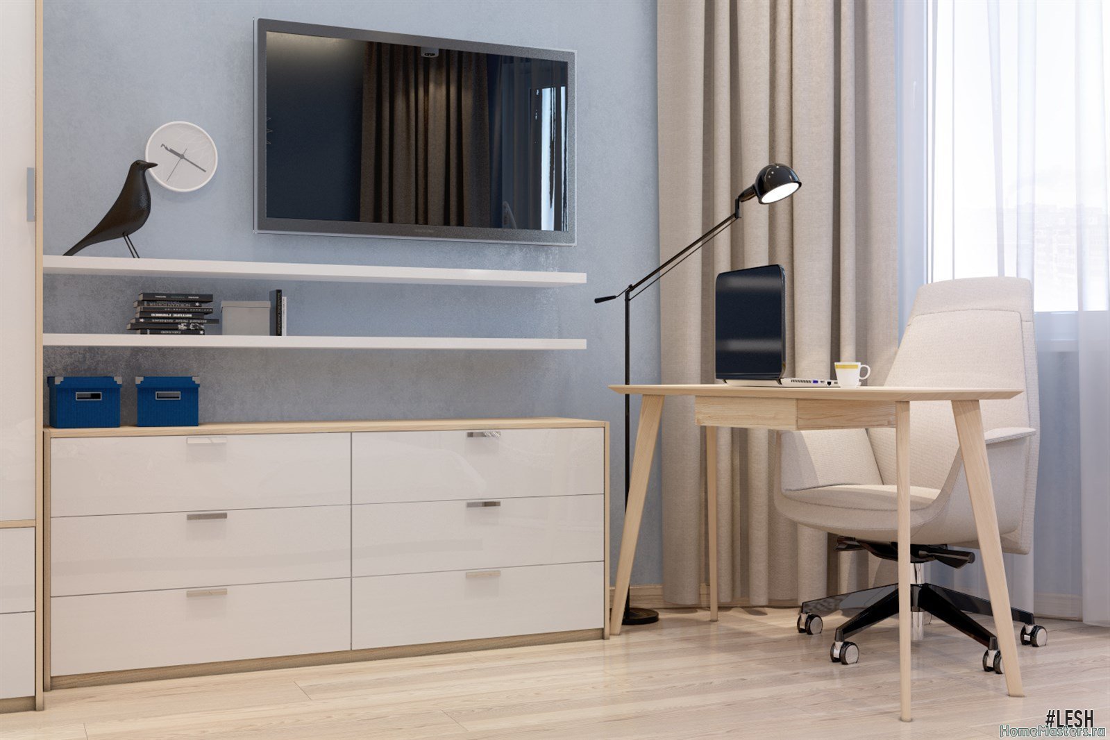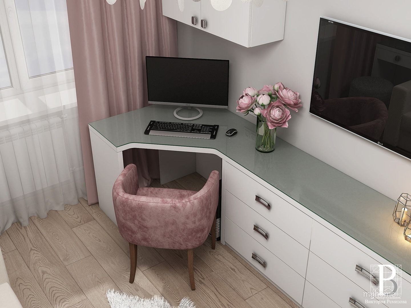Телевизор над письменным столом