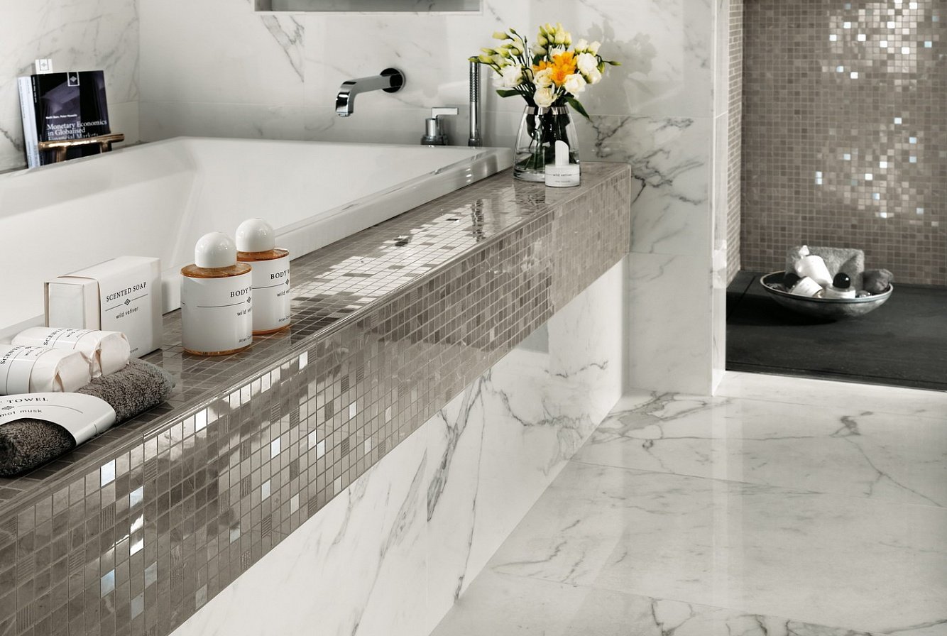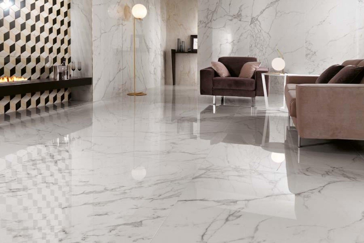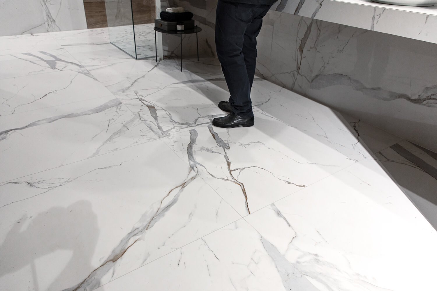 Виниловая плитка quick-Step Ambient Glue Plus мрамор Каррарский белый