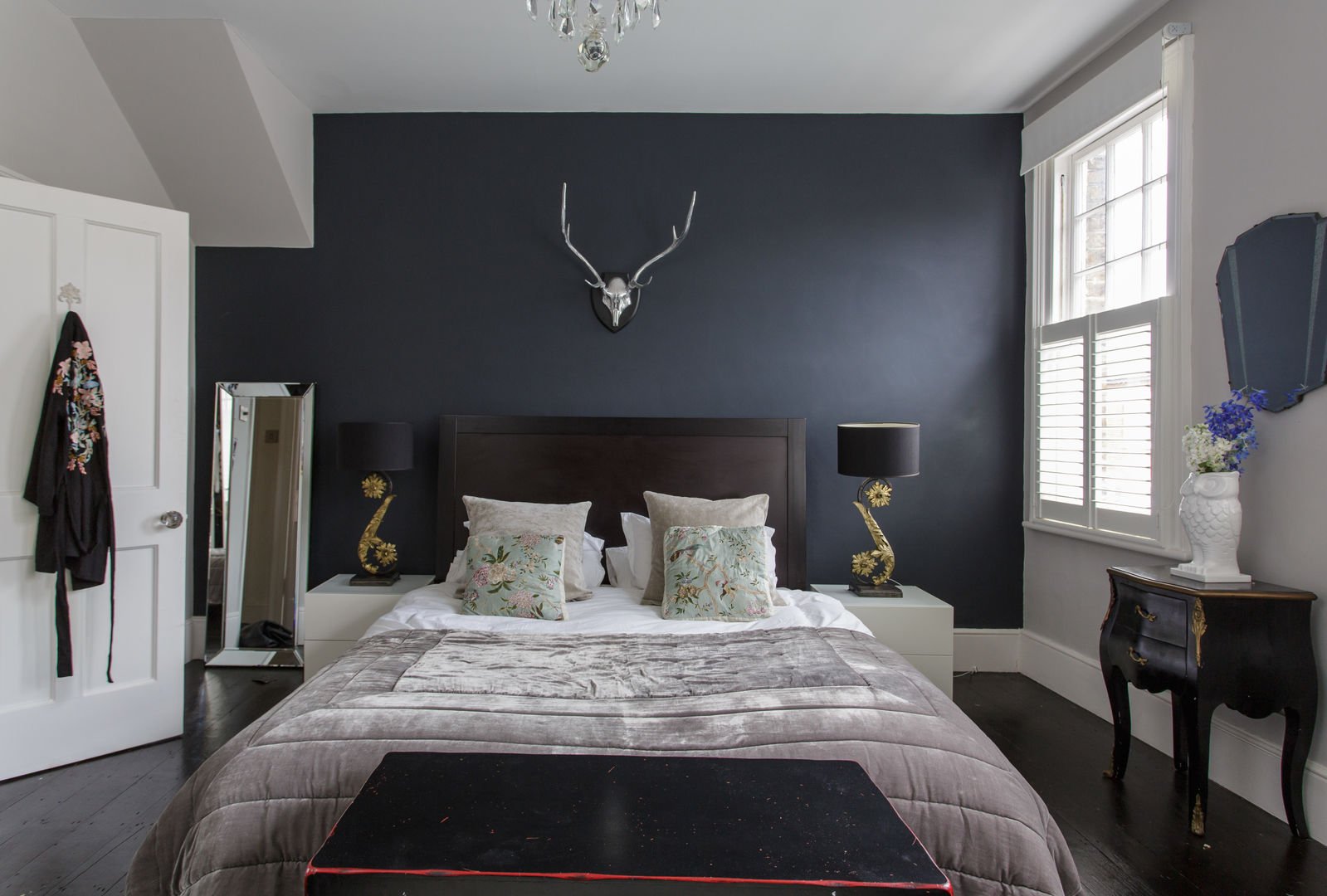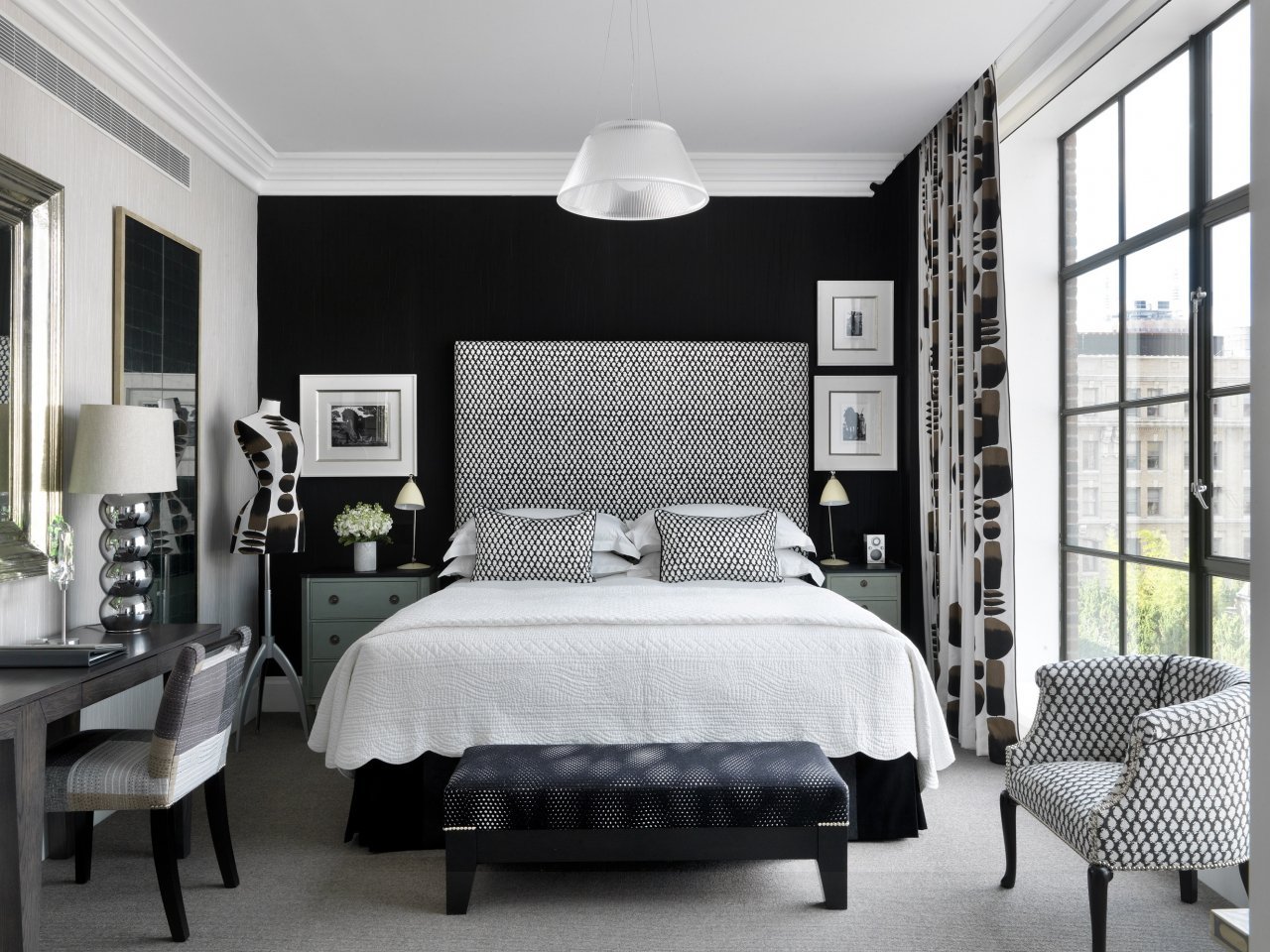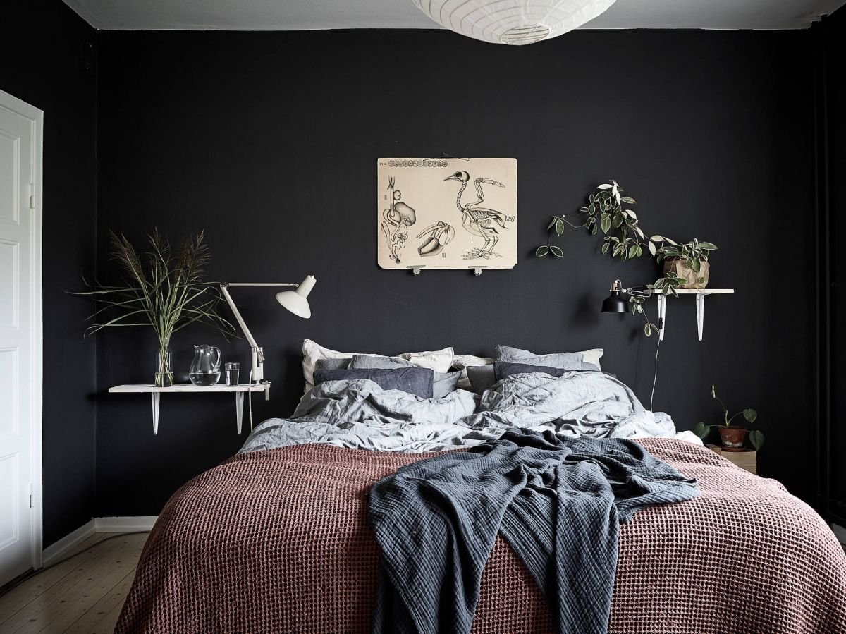 Черная стена в спальне
