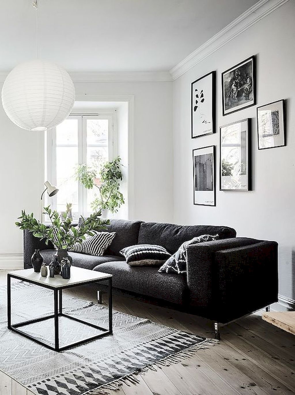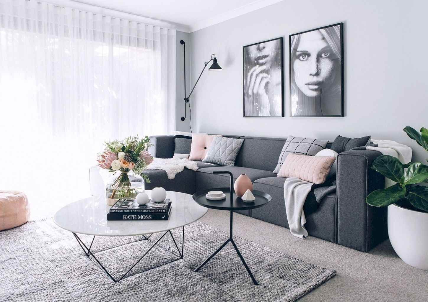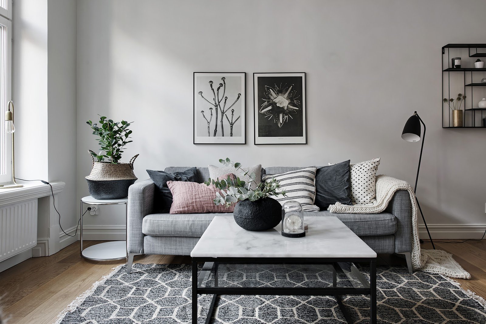 Серый диван в скандинавском интерьере