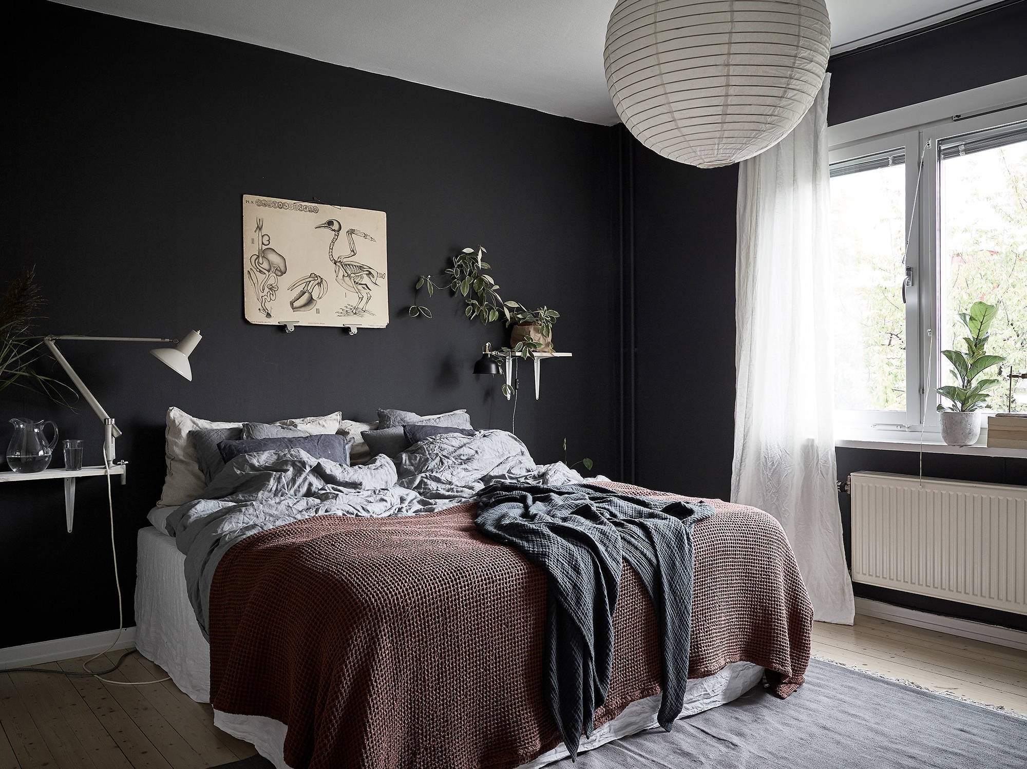 Спальня в темных тонах Сканди