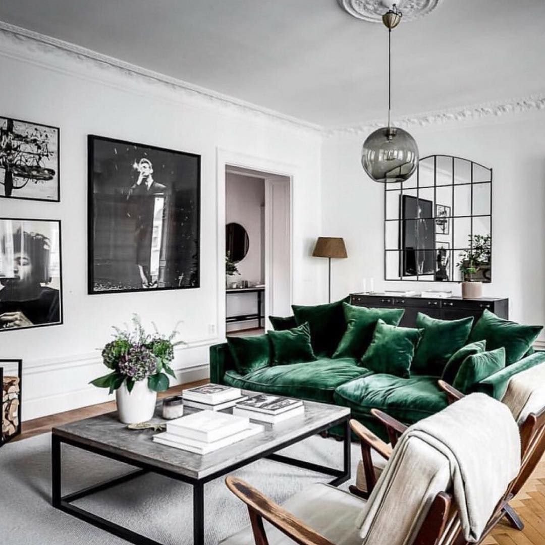Гостиная в скандинавском стиле изумрудный цвет