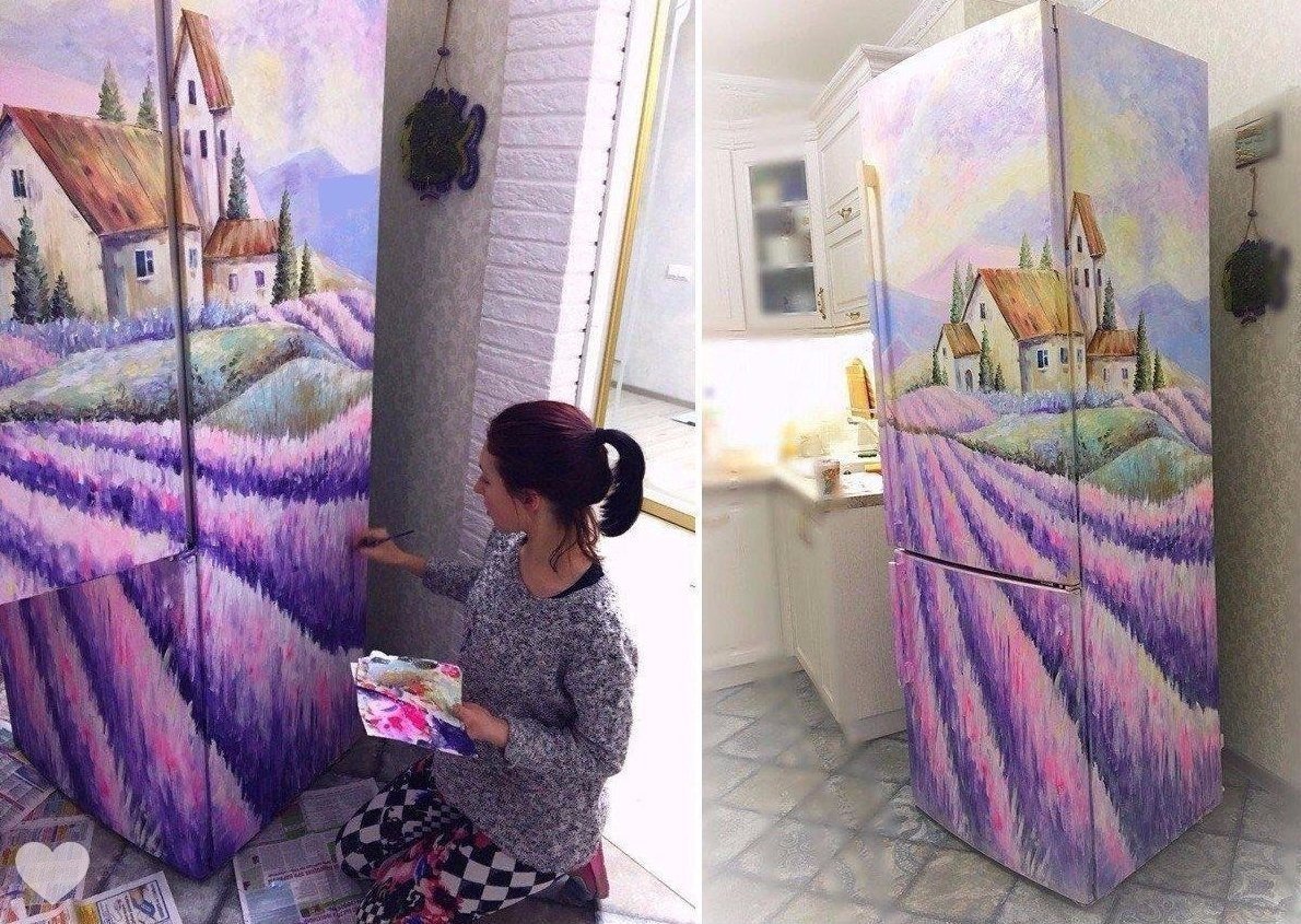 Холодильник красиво разрисовать красками
