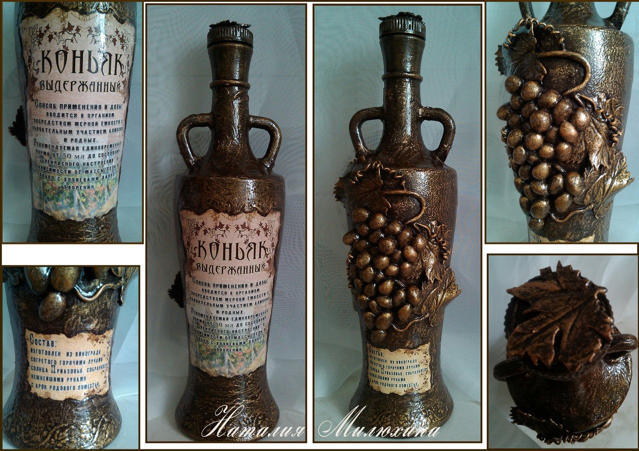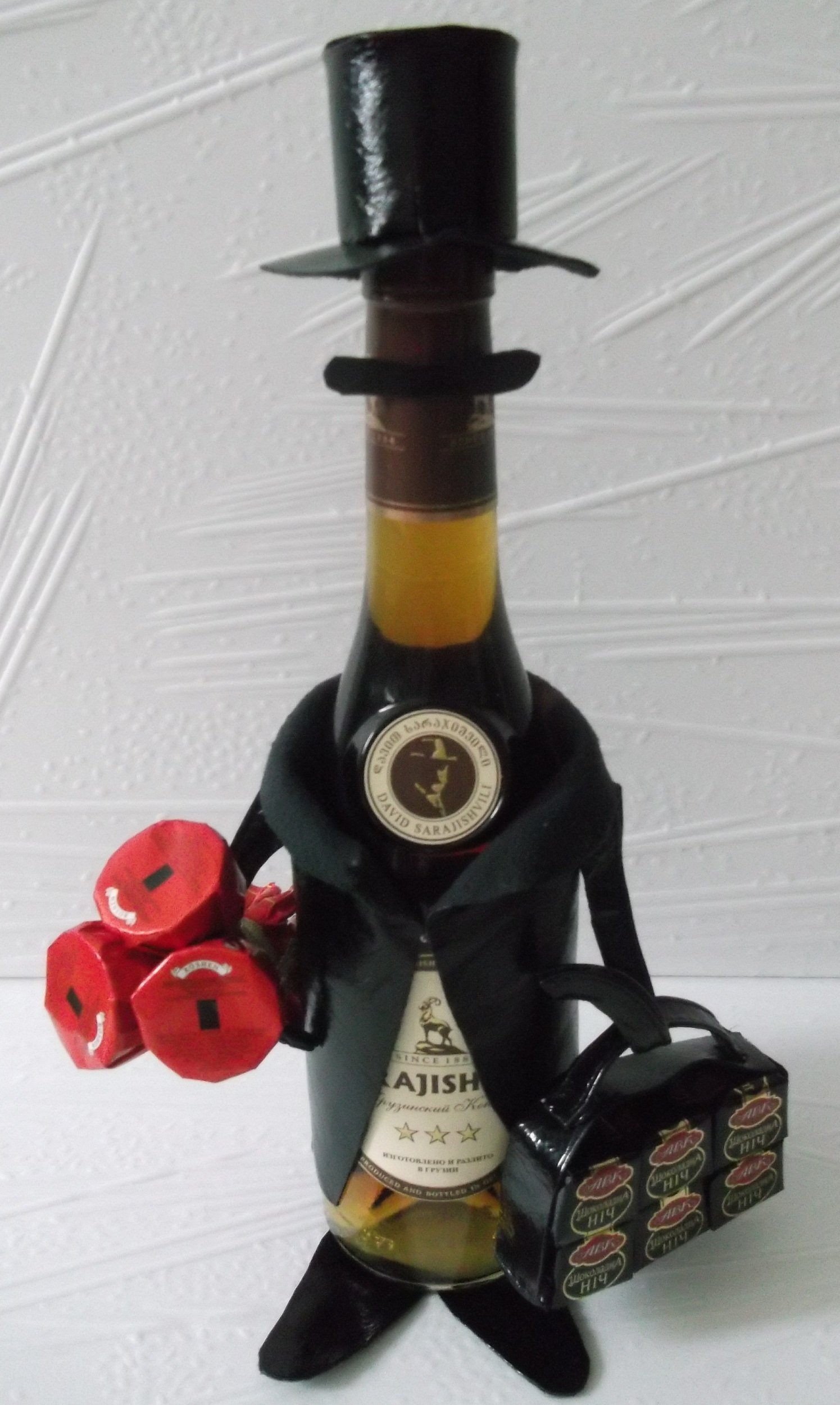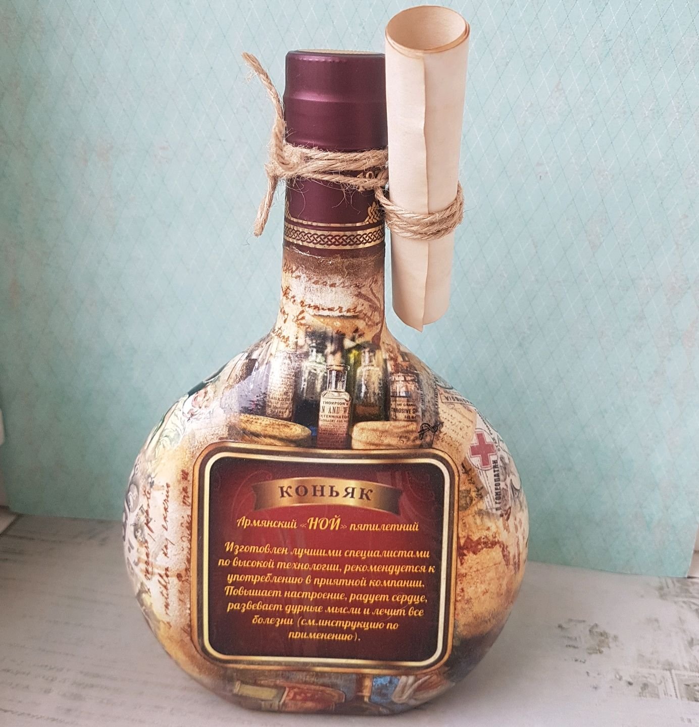 Декор бутылки коньяка в подарок для мужчины своими руками
