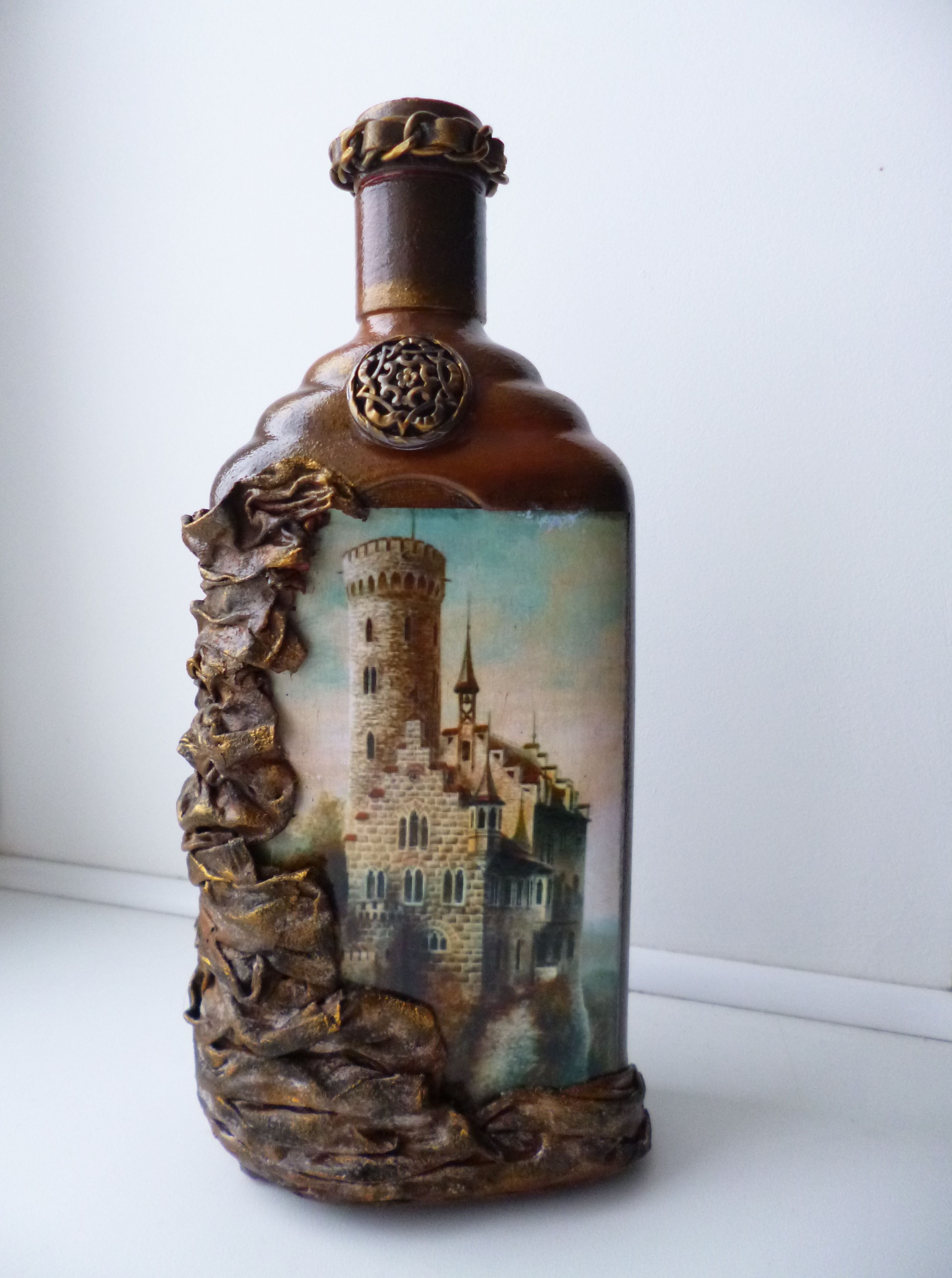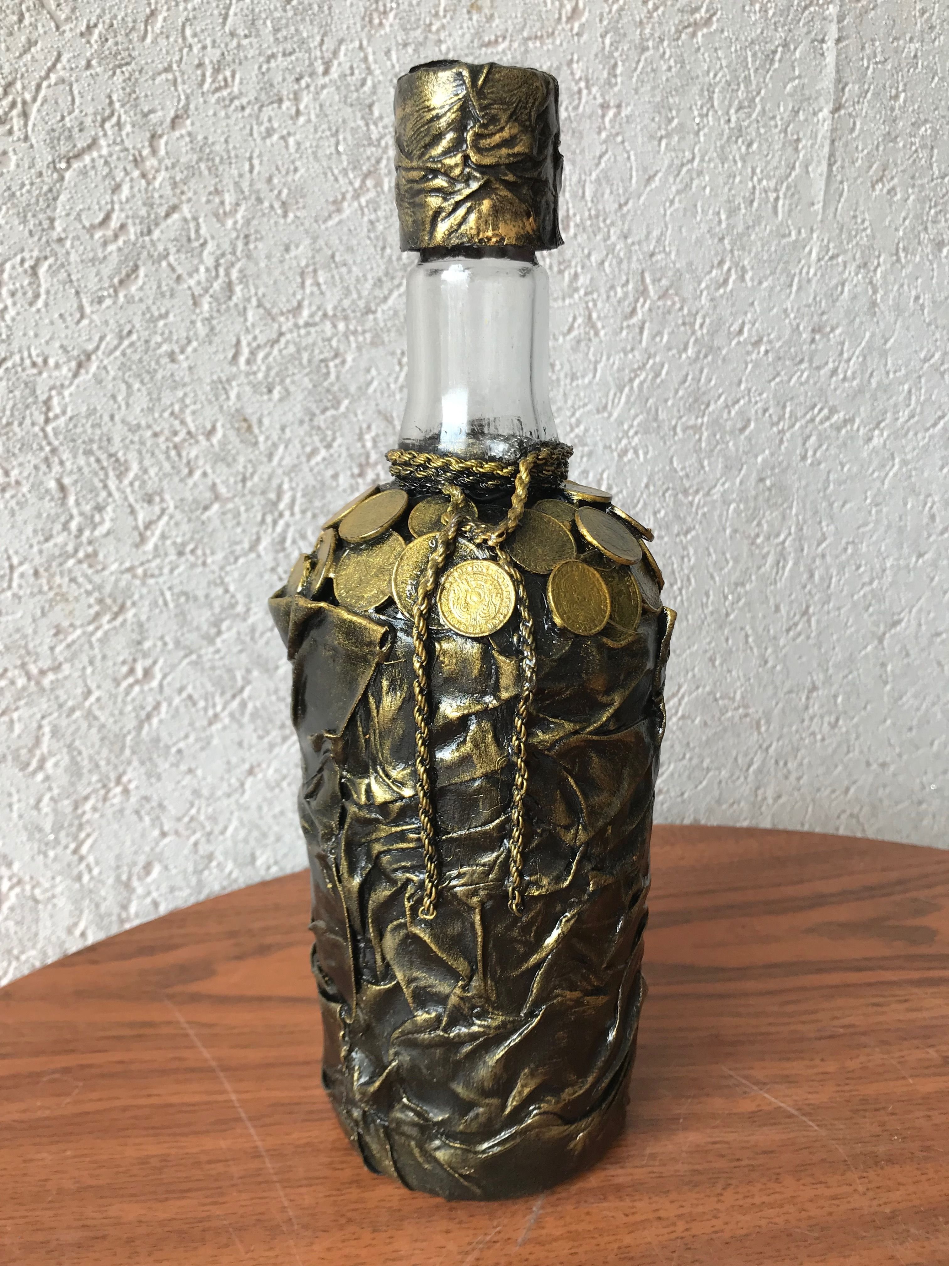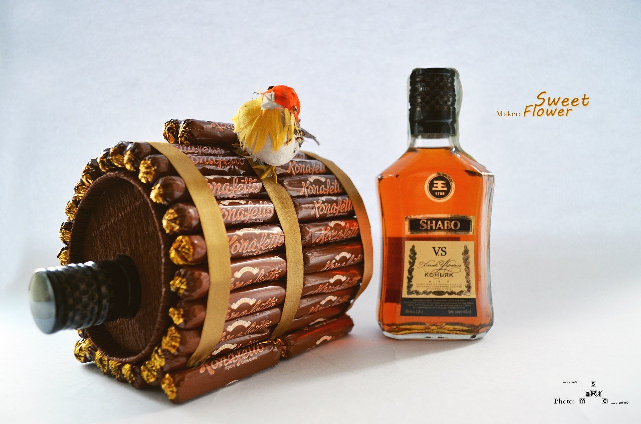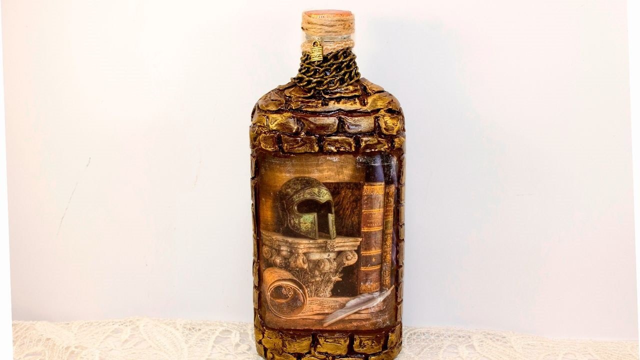 Декор бутылки коньяка в подарок для мужчины своими руками