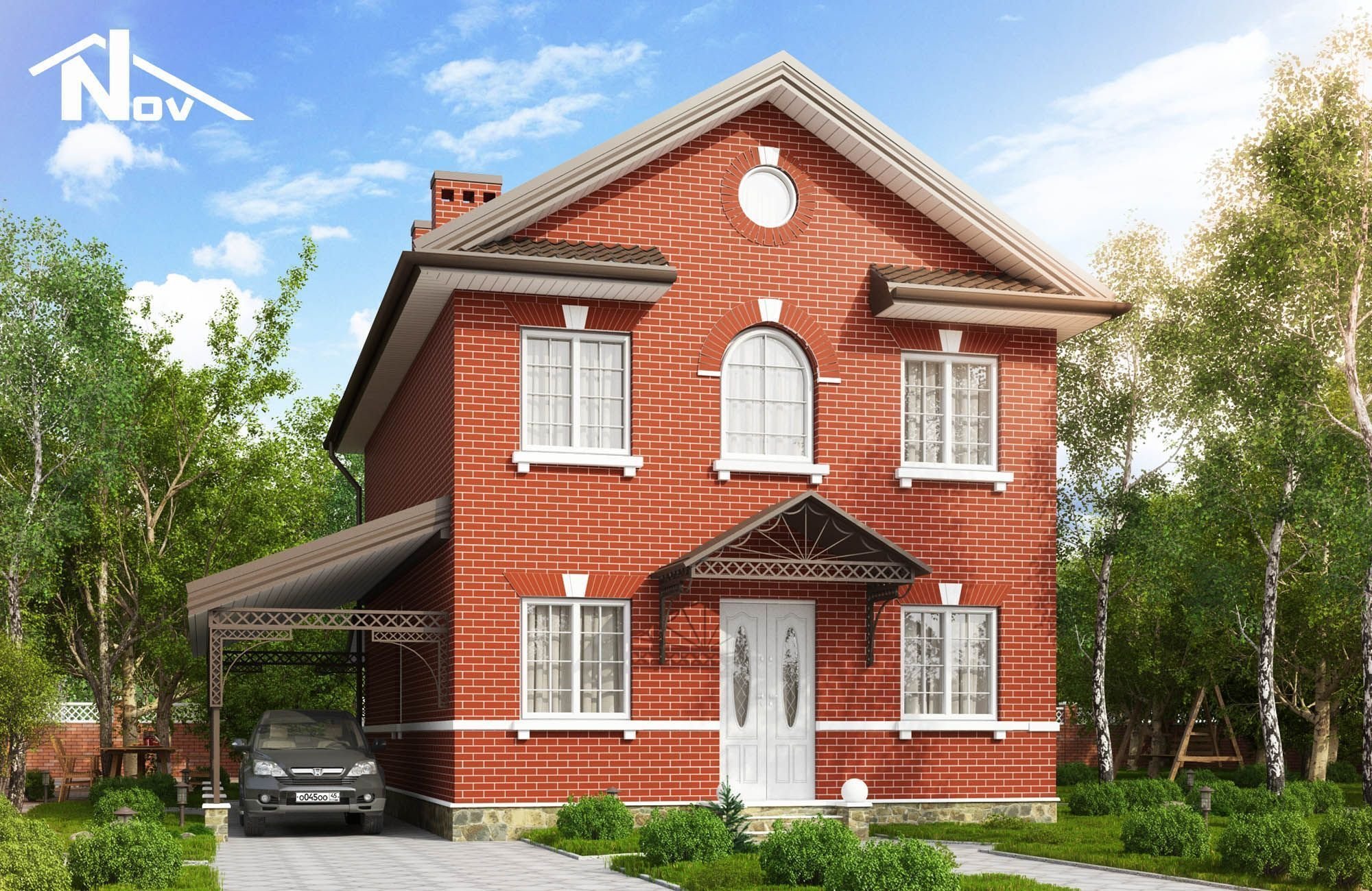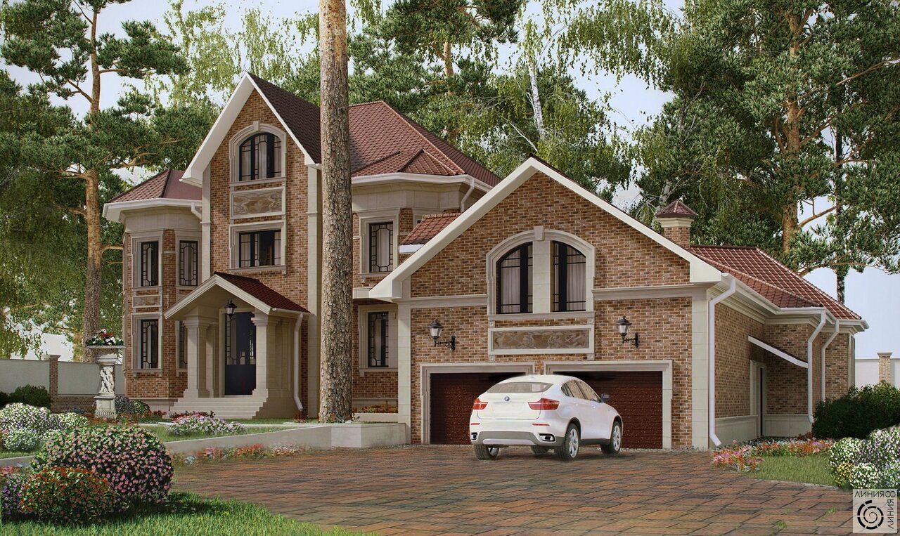 Двухэтажный кирпичный дом с гаражом