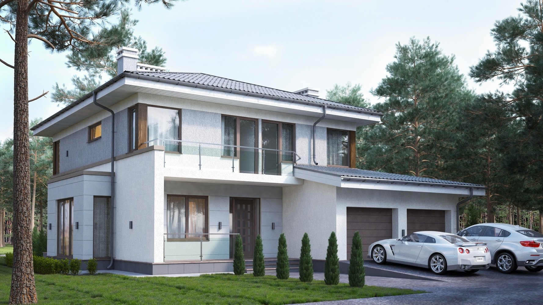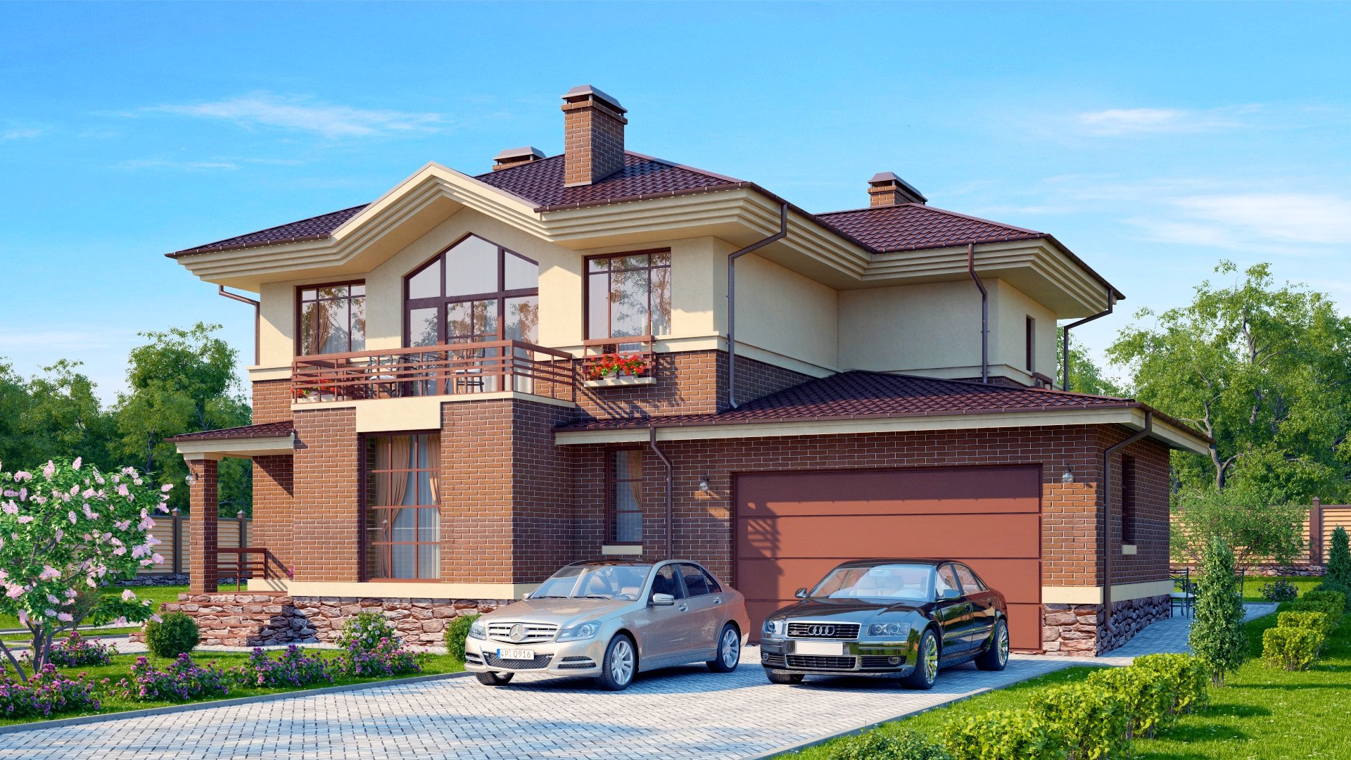Двухэтажный дом с гаражом на две машины