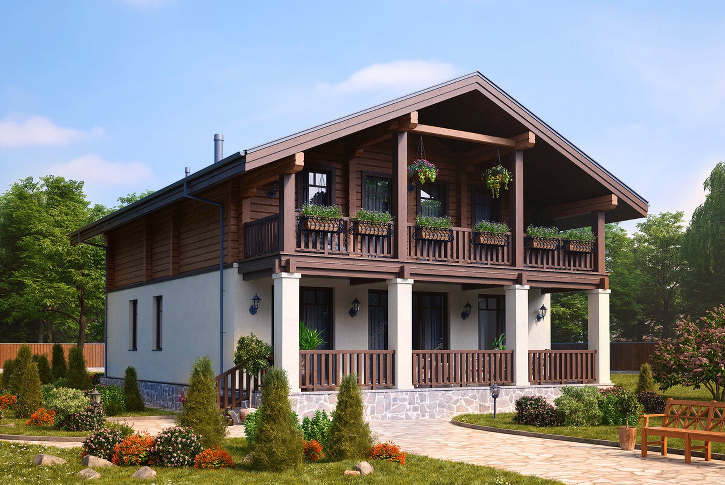 Двухэтажный дом с террасой