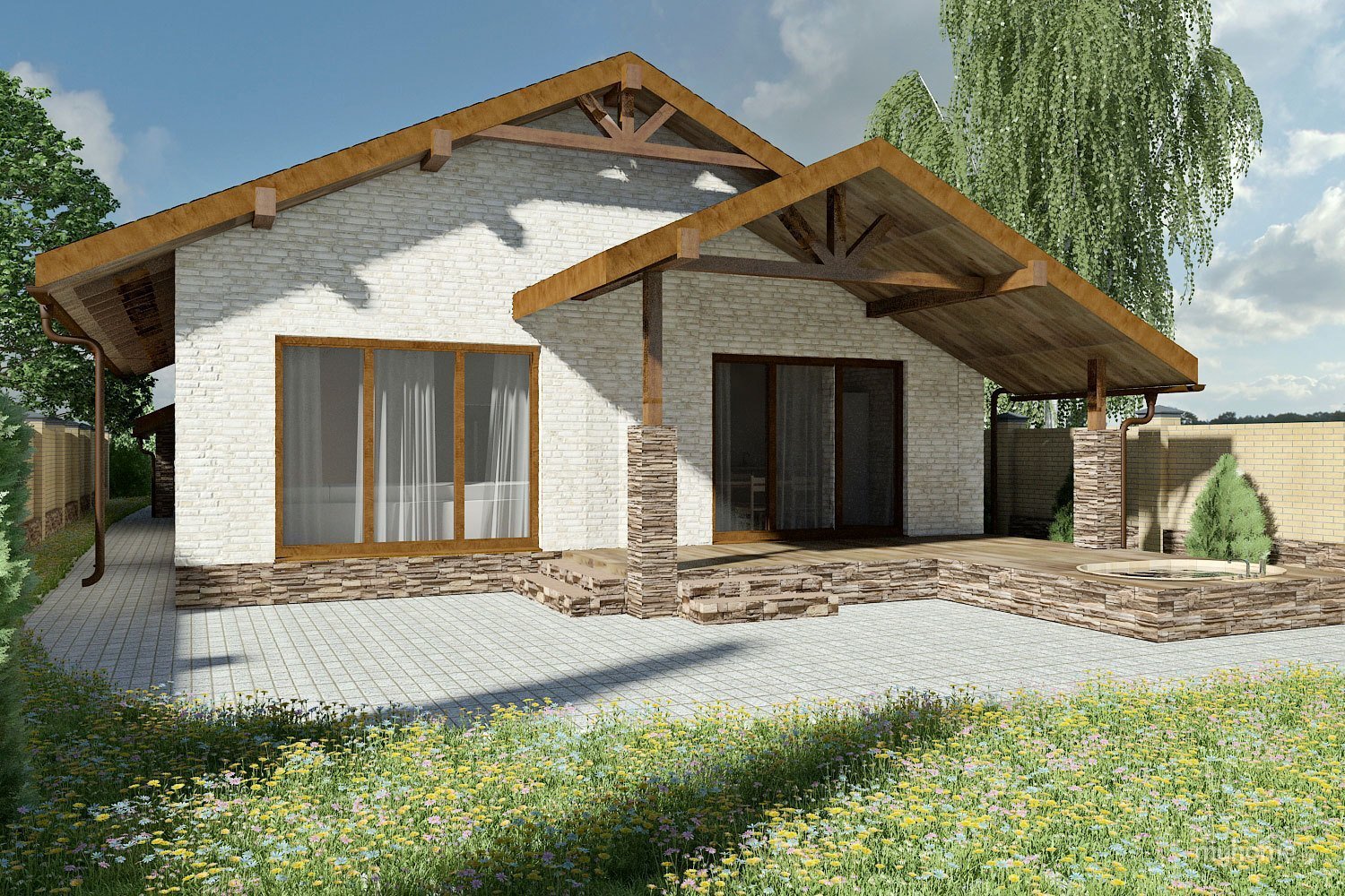 Дом Шале одноэтажный 200 кв.м из кирпича