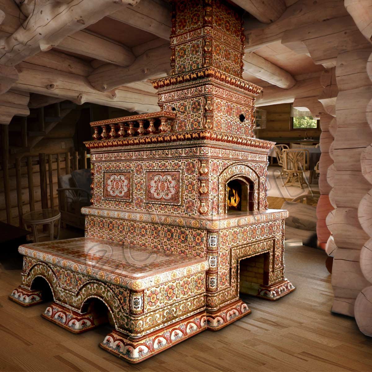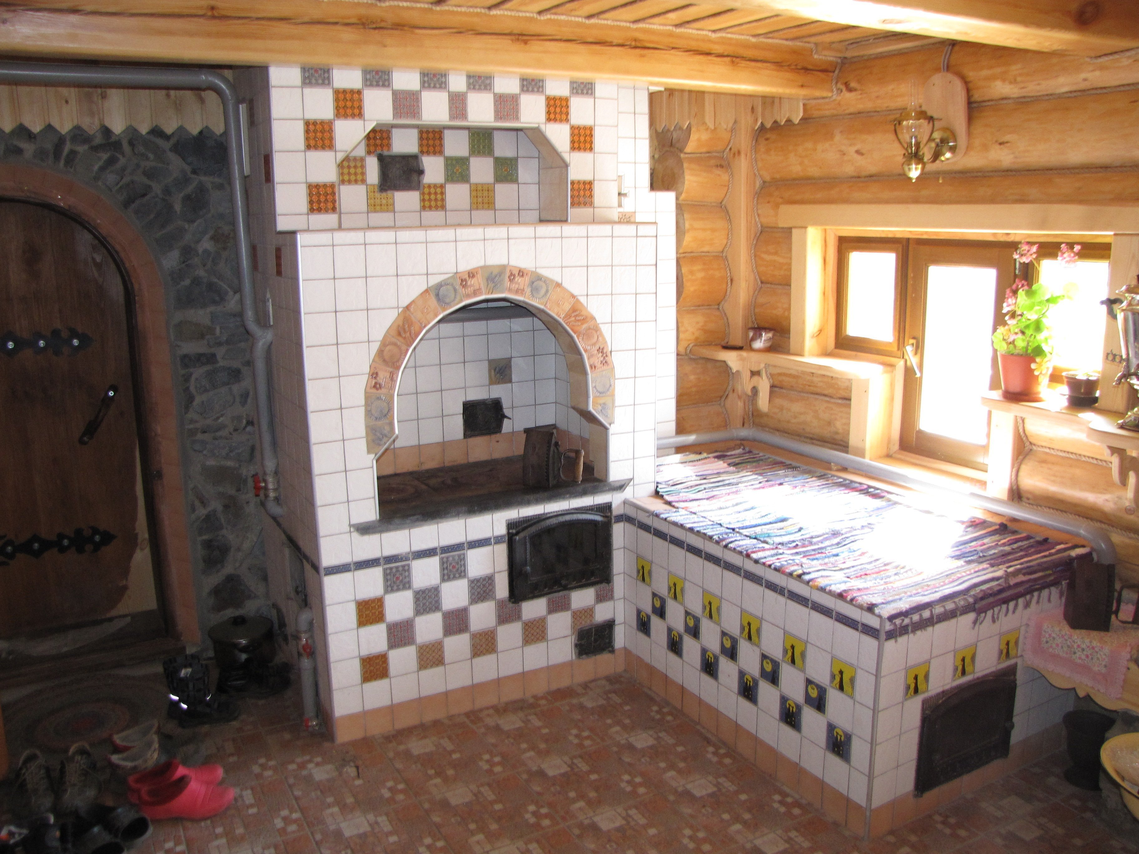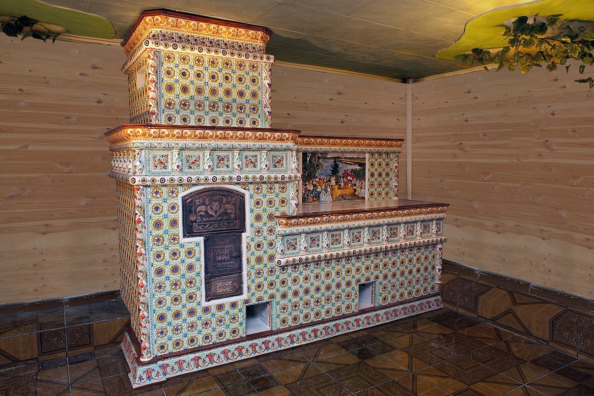 Деревенская печь с изразцами