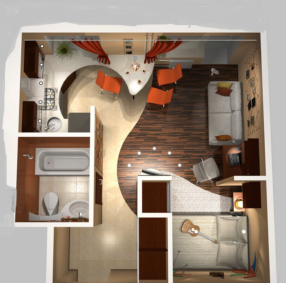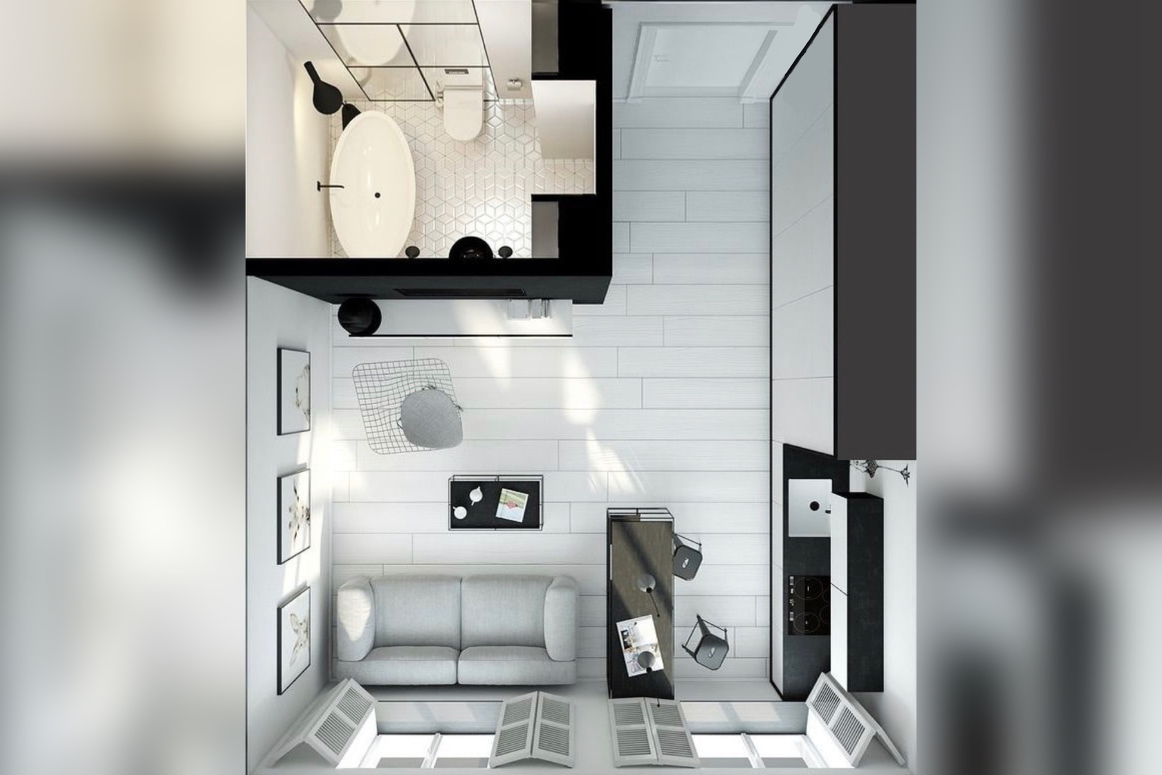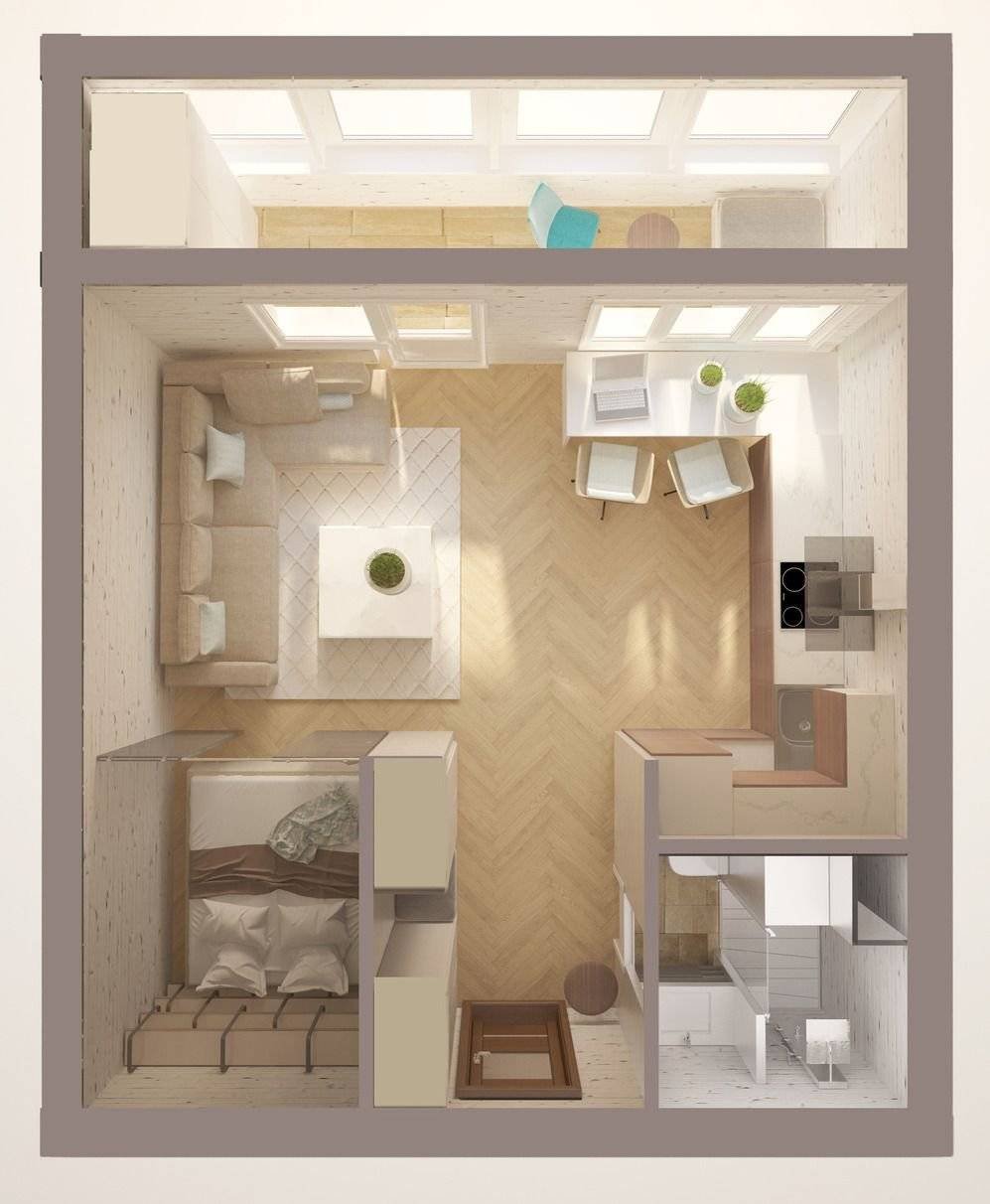 Перепланировка однокомнатной квартиры в студию 30 кв.м