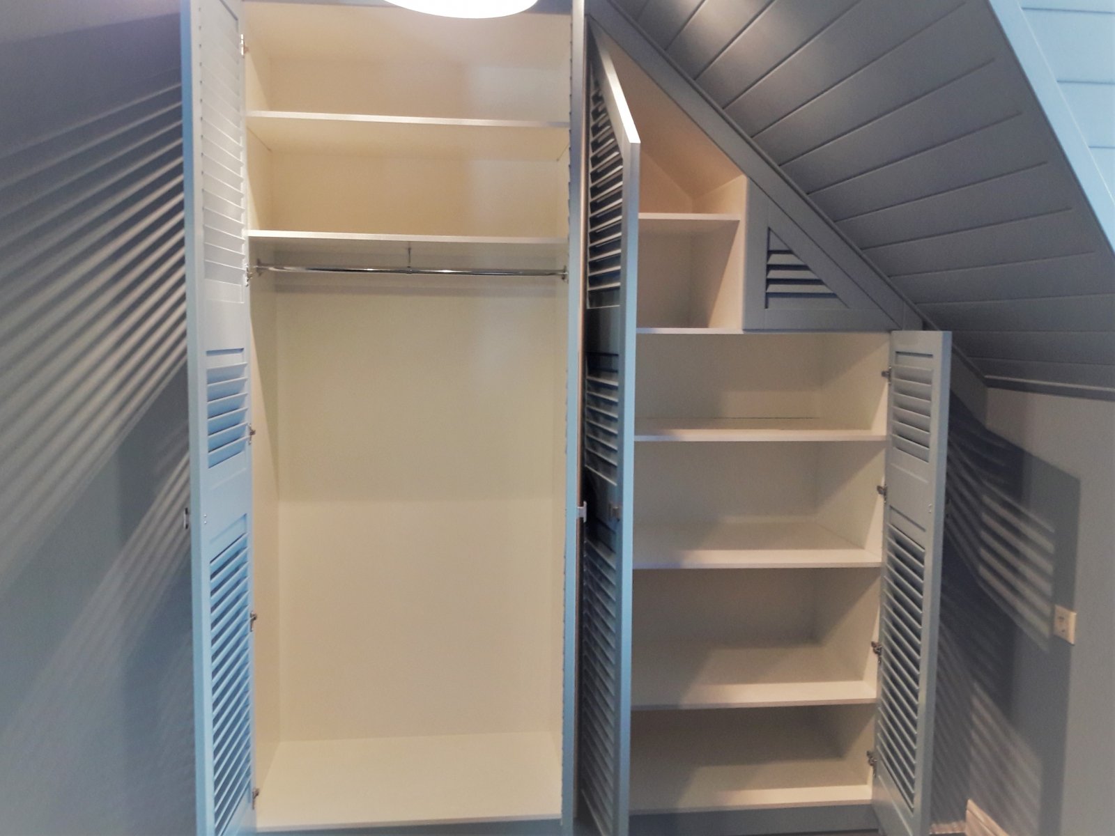 Шкаф с жалюзийными дверцами на мансарде