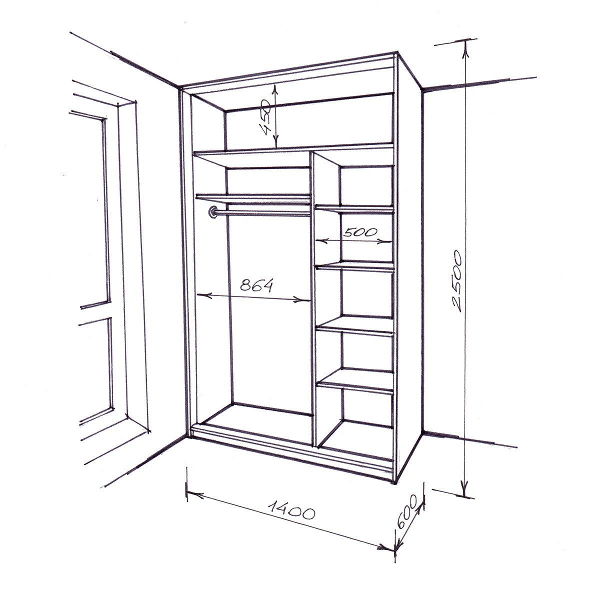 Шкаф купе встраимовый раскладка ширина 2400