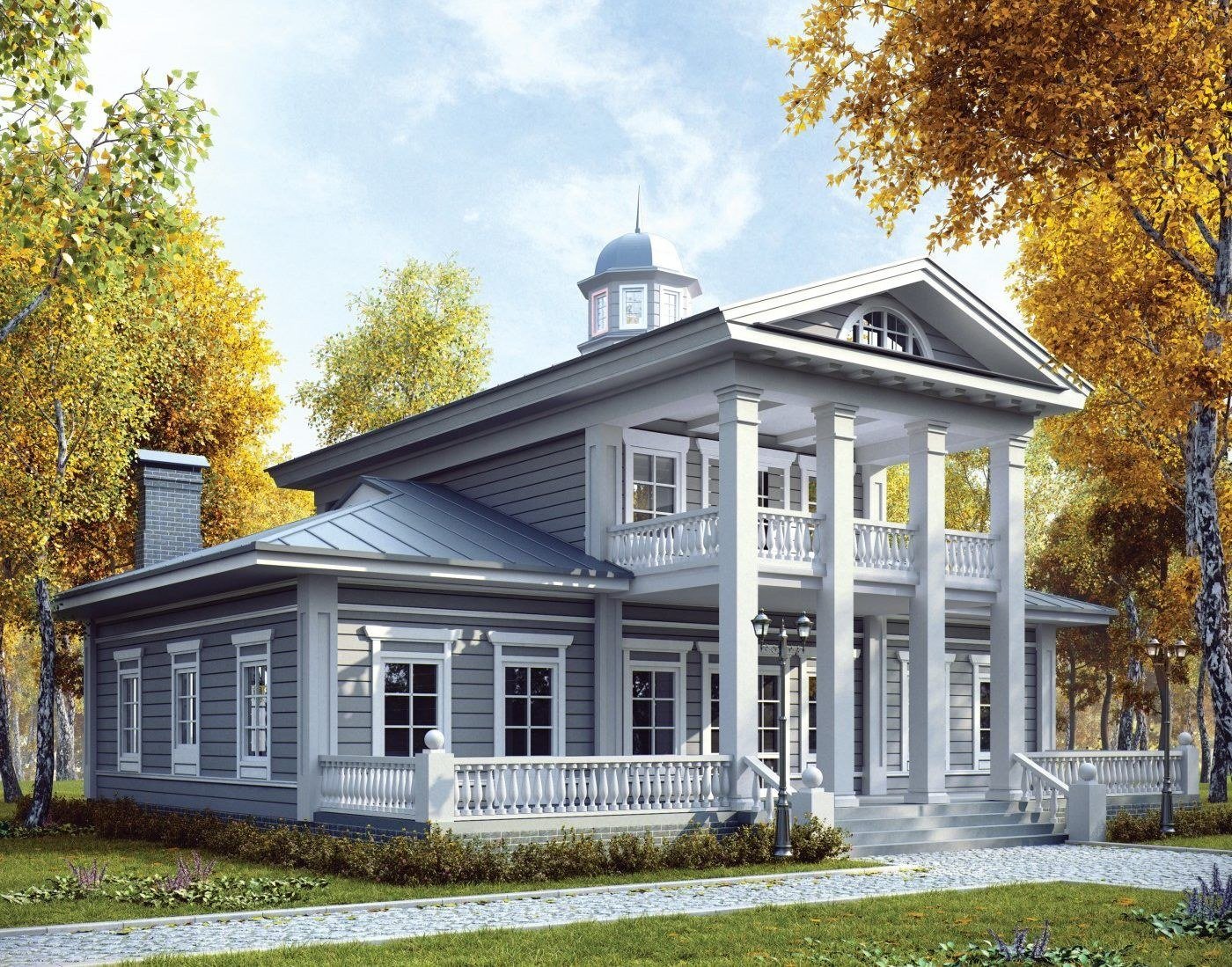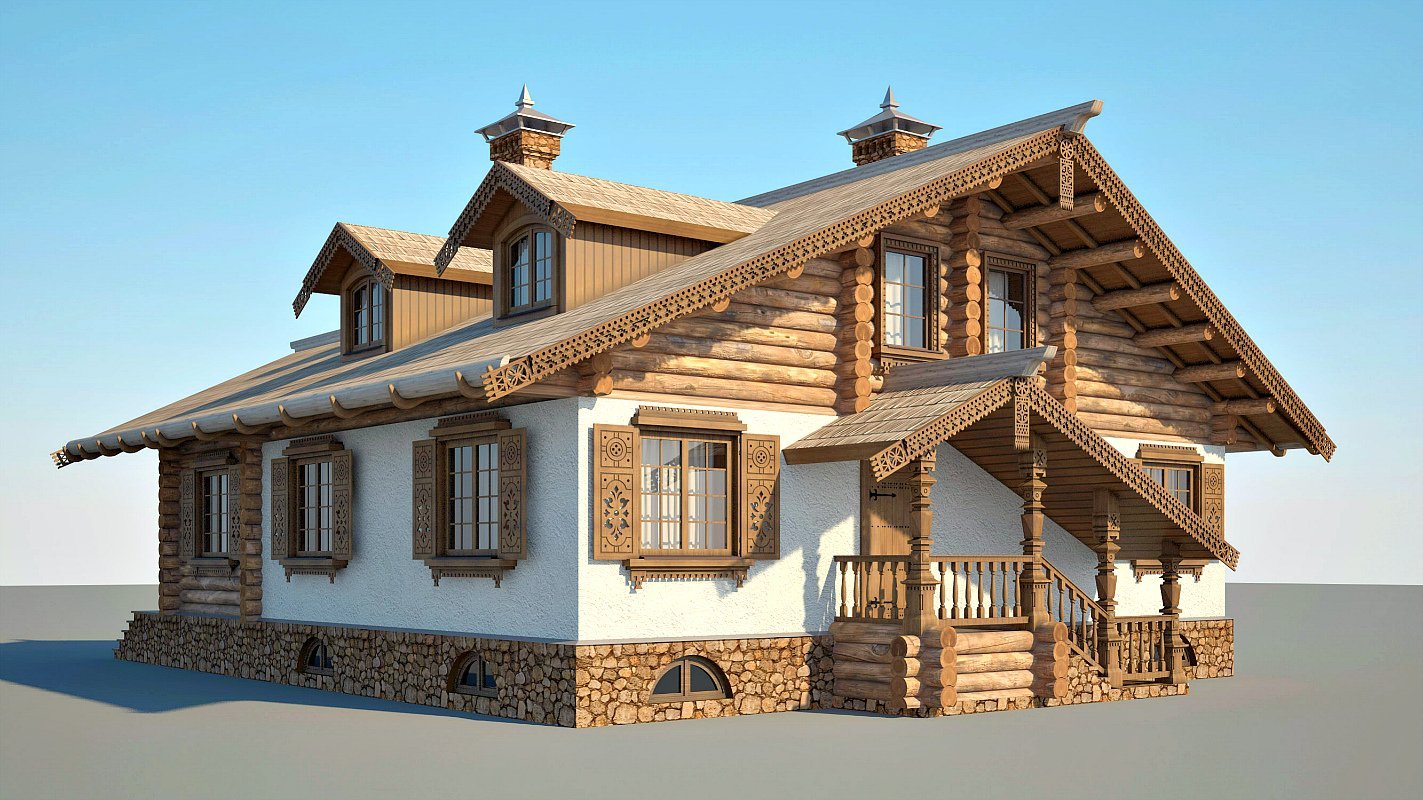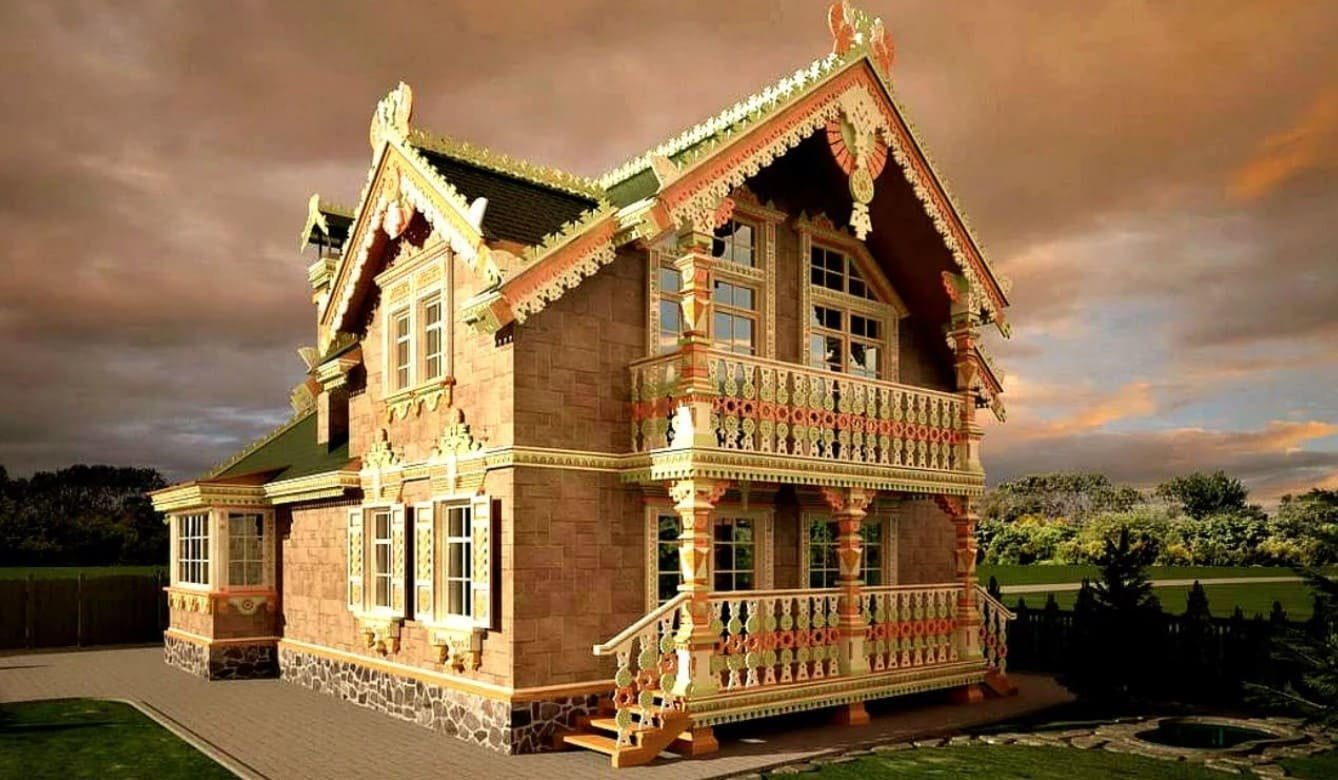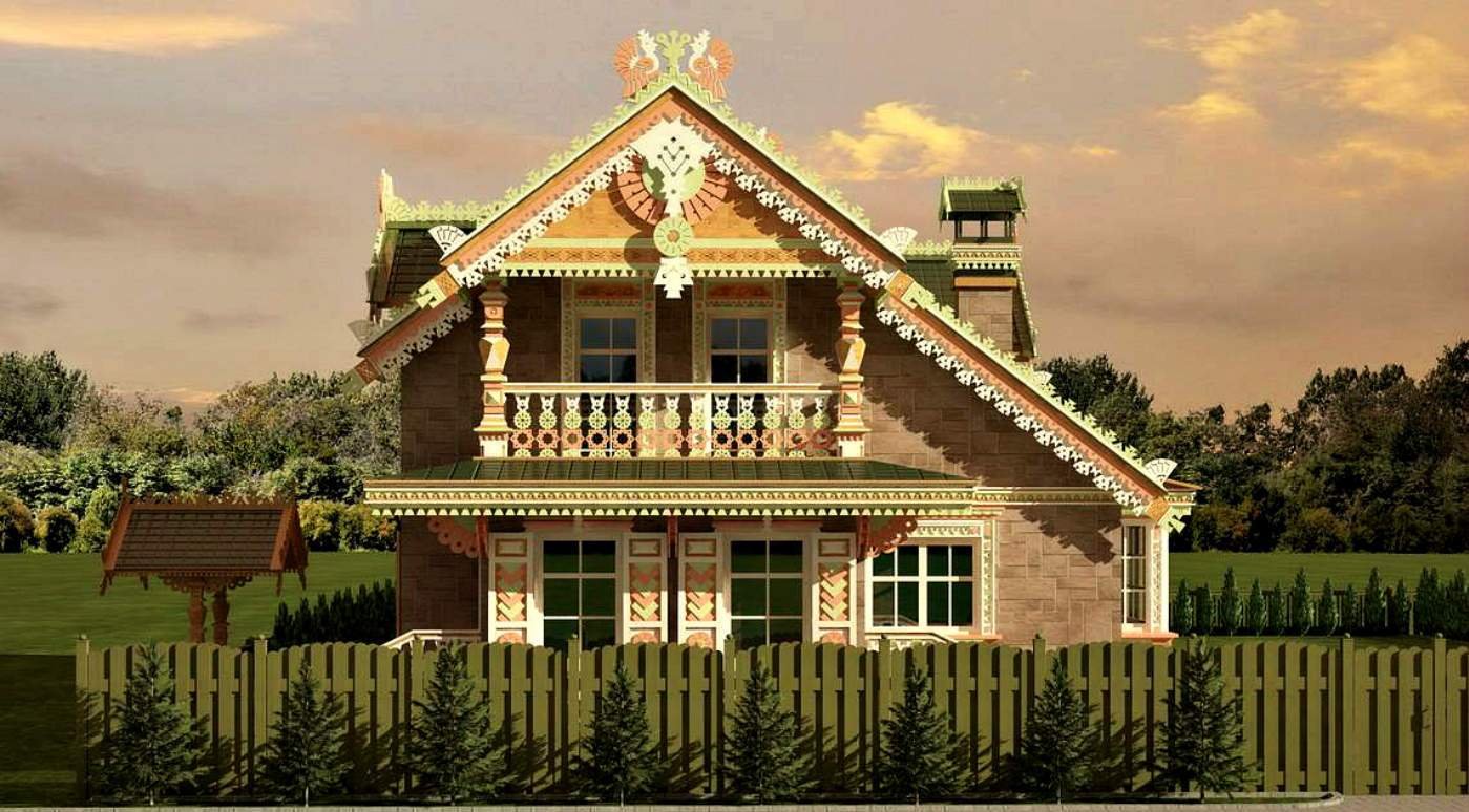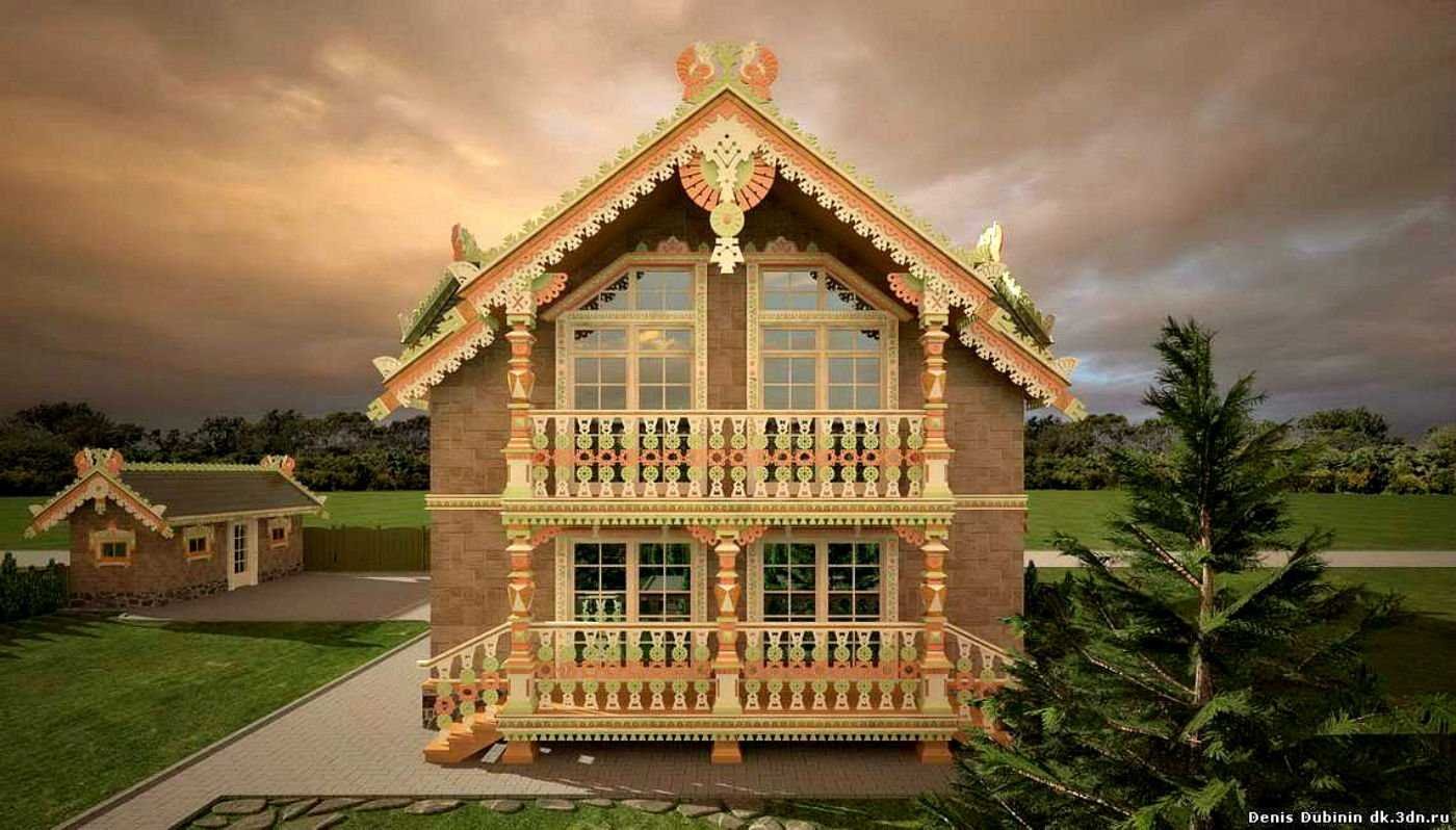 Двухэтажный дом в русском стиле