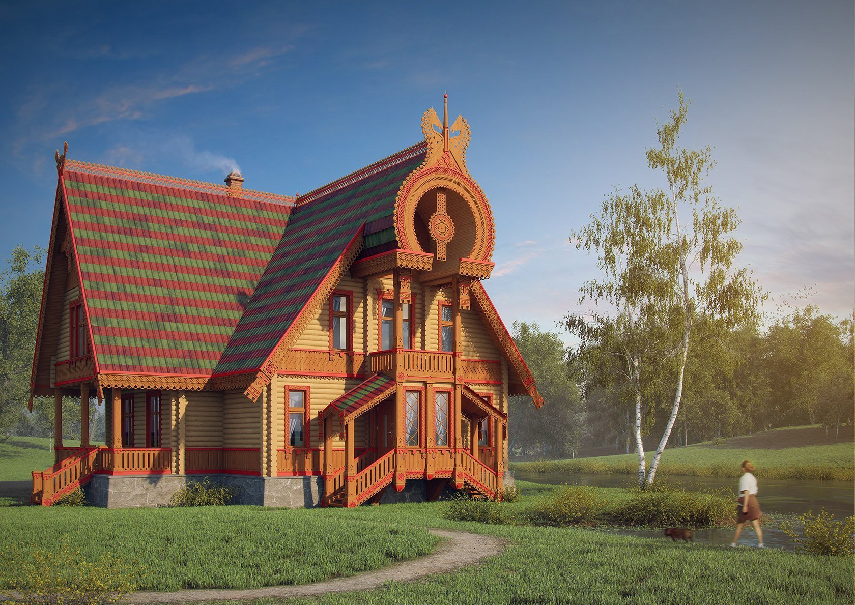 Красивый деревянный дом в русском стиле