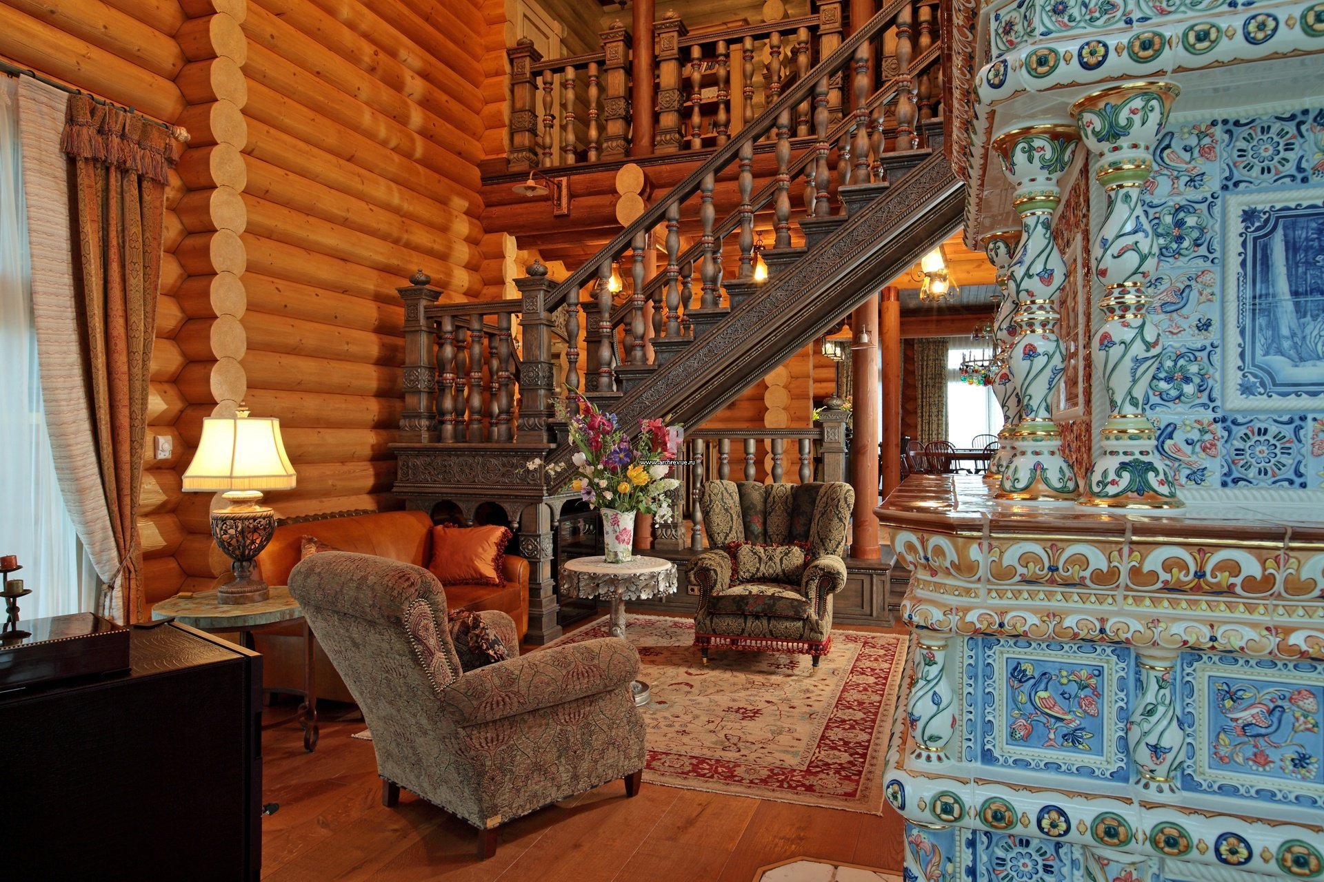 Интерьер в стиле русская усадьба в бревенчатом доме