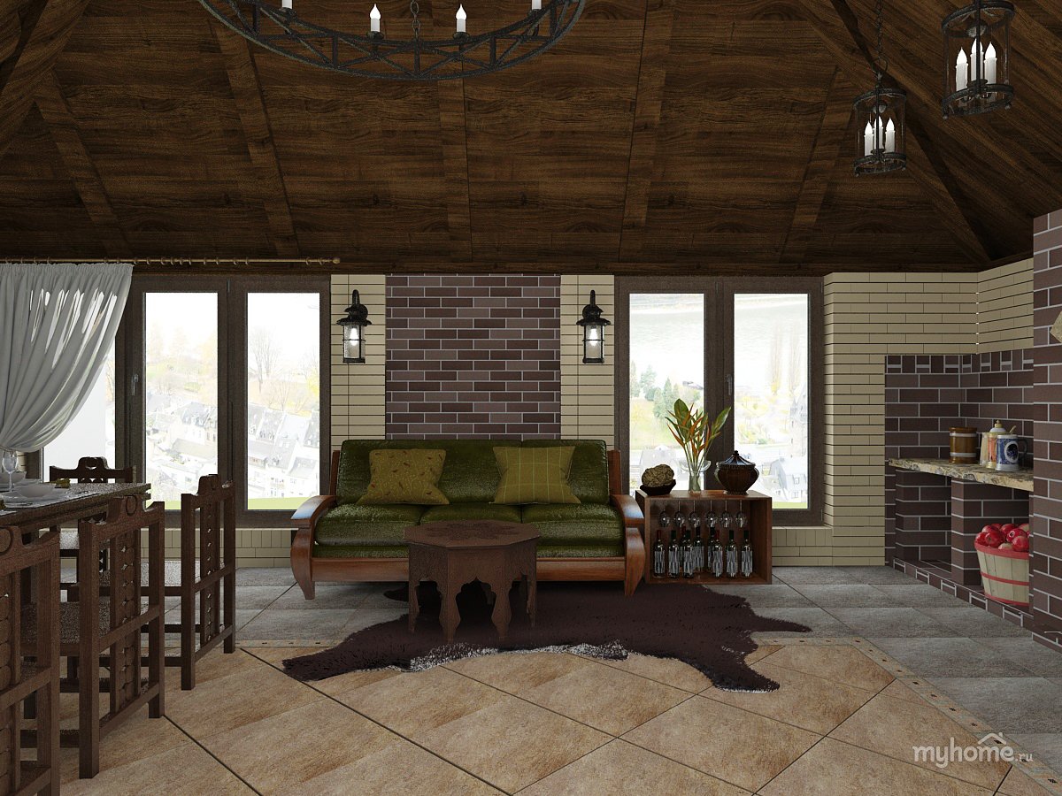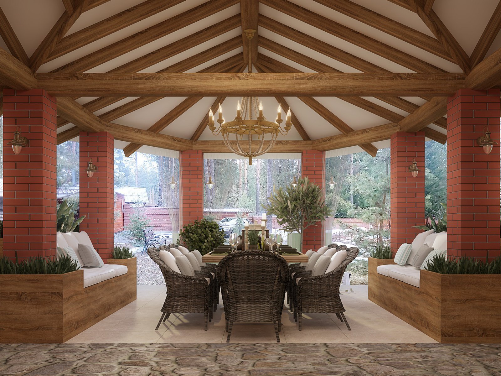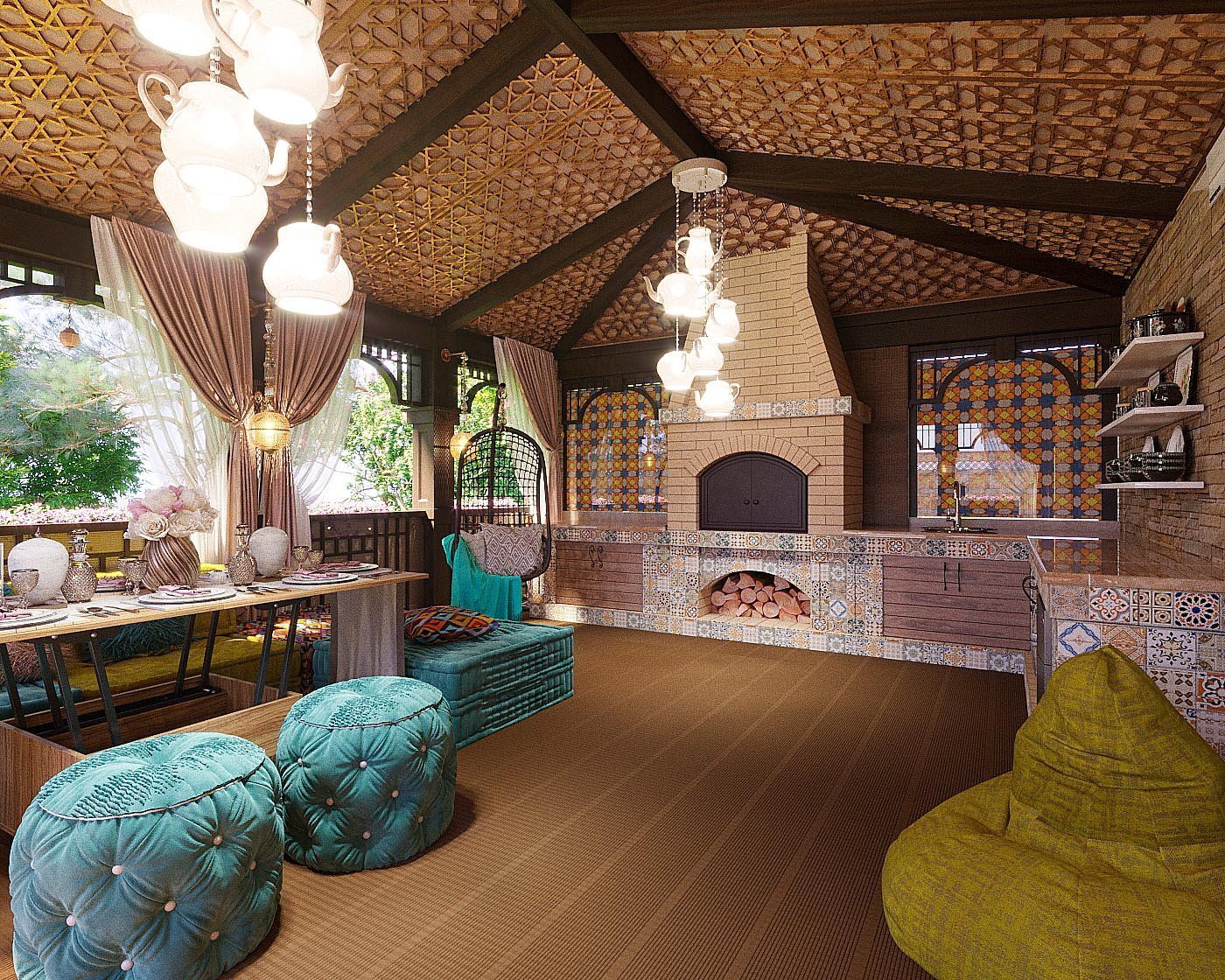 Интерьер беседки 4х4 в среднеазиатском стиле