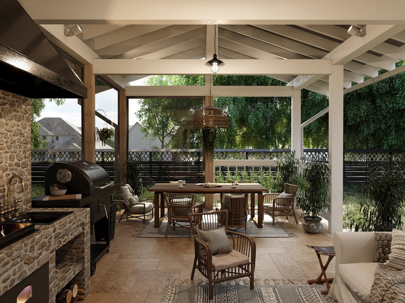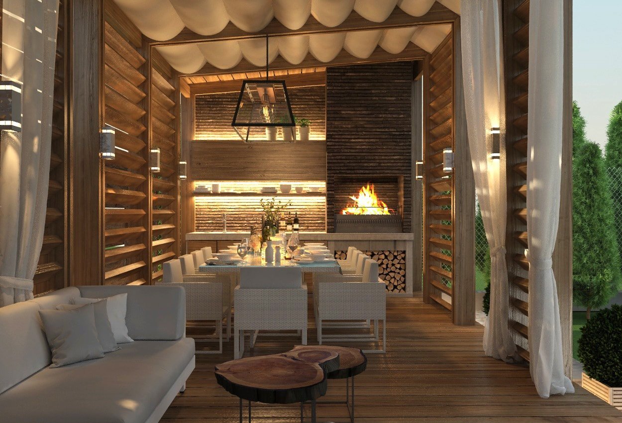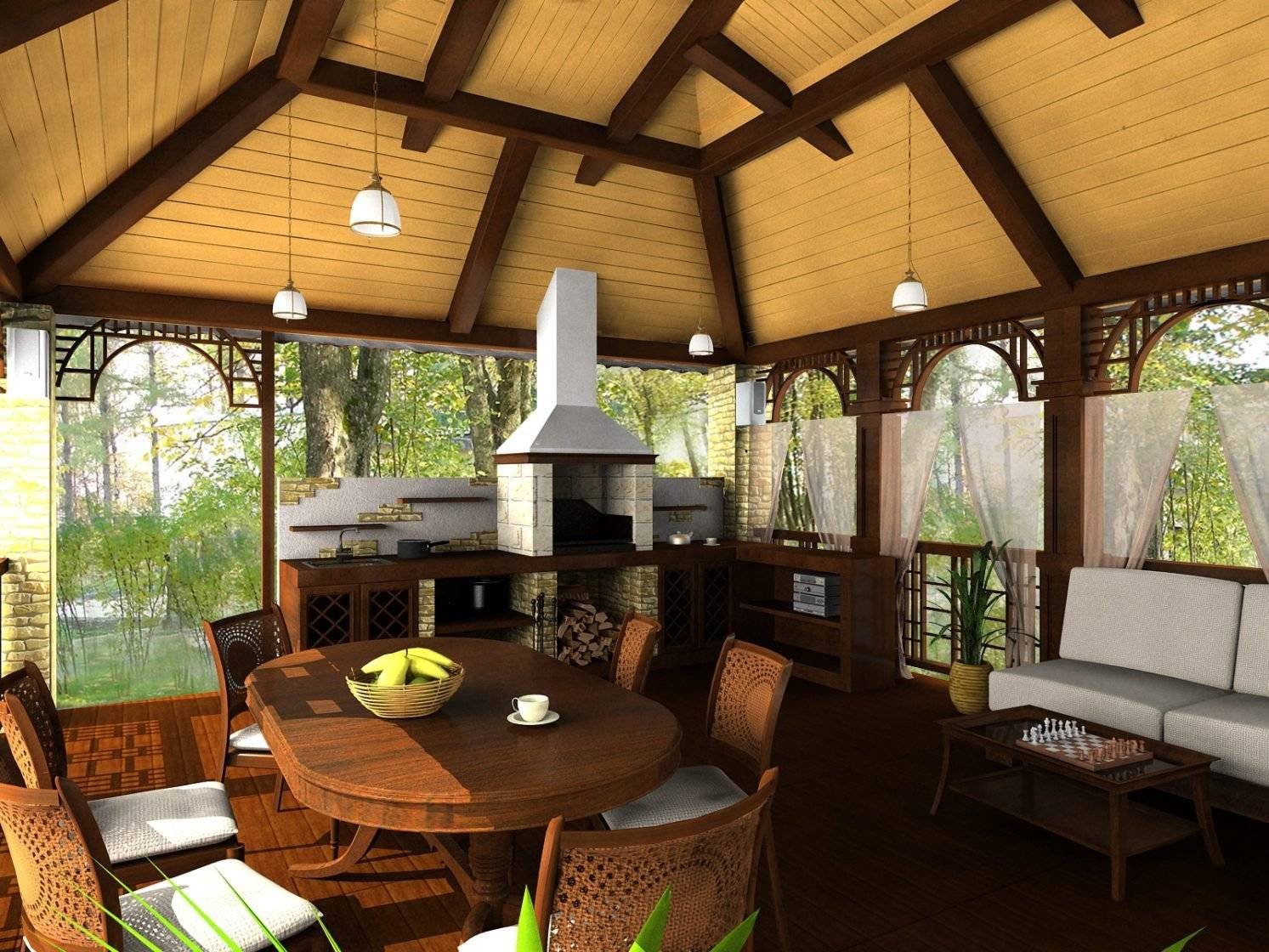 Интерьер беседки 4х4 в среднеазиатском стиле