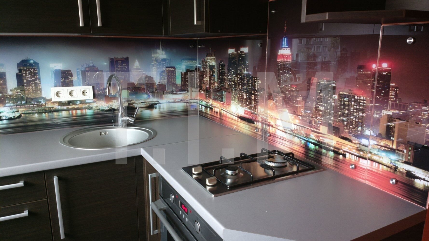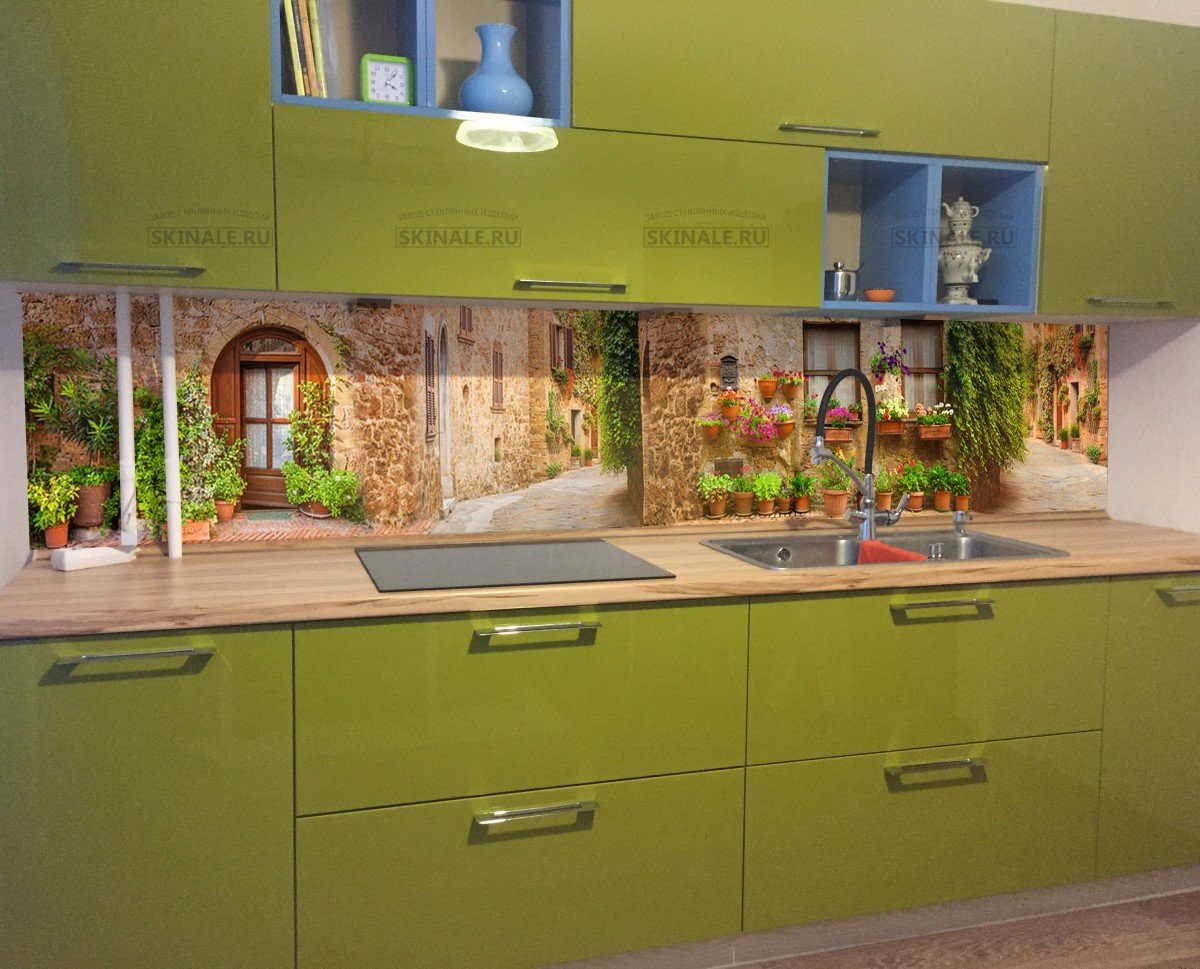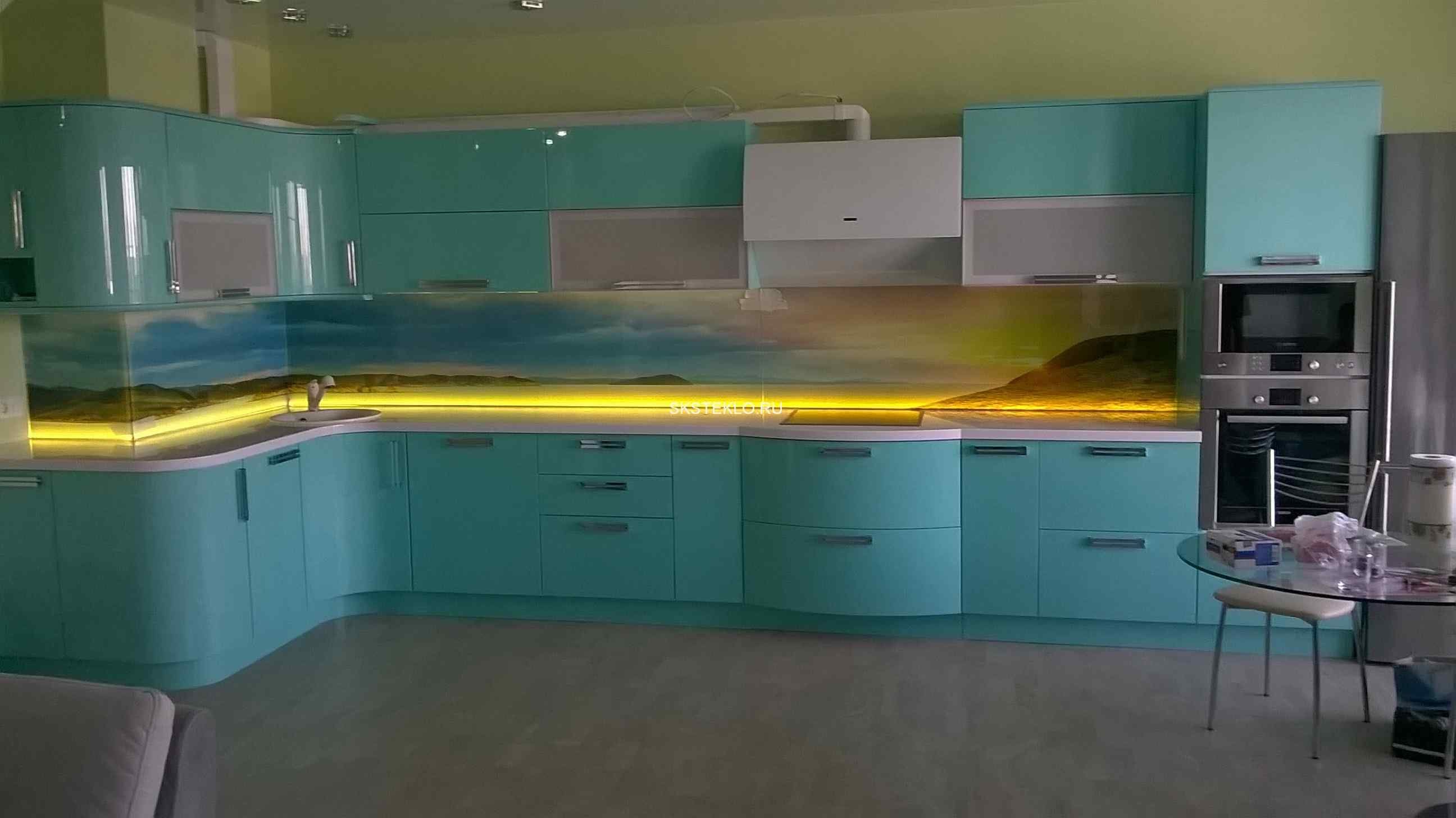 Стеклянный фартук на кухню город