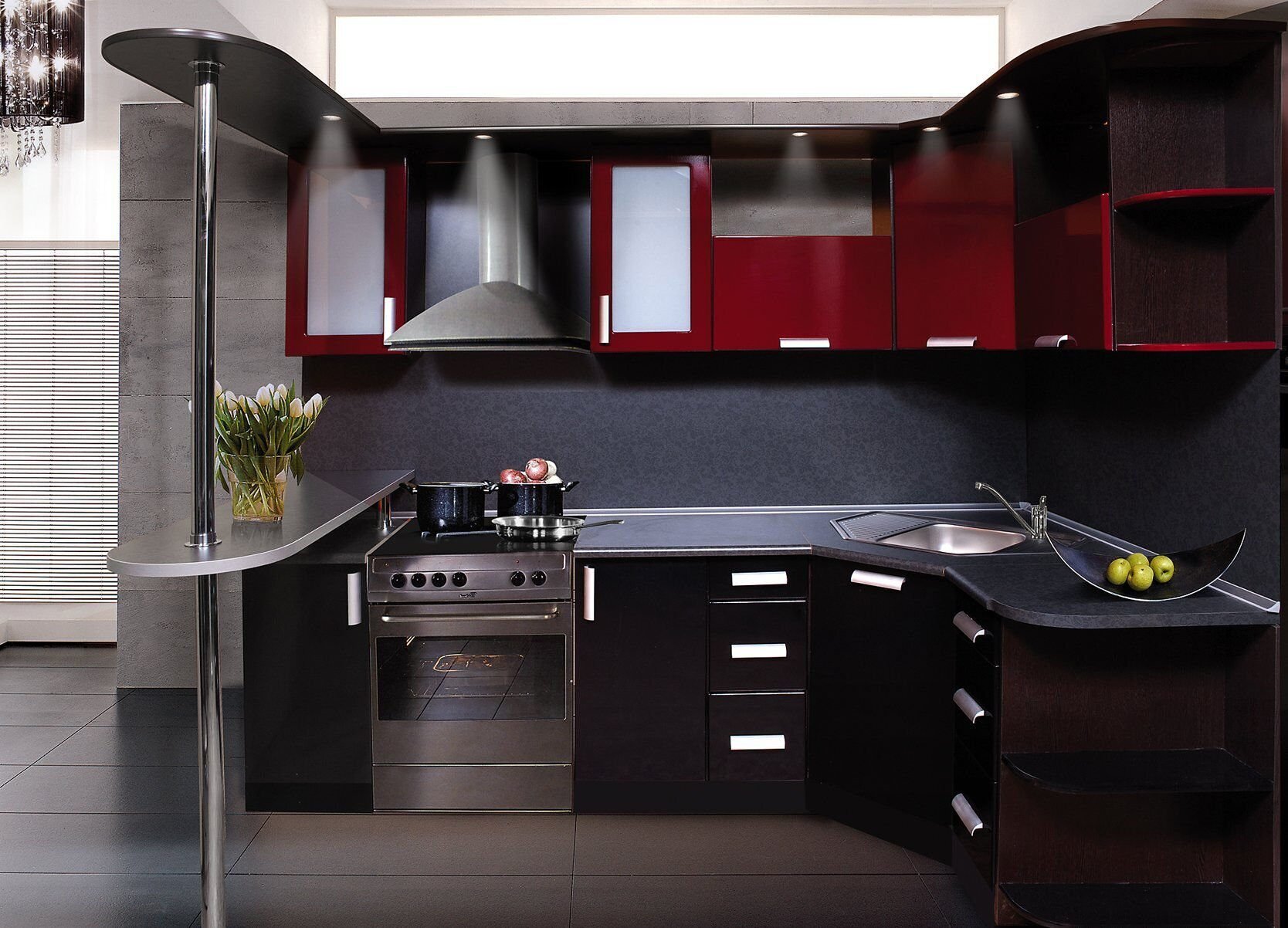 Угловая кухня с барной стойкой