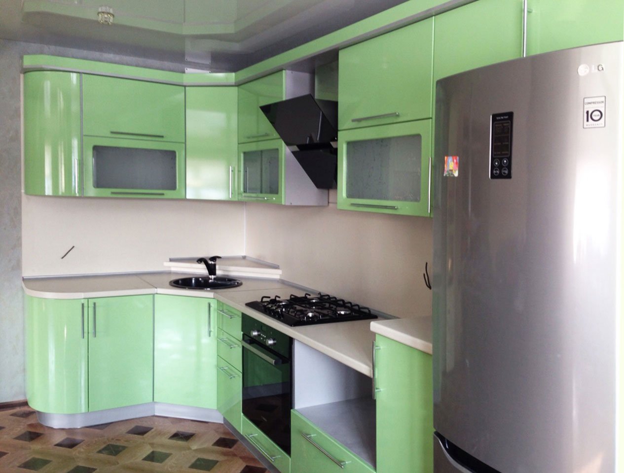 Кухня угловая зеленая