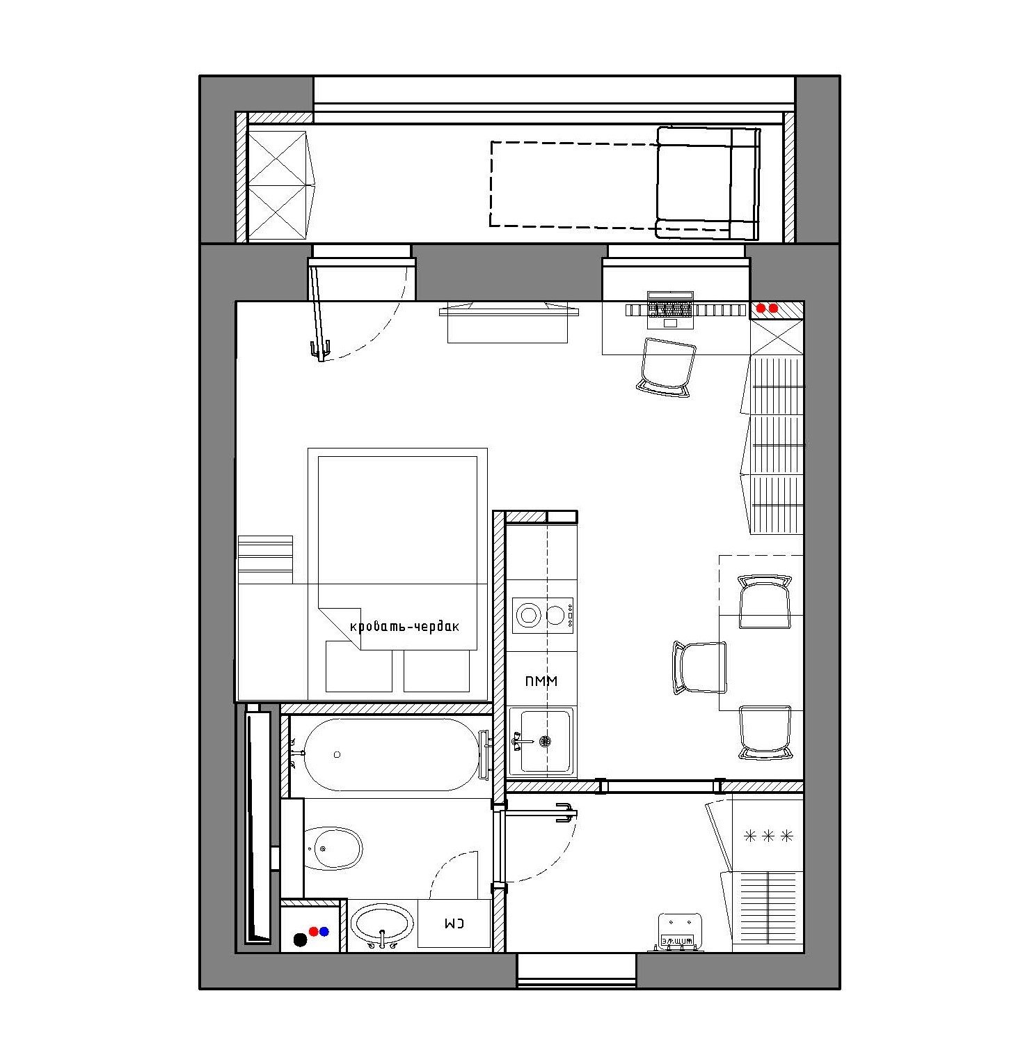 Планировка 1 комнатной квартиры 30 кв.м для семьи с ребенком
